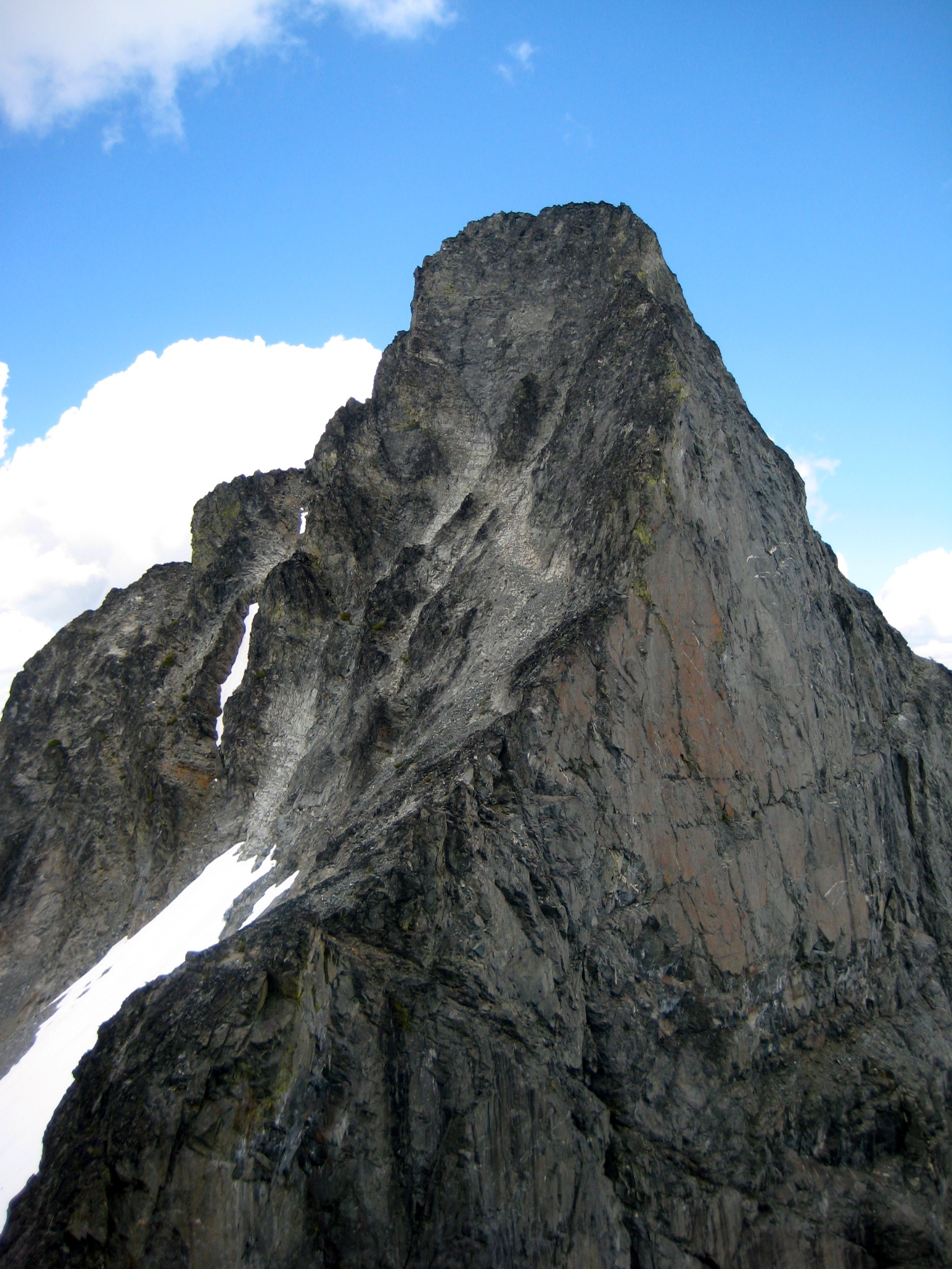 steep rock horn of Agnes Mountain in the Glacier Peak Wilderness with linguring snow patches