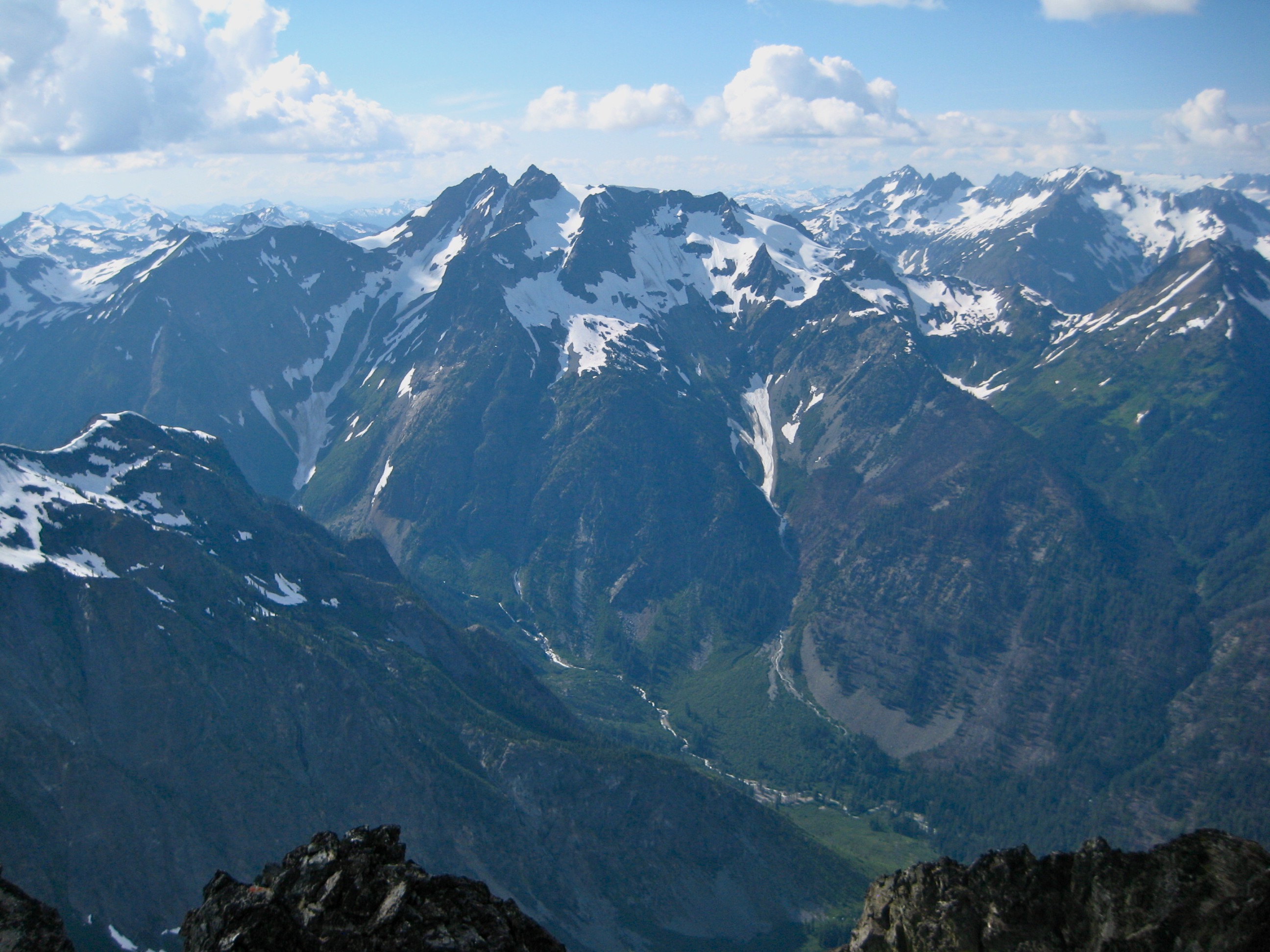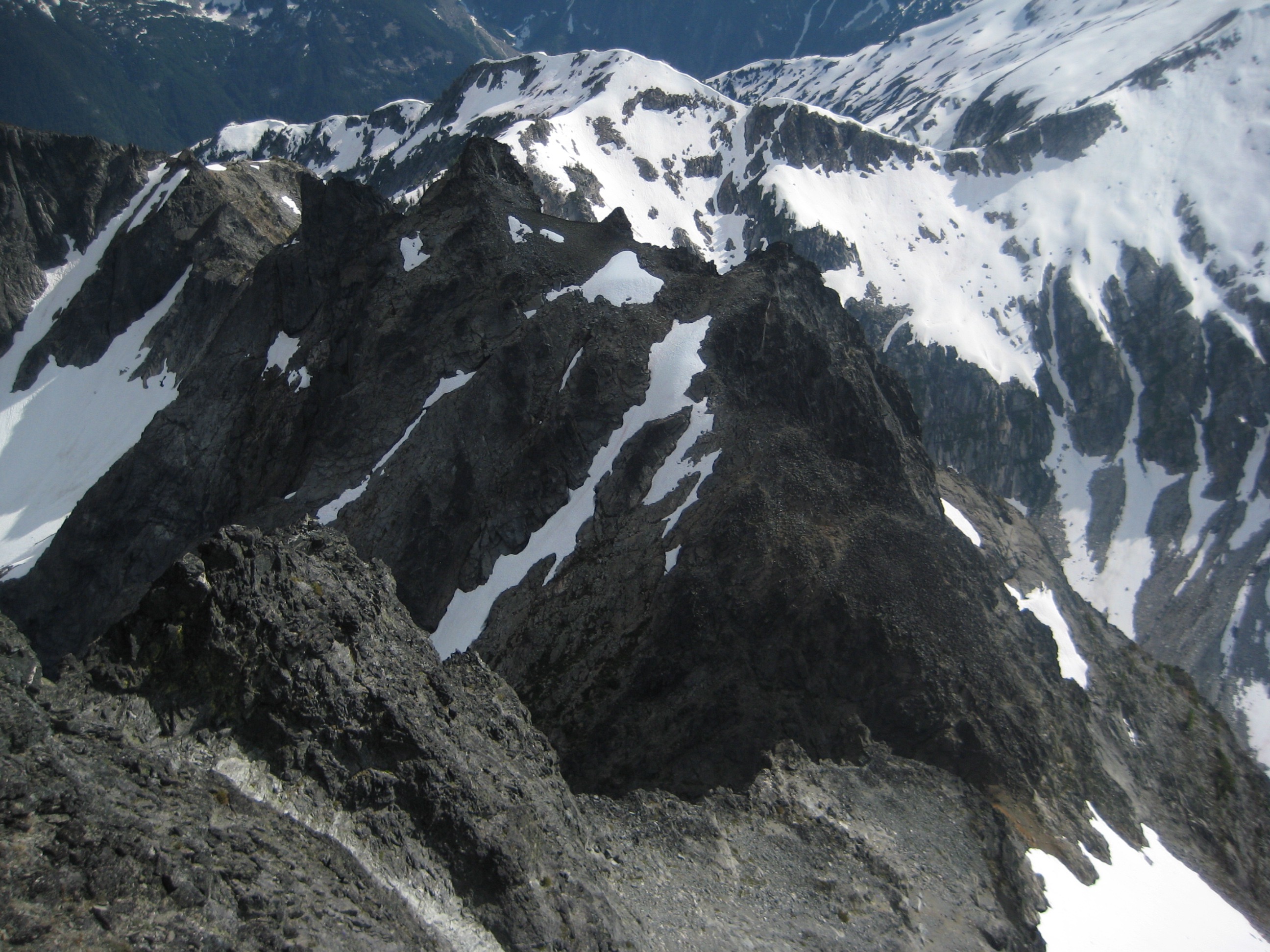 looking down the rock face of Agnes Mountain in the Glacier Peak Wilderness