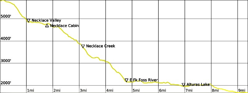 Ending Point: East Fork Foss River / Necklace Valley Trailhead on Foss River Road #68 (Elev. 1650 feet)