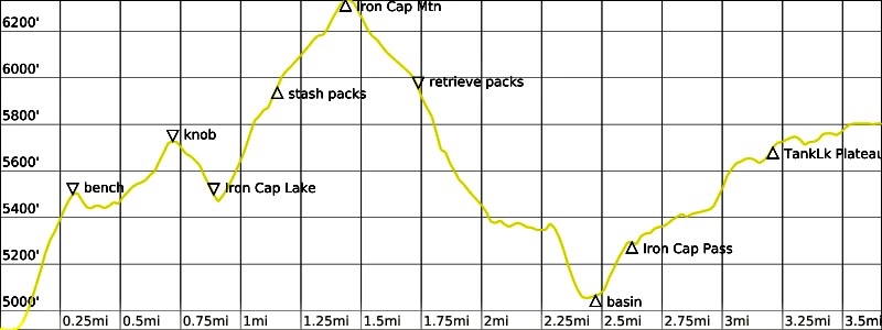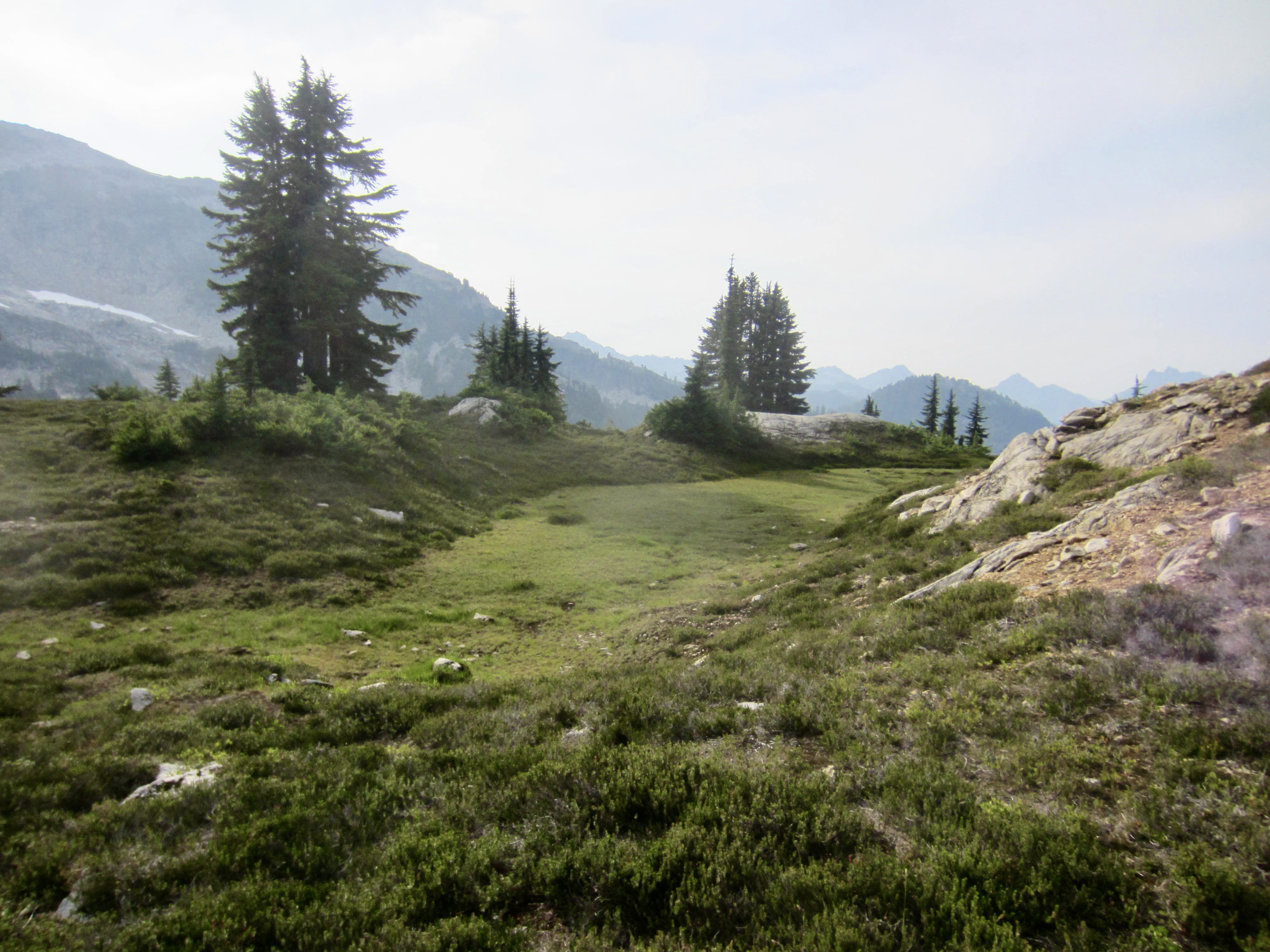 We all finished our day with a 1-mile hike up to Tank Lakes on a well-used path that zigzags through a delightful series of heathery meadows and grassy parks. Without a doubt, the ascent from Iron Cap Pass to Tank Lakes is one of the scenic highlights of the whole traverse.