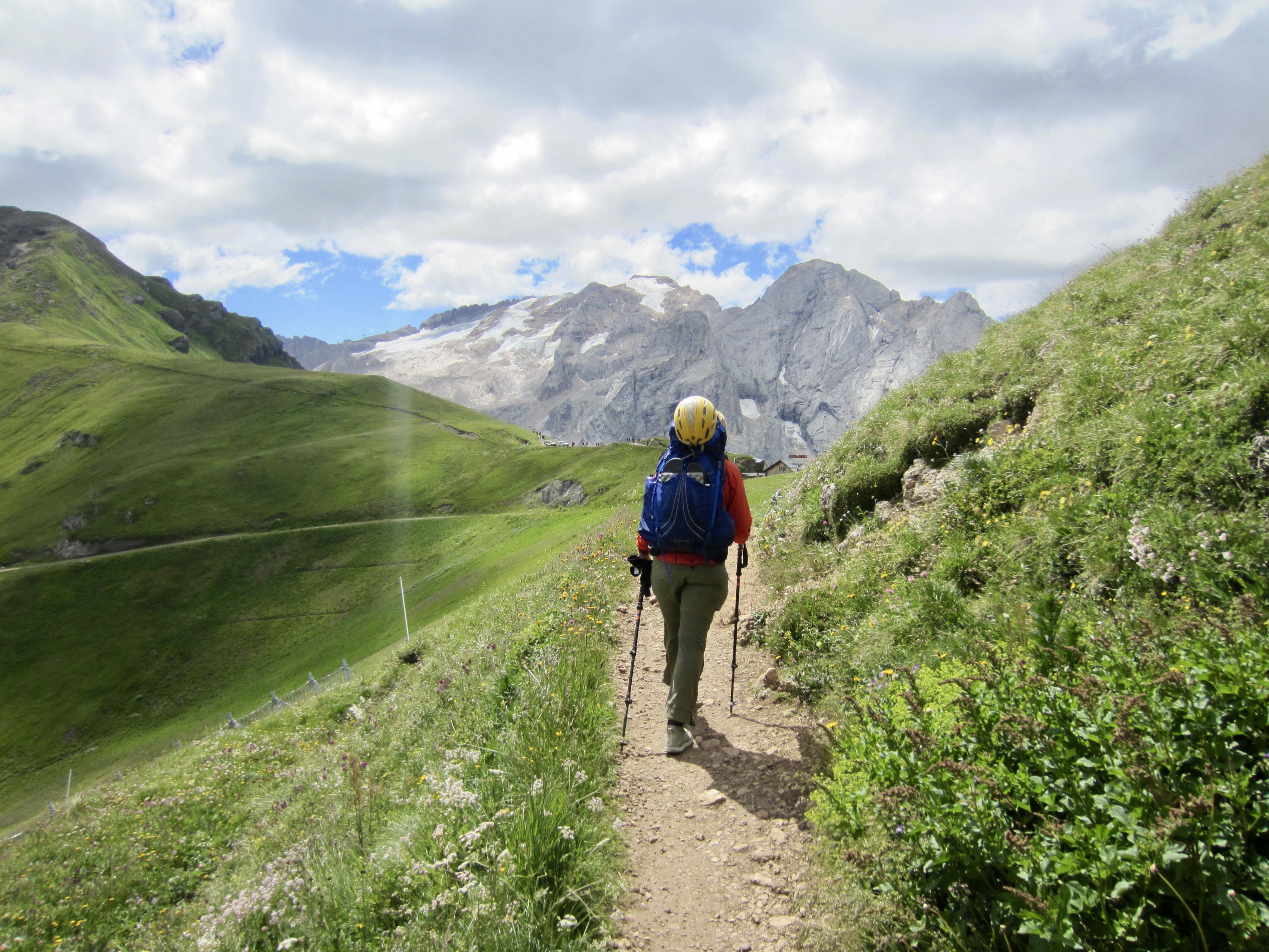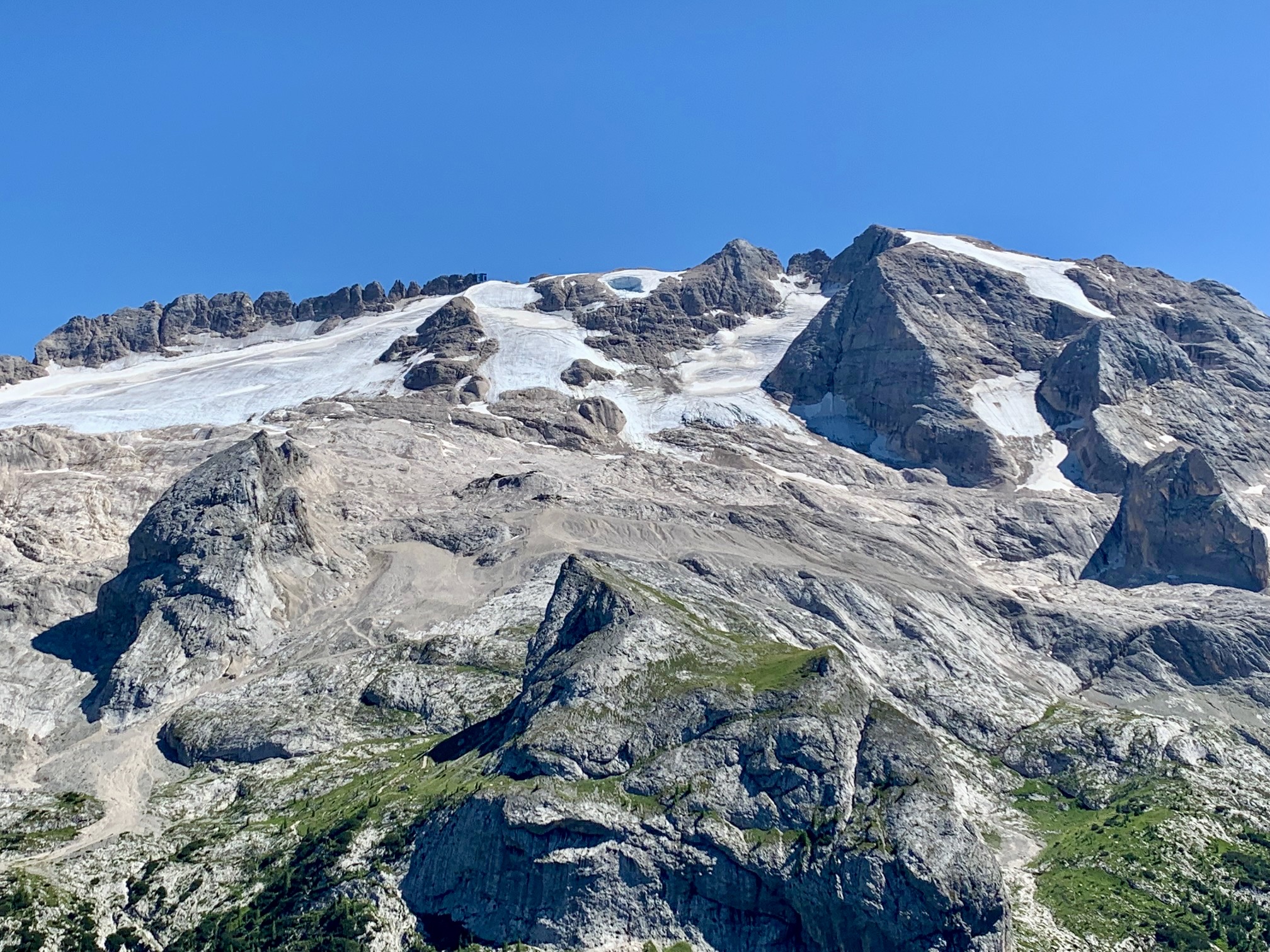 Immediately before starting our trek, we heard the shocking news that a huge chunk of ice had calved off one of Marmolada’s glaciers, killing or injuring more than a dozen climbers (the final count was eleven killed and eight injured). This tragic incident became a major topic of conversation throughout our trek and cast a somber mood that became more pronounced as we got closer to the mountain each day. It also altered our itinerary, which had originally included an ascent of Marmolada.