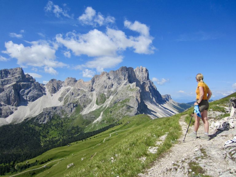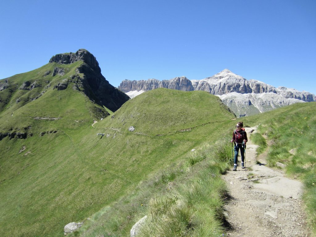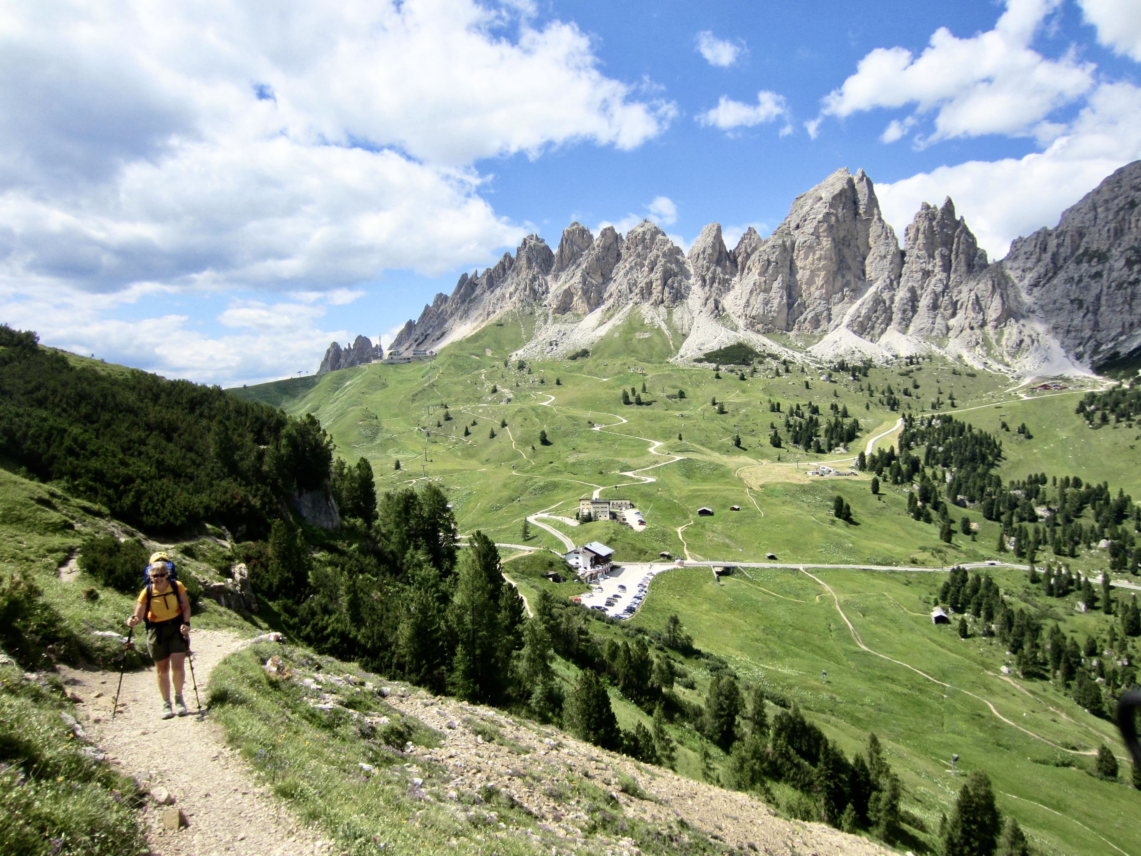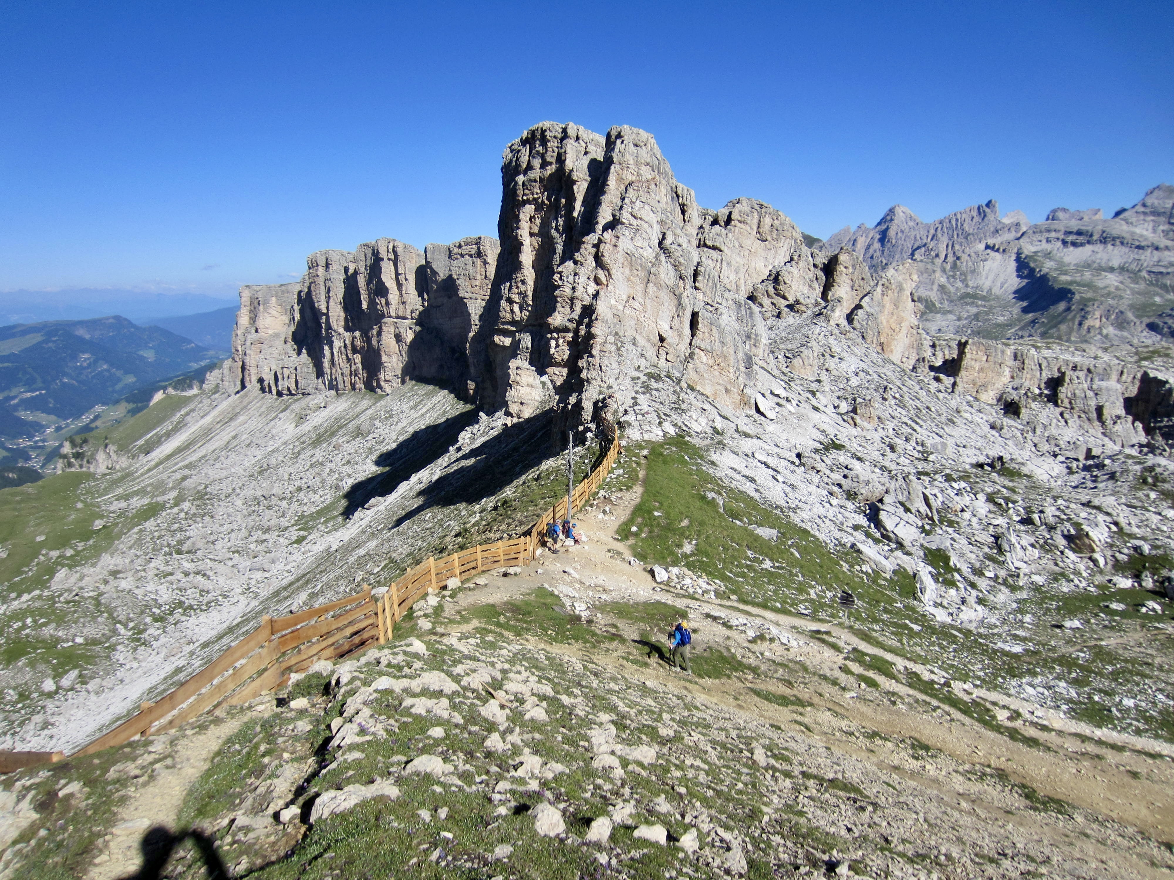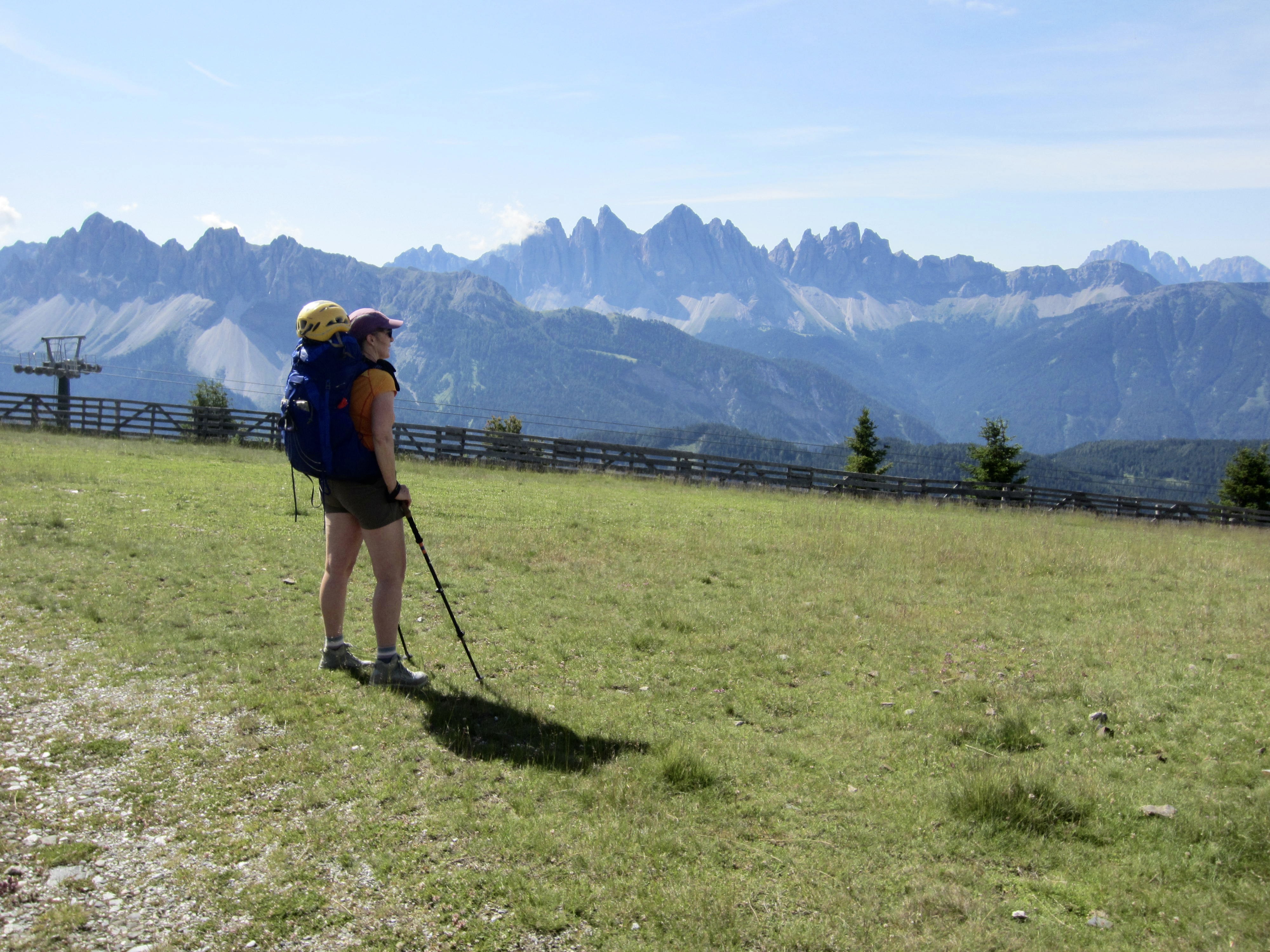 We began our day with a short sidetrip up Zendleser Kofel for views of the surrounding mountains. Once underway with rucksacks, we took another short sidetrip up nearby Sobutsch for more views. Forchetta and Sass Rigais were especially impressive from here.
