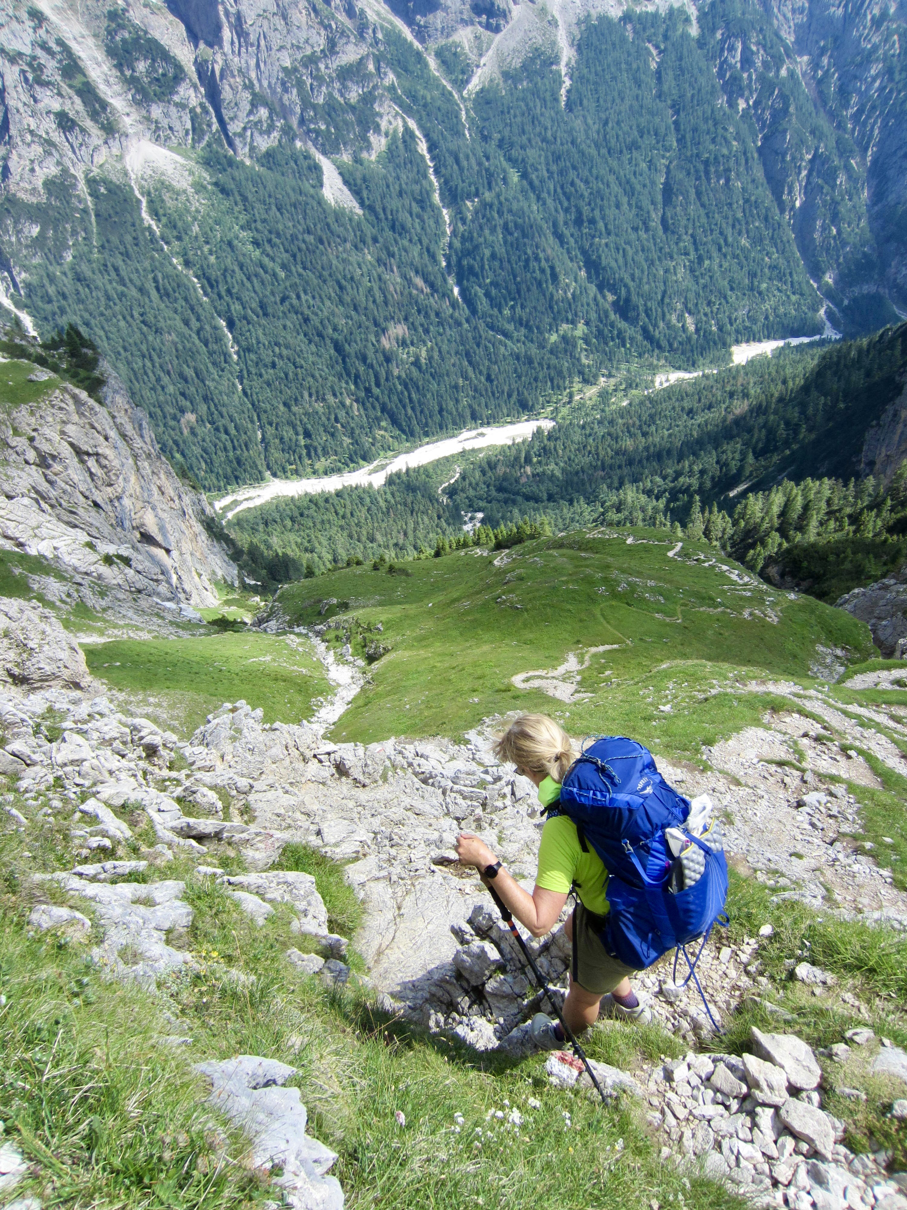 Reluctantly, we shouldered our rucksacks and began our long descent to Canali Creek—a full 4000 feet below. To make things worse, although we were officially on AV2 here, the first 1000 vertical feet was not really on a trail but rather on something more like a rocky climbers path. It was terribly slow and tedious.