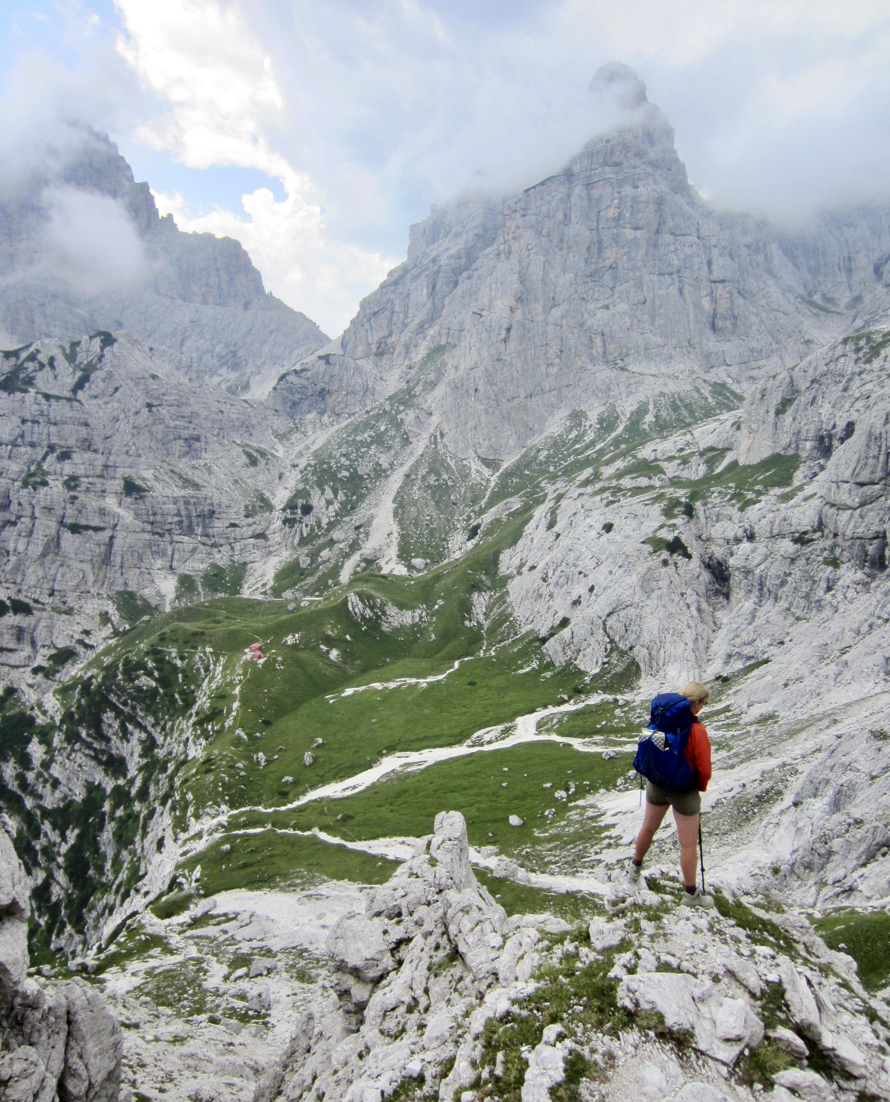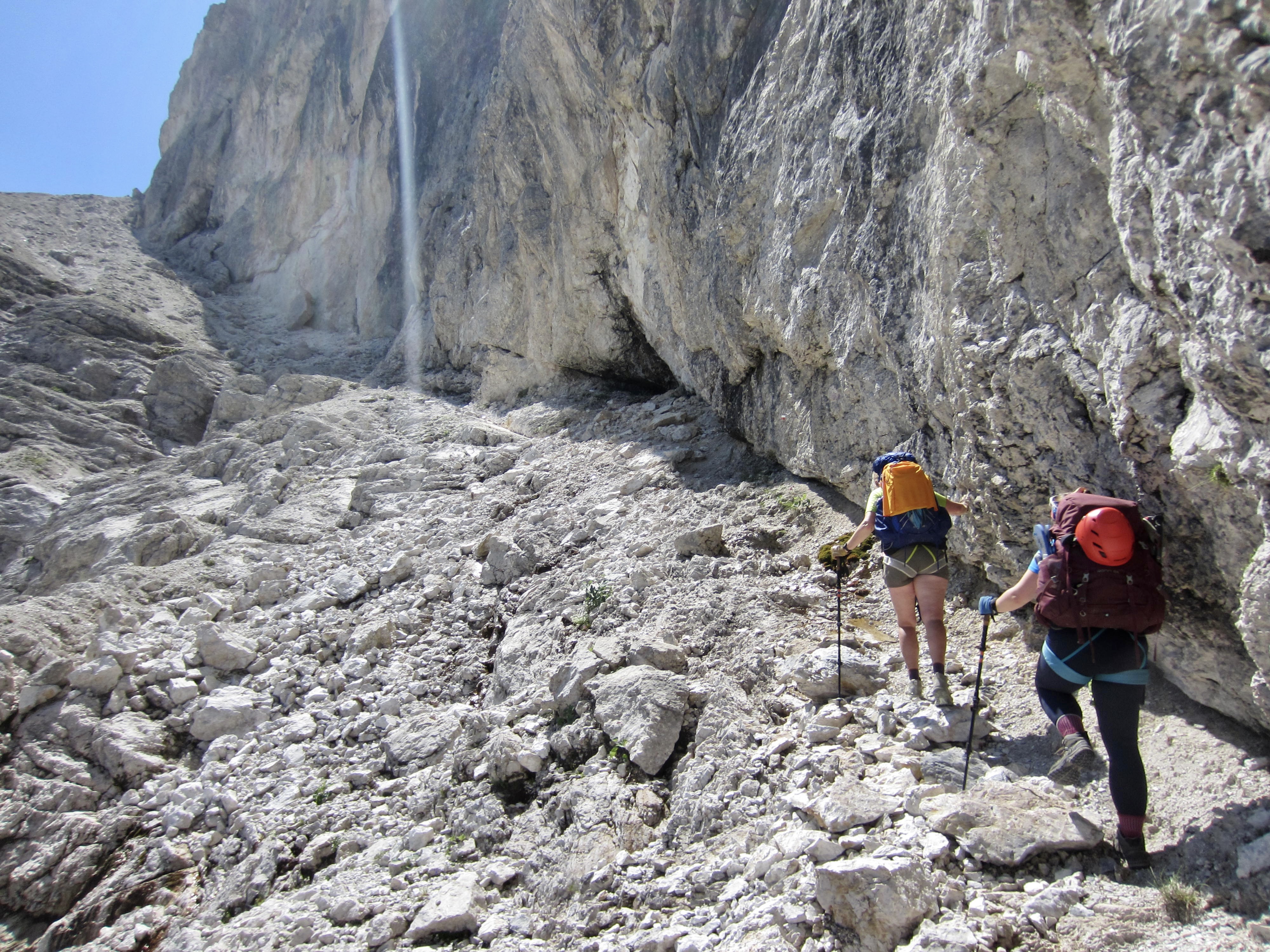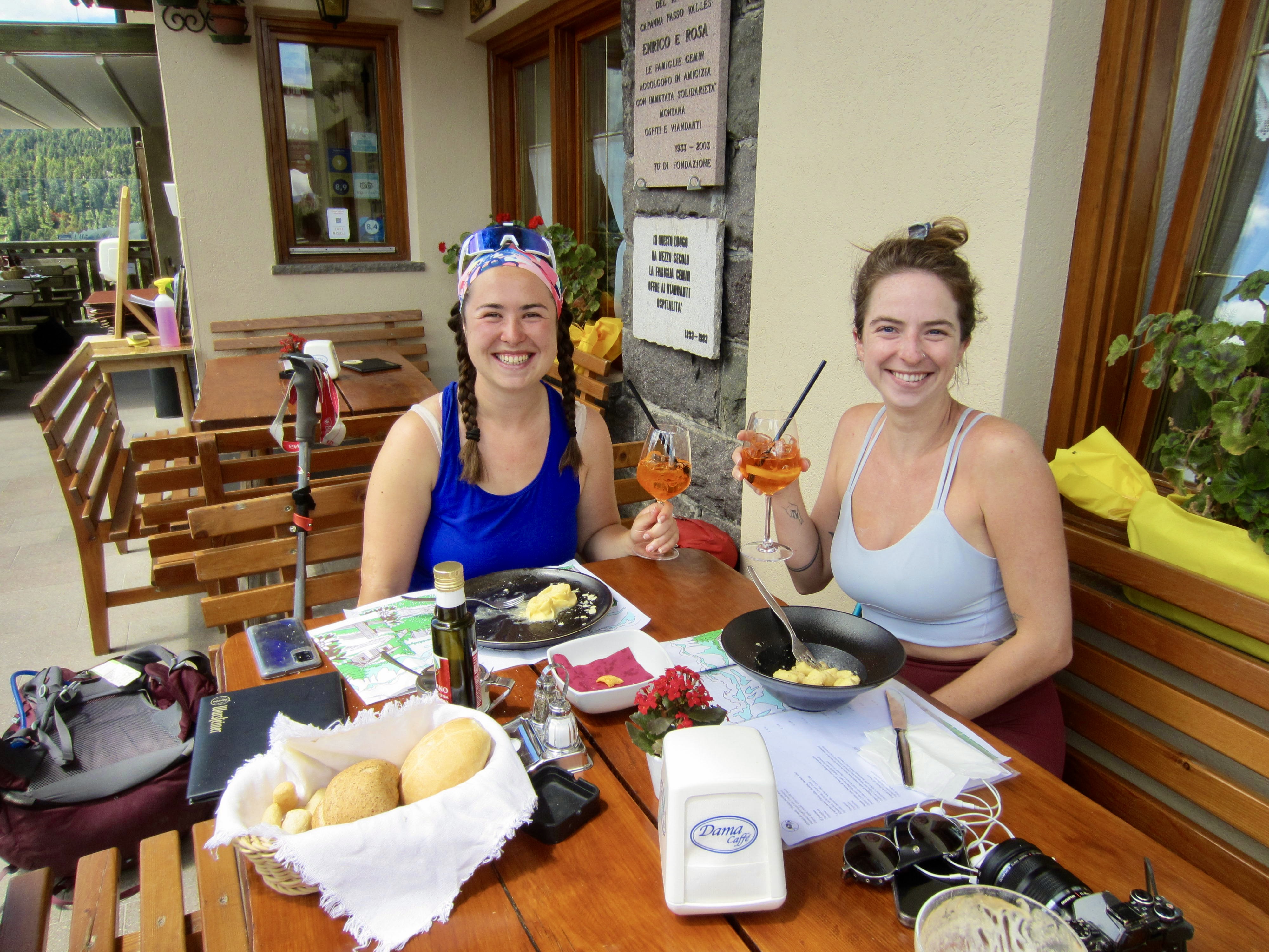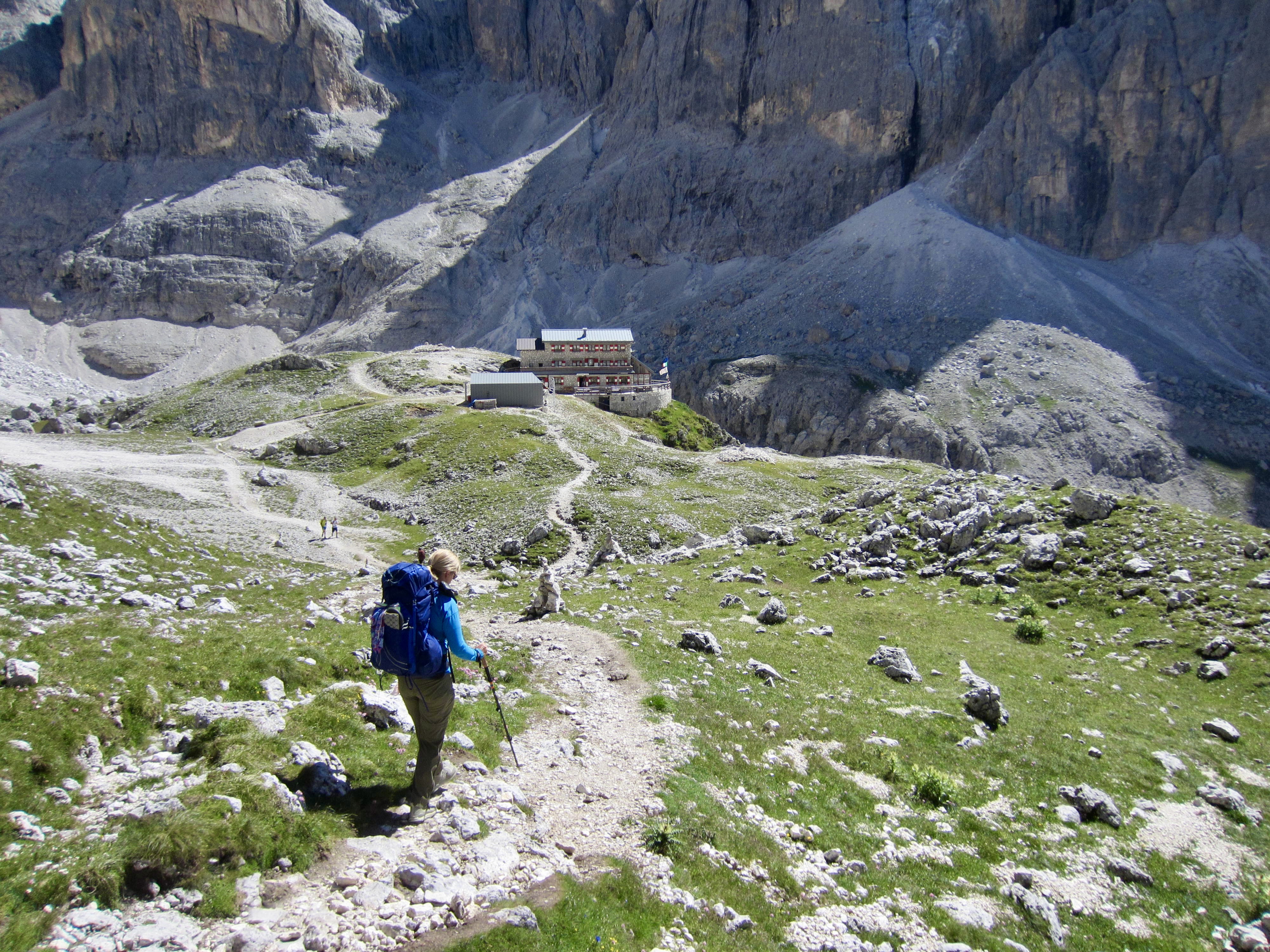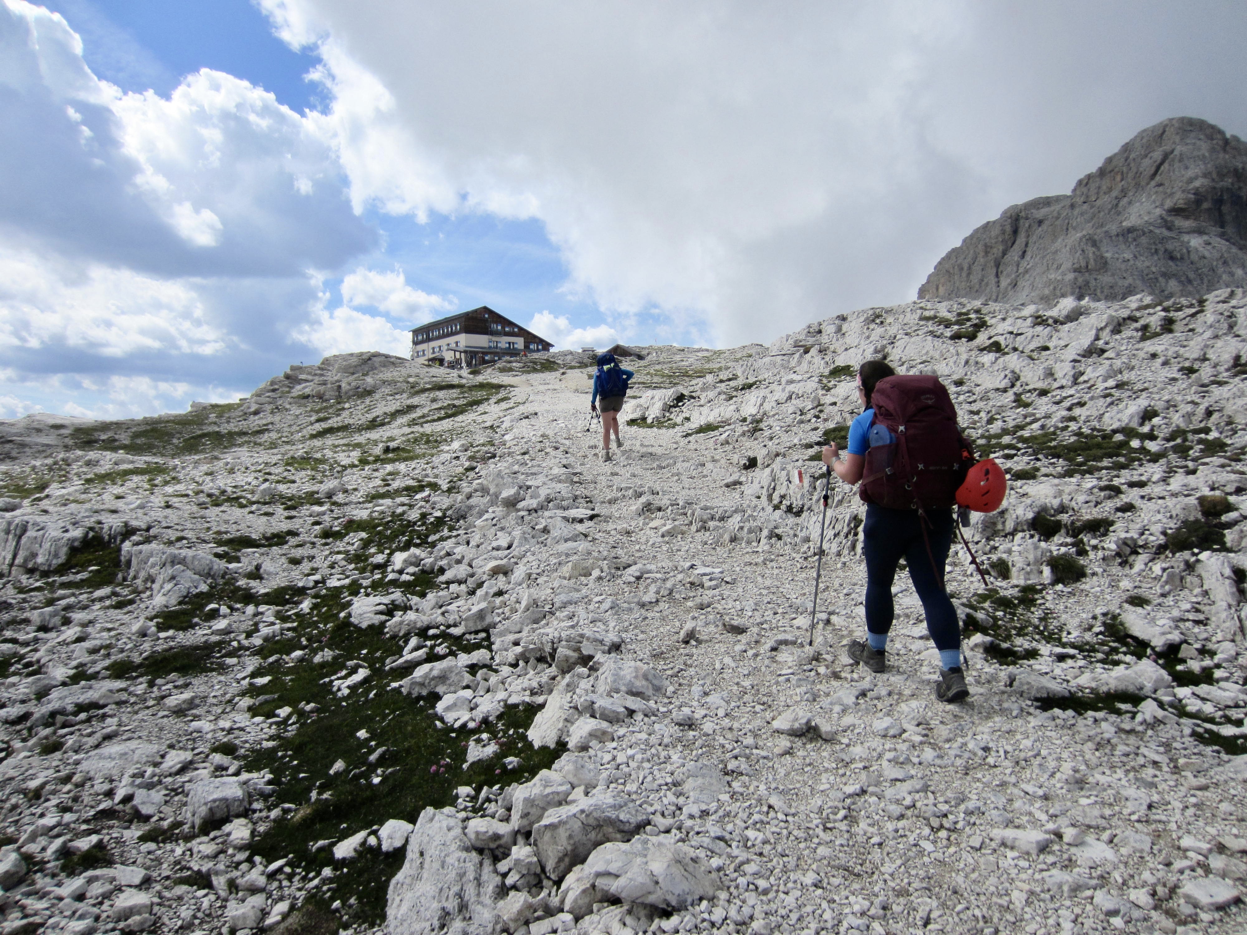 We made a short ascent over Ball Pass before dropping down to Pradidali Hut. Brooke dashed off to do her via ferratas, and Maeve stopped at the hut for an early lunch. (We consistently found that most huts served a woefully unsatisfying breakfast but a wonderfully satisfying lunch.)