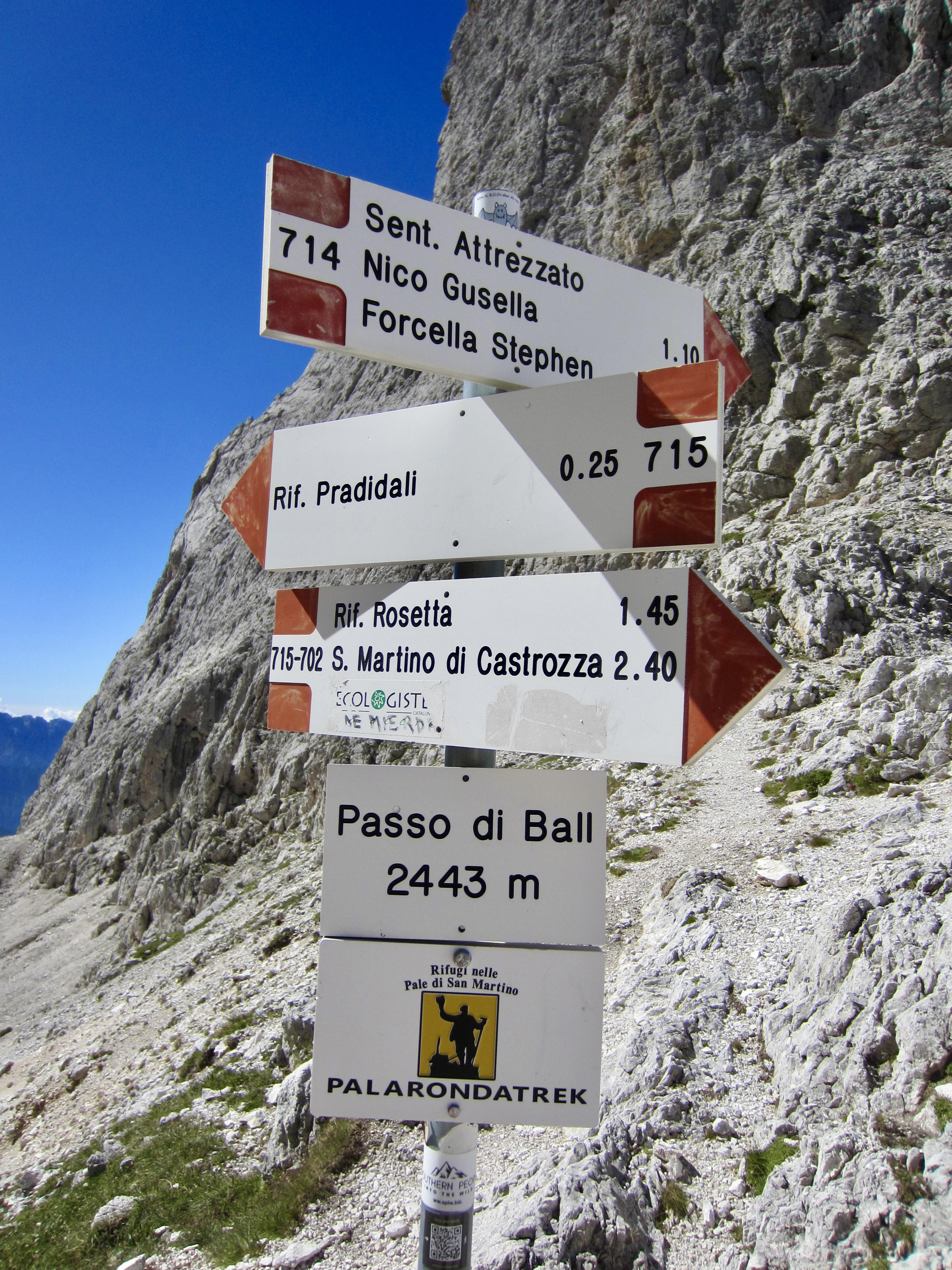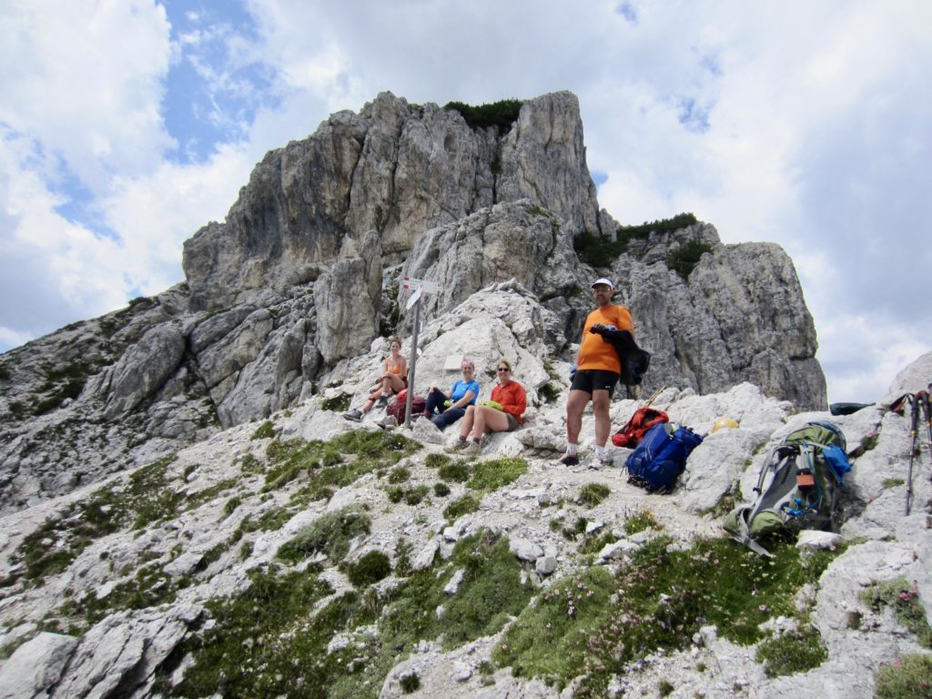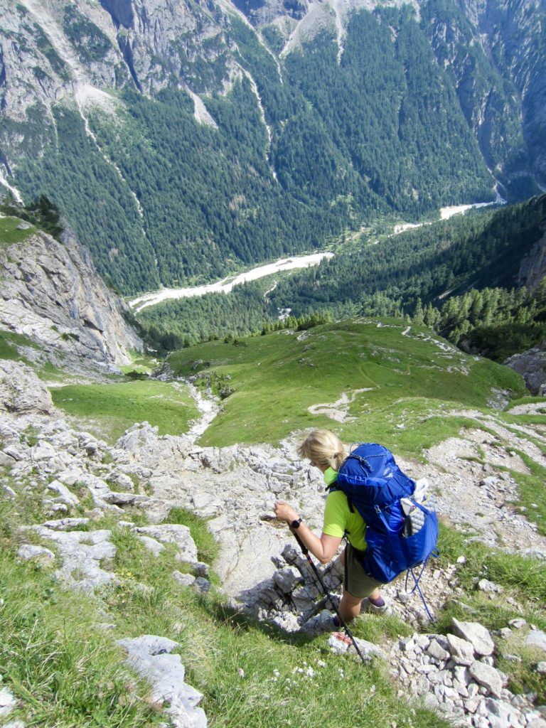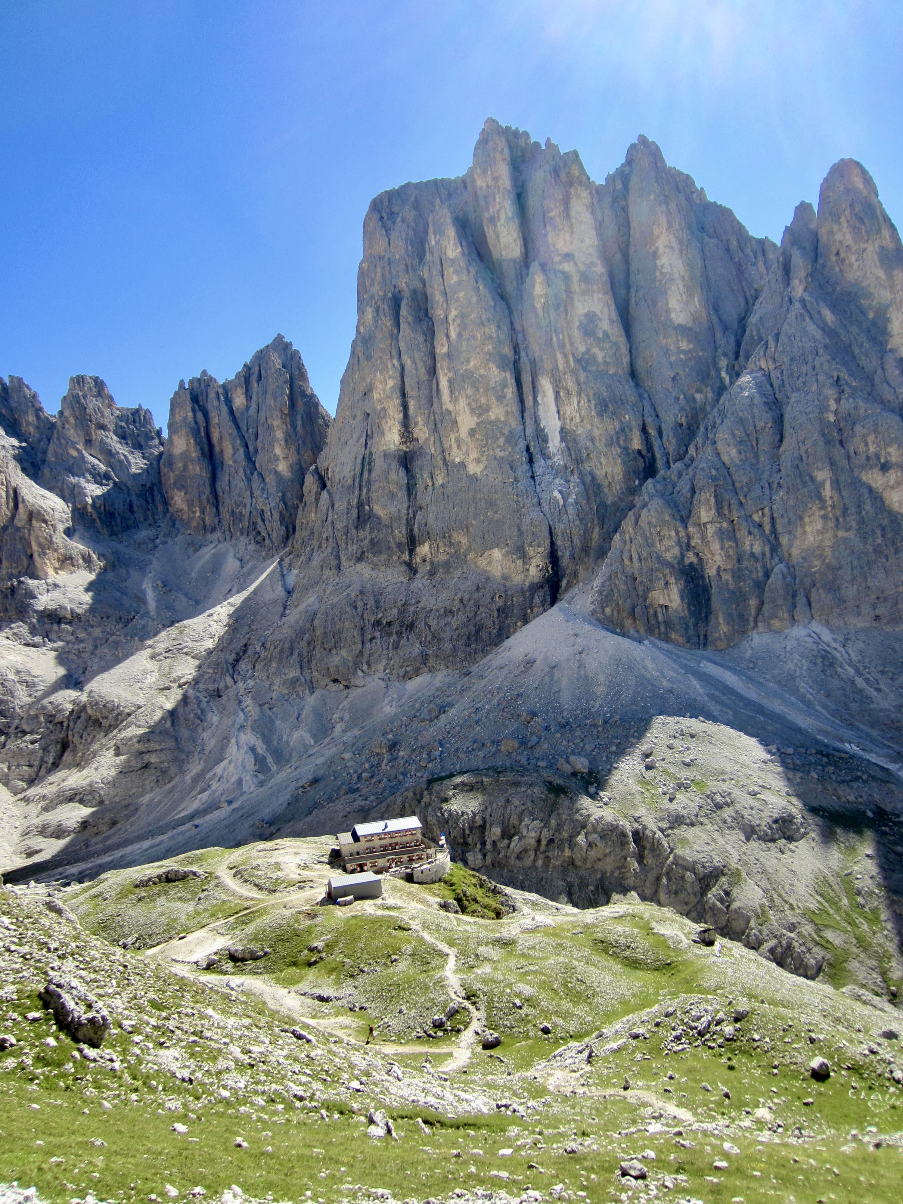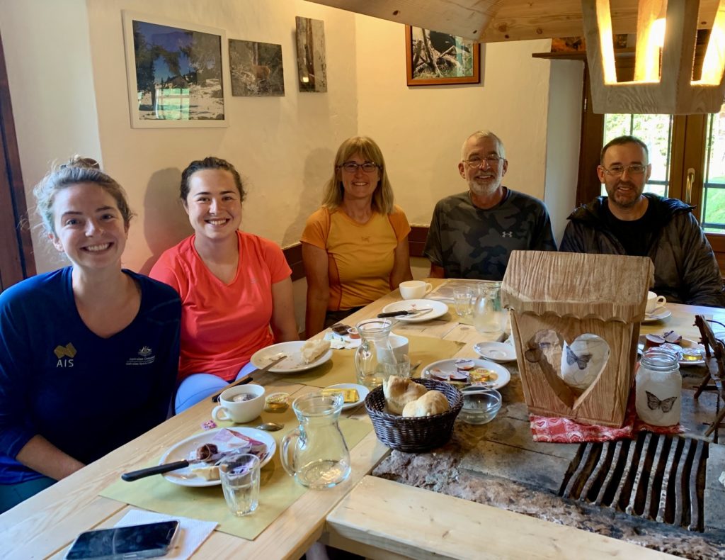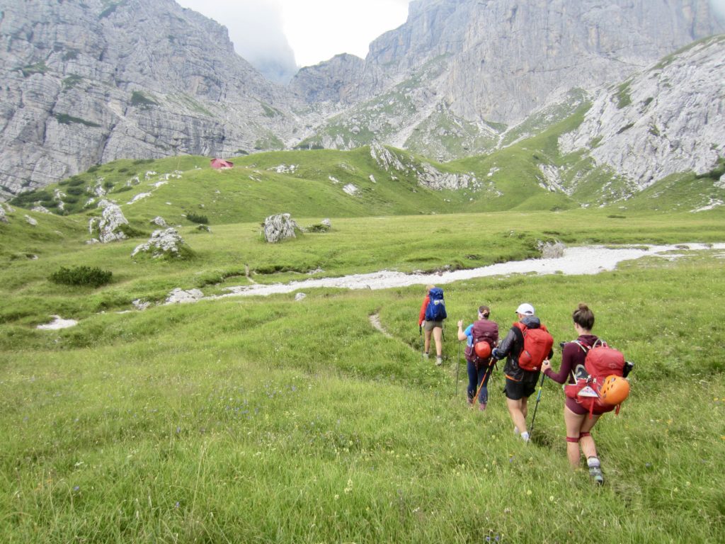 We made a short ascent over Ball Pass before dropping down to Pradidali Hut. Brooke dashed off to do her via ferratas, and Maeve stopped at the hut for an early lunch. (We consistently found that most huts served a woefully unsatisfying breakfast but a wonderfully satisfying lunch.)