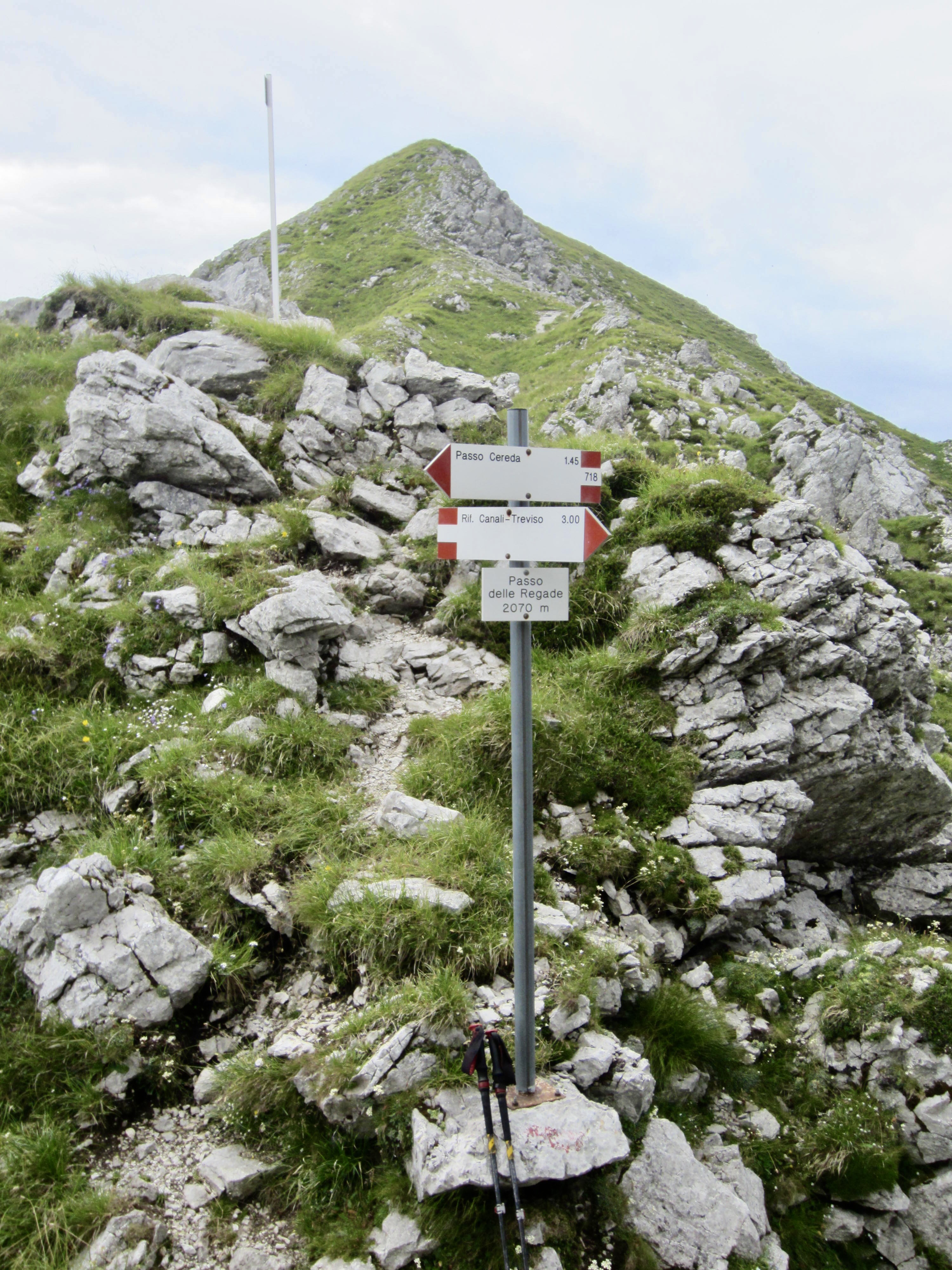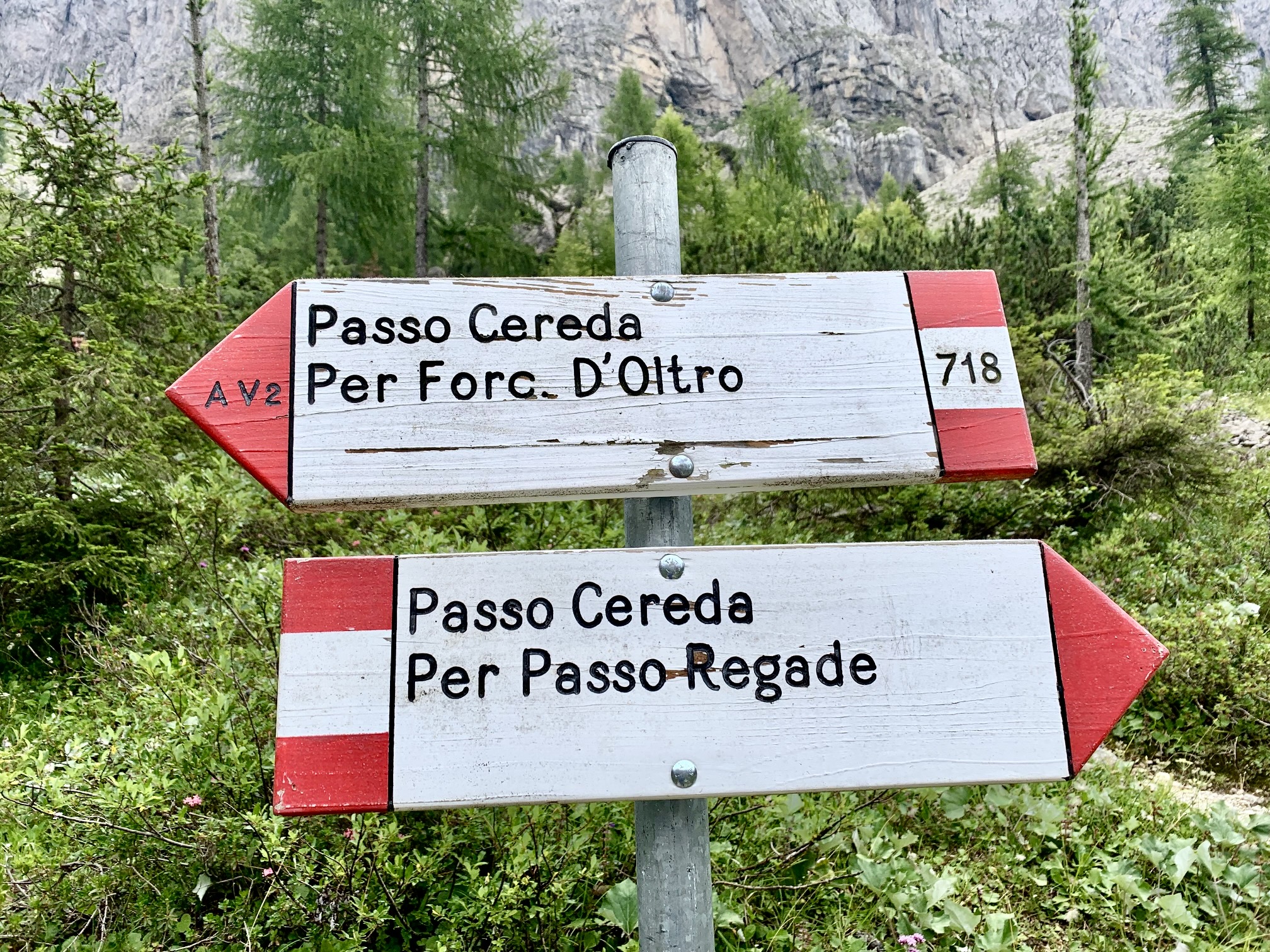 From Piaz Hut, AV2 descends 3000 feet to Croce d’Aune via a combination of road and trail. This was a continuation of the World War I military road, and we had to marvel at the elegant, century-old construction.
