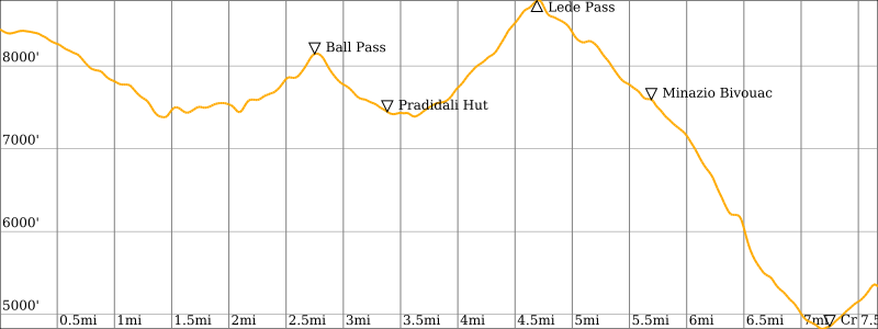 High Point: Farangole Pass (Elev. 8990 feet / 2740 meters)