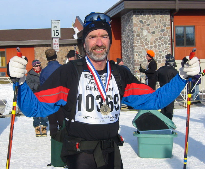 My watch read 3:40pm when I skied into the finish-line corral, feeling like one tired cowboy after more than 5½ hours on the trail. Someone hung a big medal around my neck (all first-year Birkie finishers get a medal, whereas subsequent-year finishers get a commemorative pin) and snapped my picture.