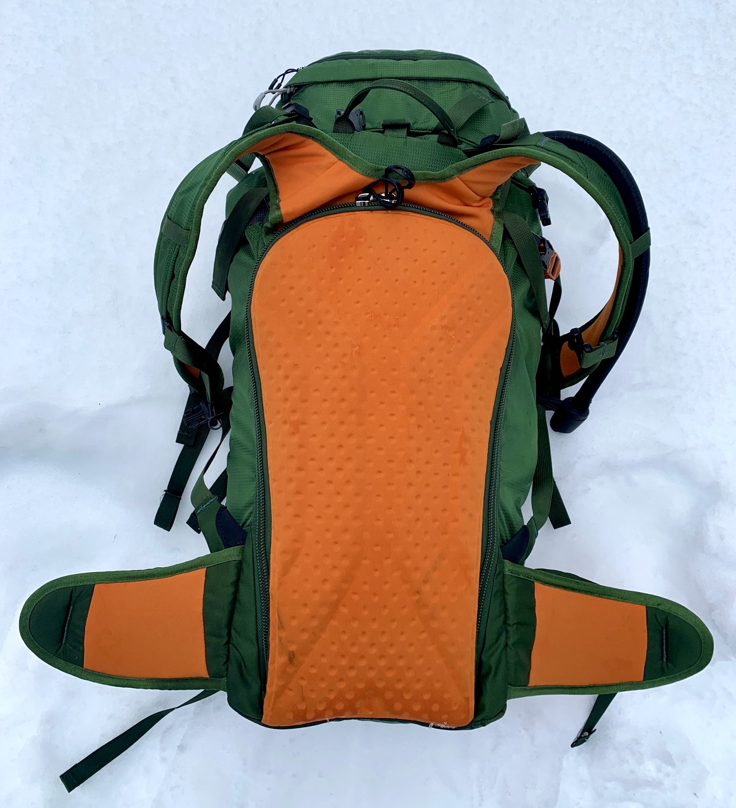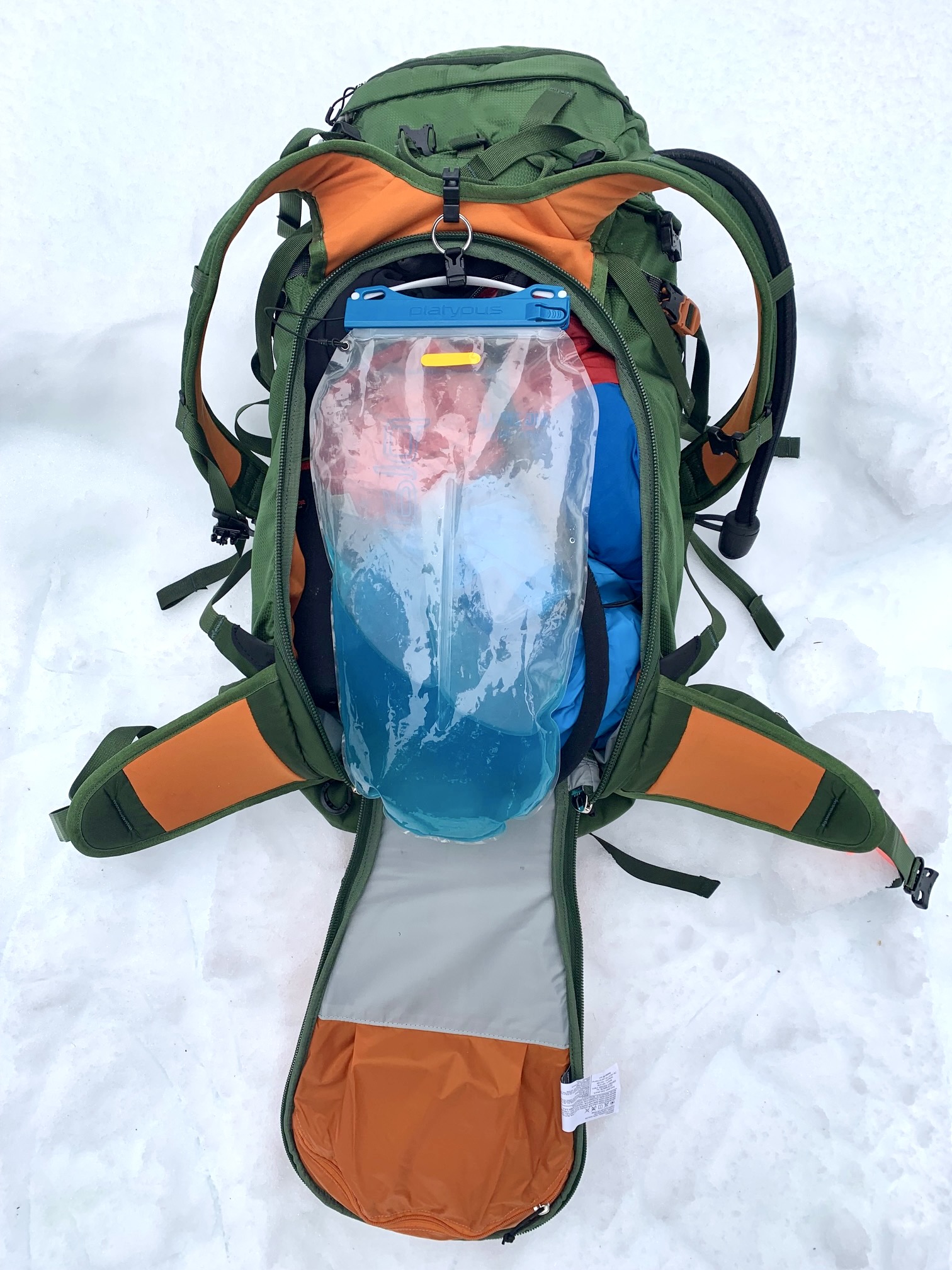 - Backpanel access requires swinging hydration bladder out of way, which is slightly less convenient than alternative system used on Osprey Kode/Kamber/Kresta and some other snow packs.