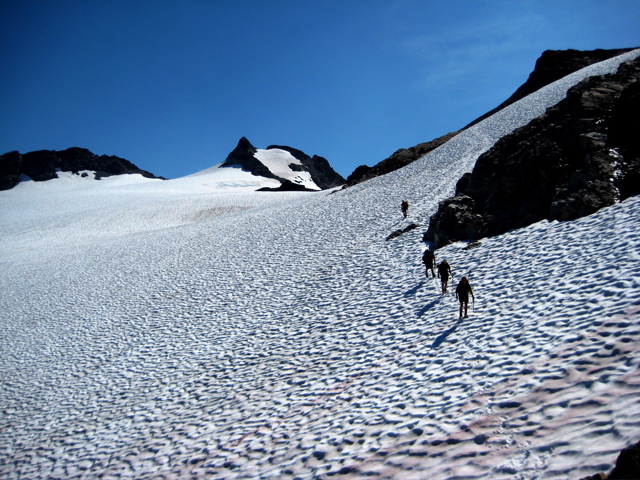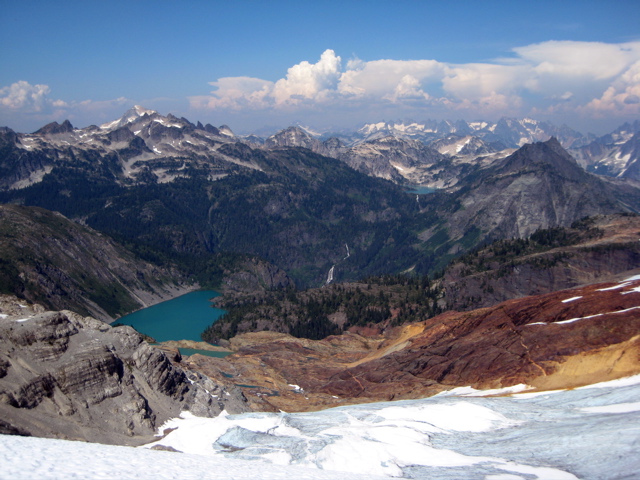 Summit: Bacon Peak (dirt scramble & snow climb via South Basin—South Ridge; descent via Green Lake Glacier—North Ridge)
