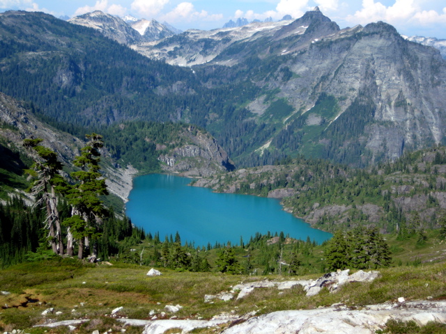 - Bacon Peak and Green Lake from Mount Hagan meadows