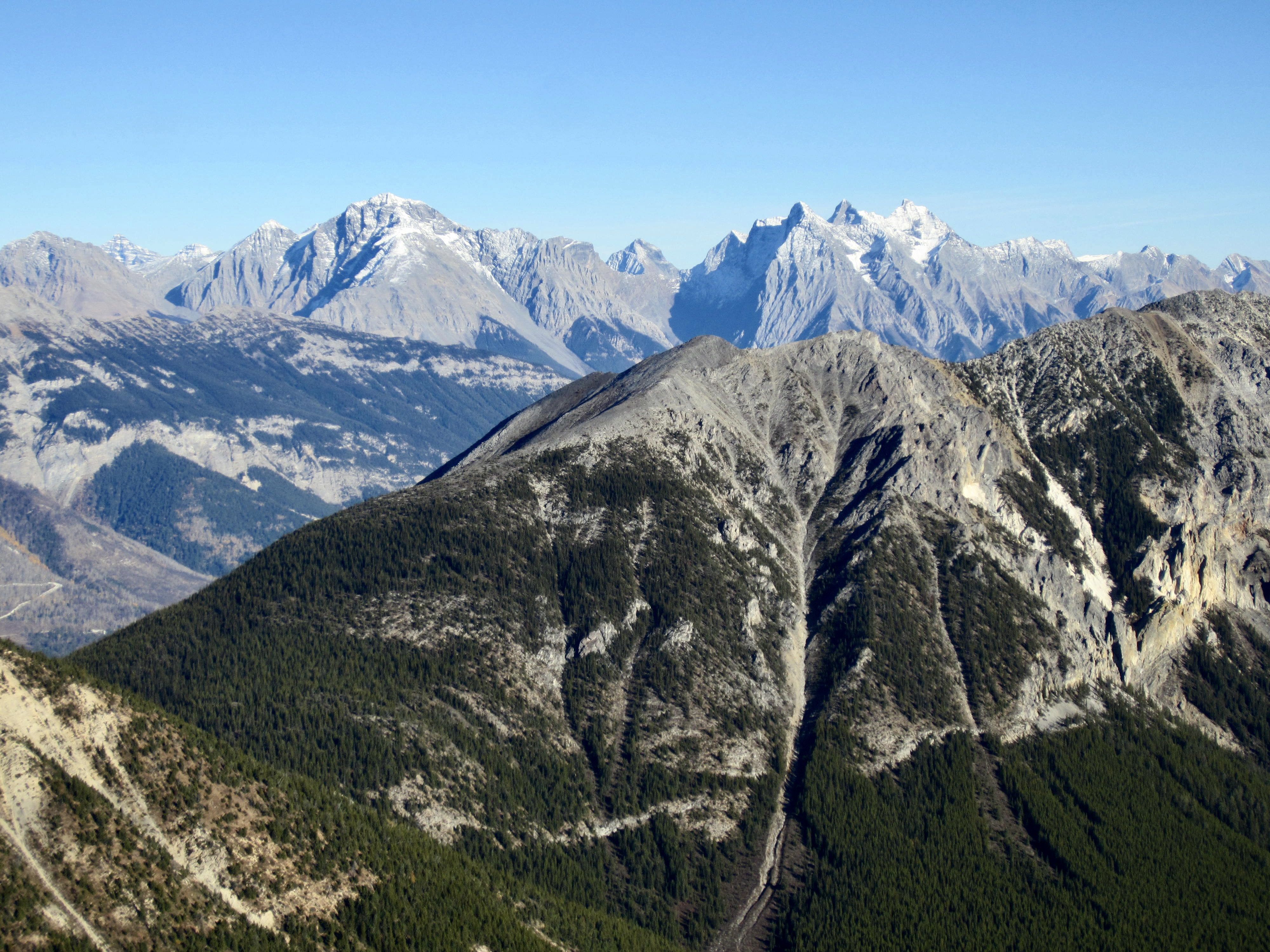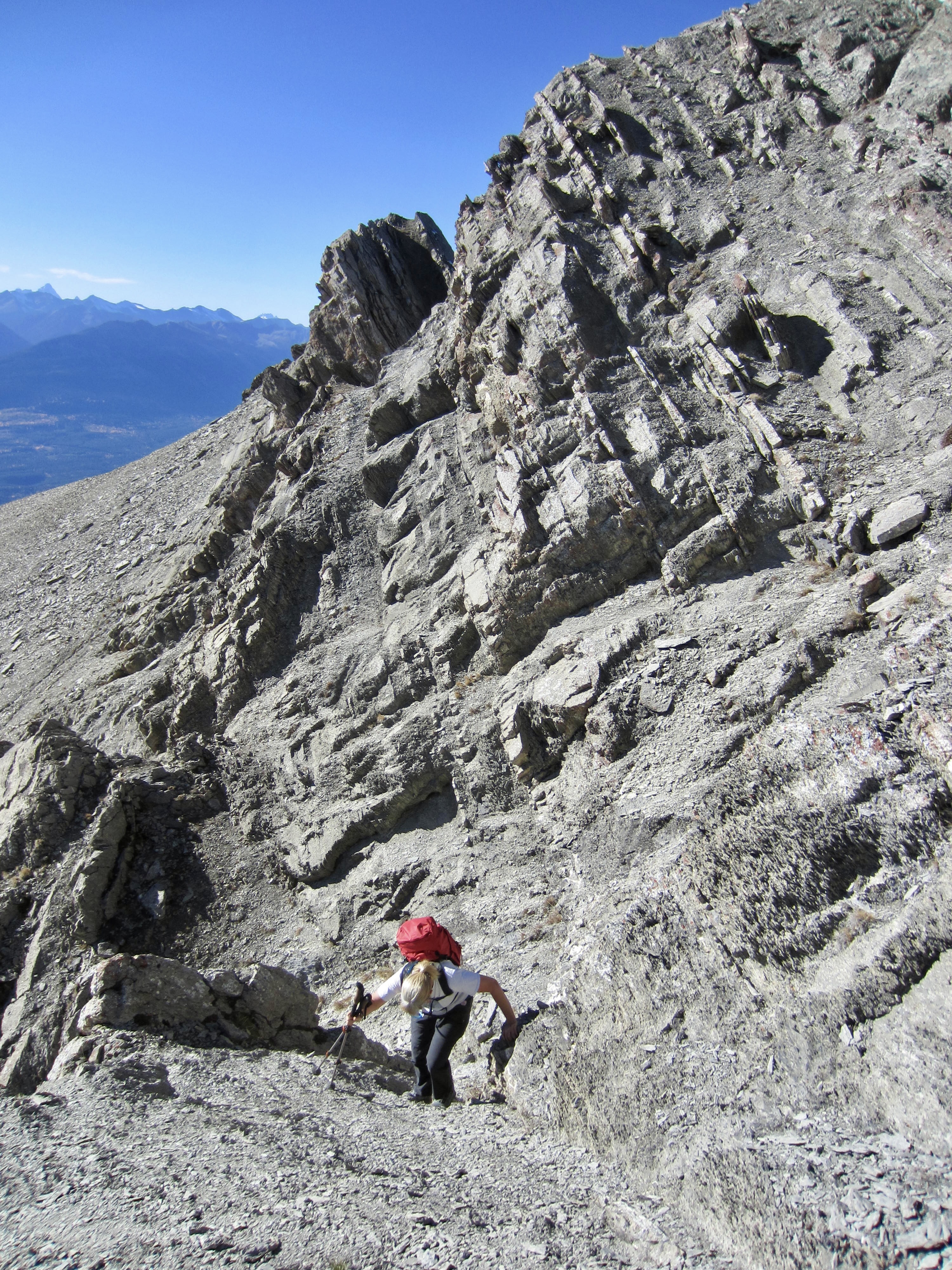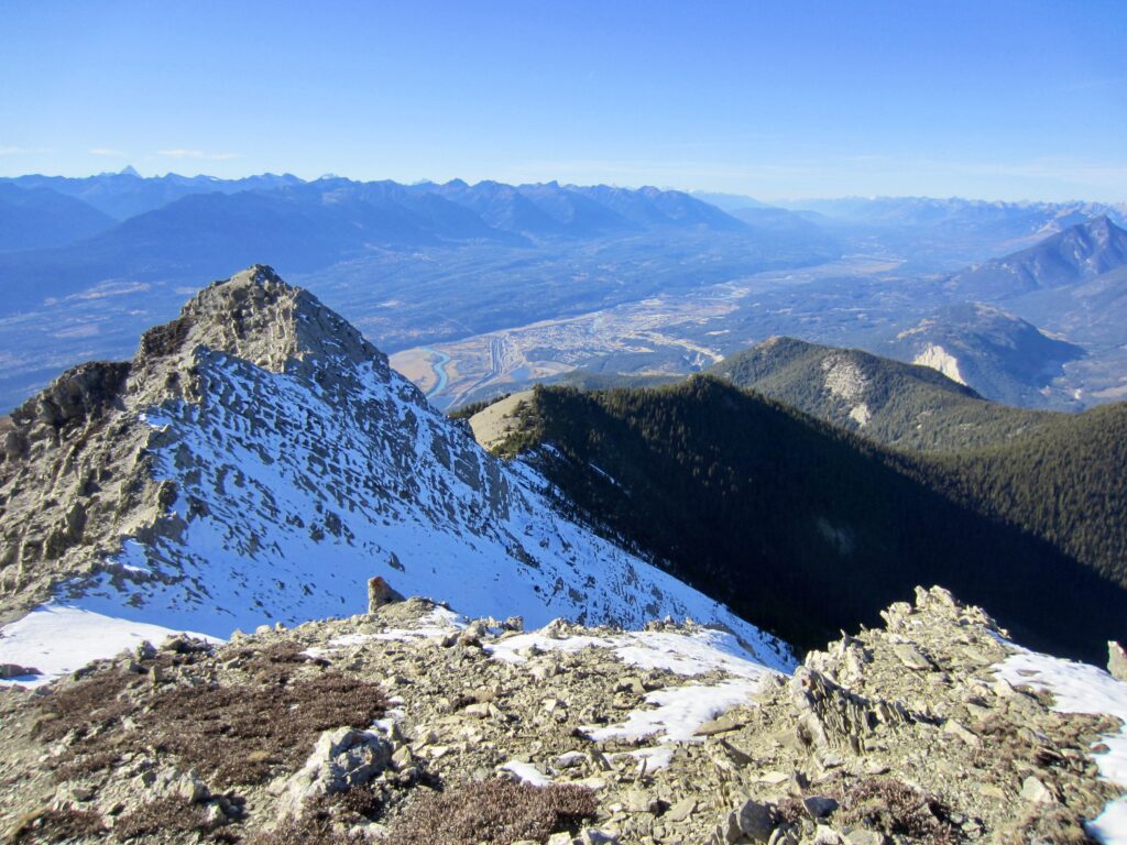 During our drive from British Columbia to Alberta, Eileen and I had half a day to spend in the small mountain town of Golden.  We selected Beaverhead Peak (known as “Mount 7” by the locals) as a summit objective.  This 8250-foot peak anchors the northwestern end of the Beaverfoot Range, which occupies the acute “V” formed by the Columbia River and Kicking Horse River confluence.