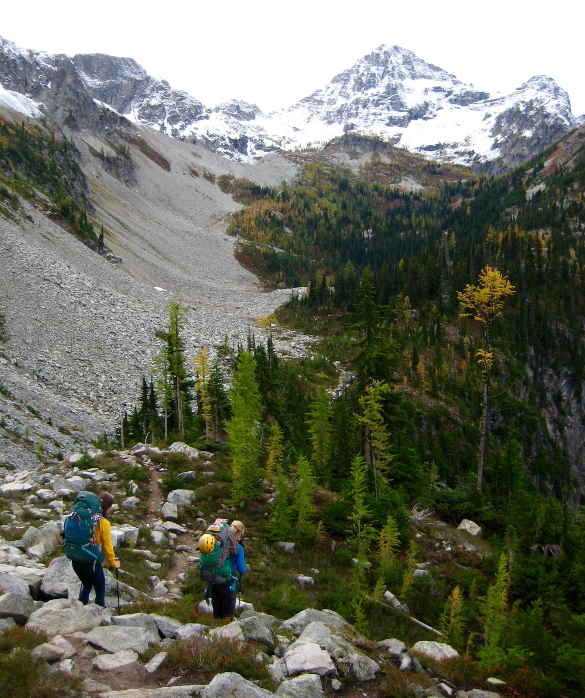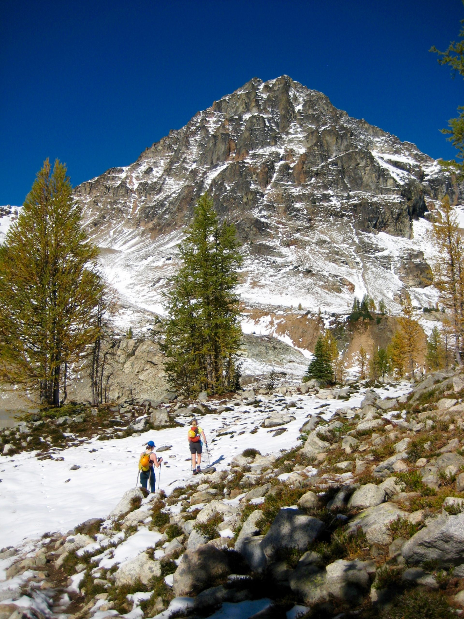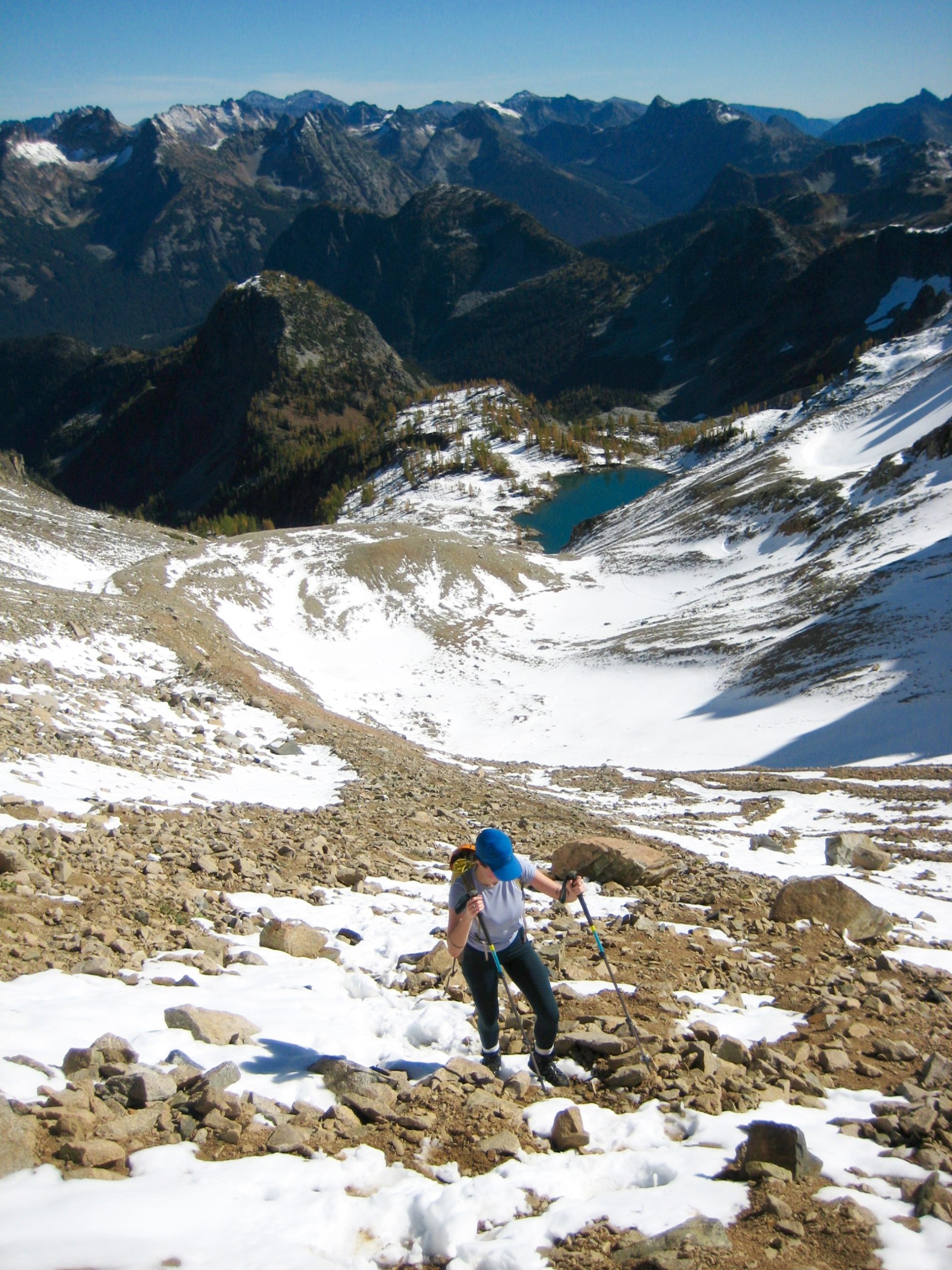 When we saw a bluebird forecast immediately following the first snowfall of the season, Eileen, Brooke, and I took the opportunity to combine a hike of the uber-popular Maple Pass Loop with a climb of equally popular Black Peak.  It proved to be a winning combination.