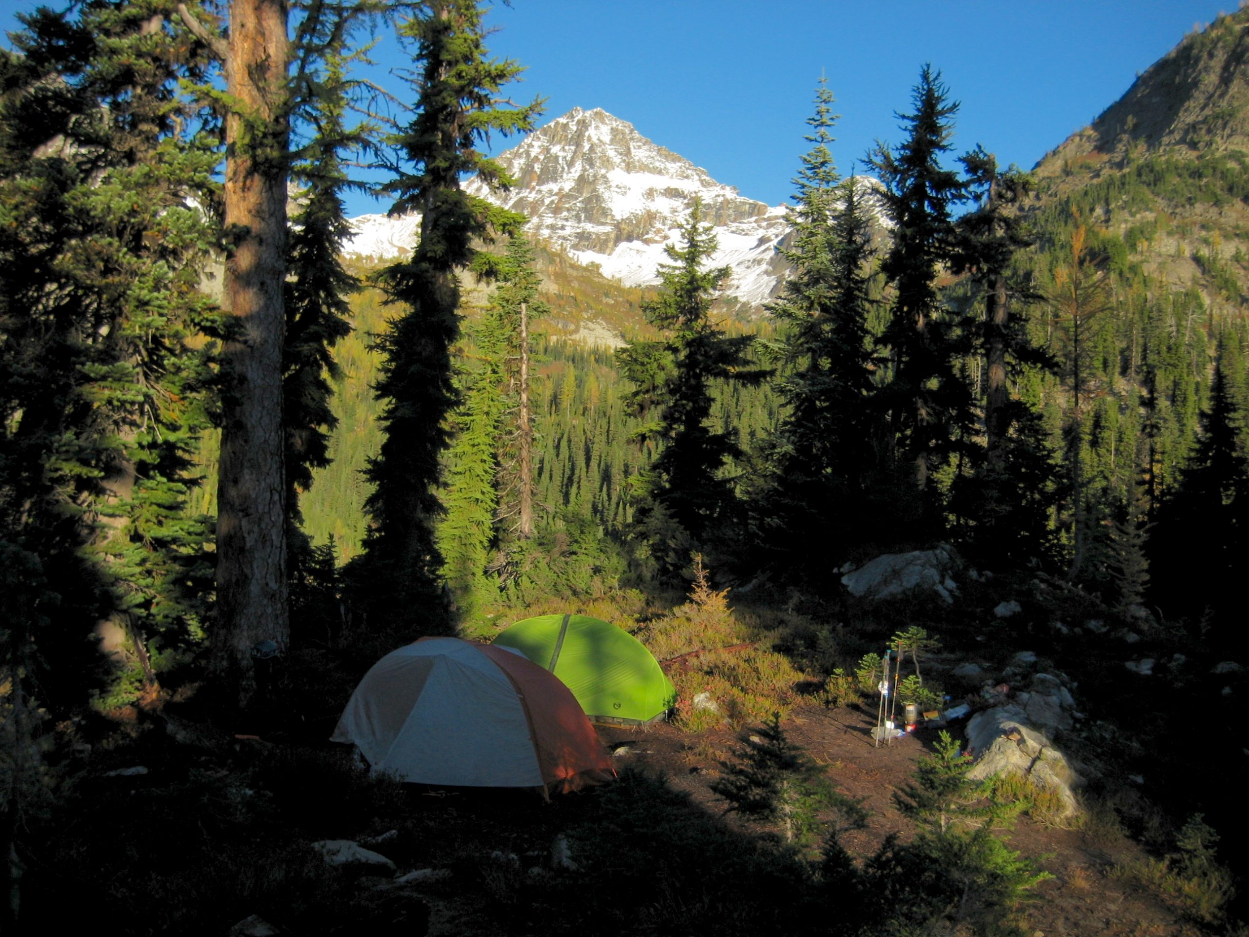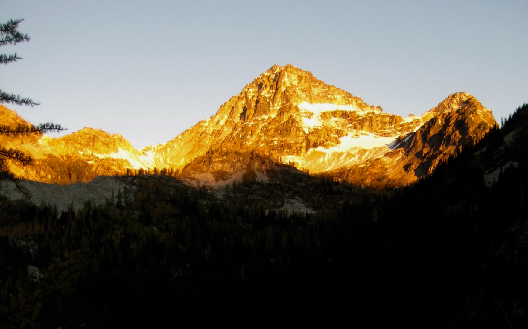 Alpenglow was highlighting Black Peak when we awoke at 6:30am and packed up camp.  It was shaping up to be another bluebird day in the mountains.