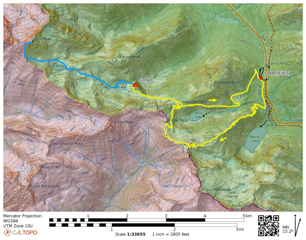 Starting & Ending Point: Heather Pass / Lake Ann / Rainy Lake Trailhead on Highway 20 (Elev. 4850 feet)