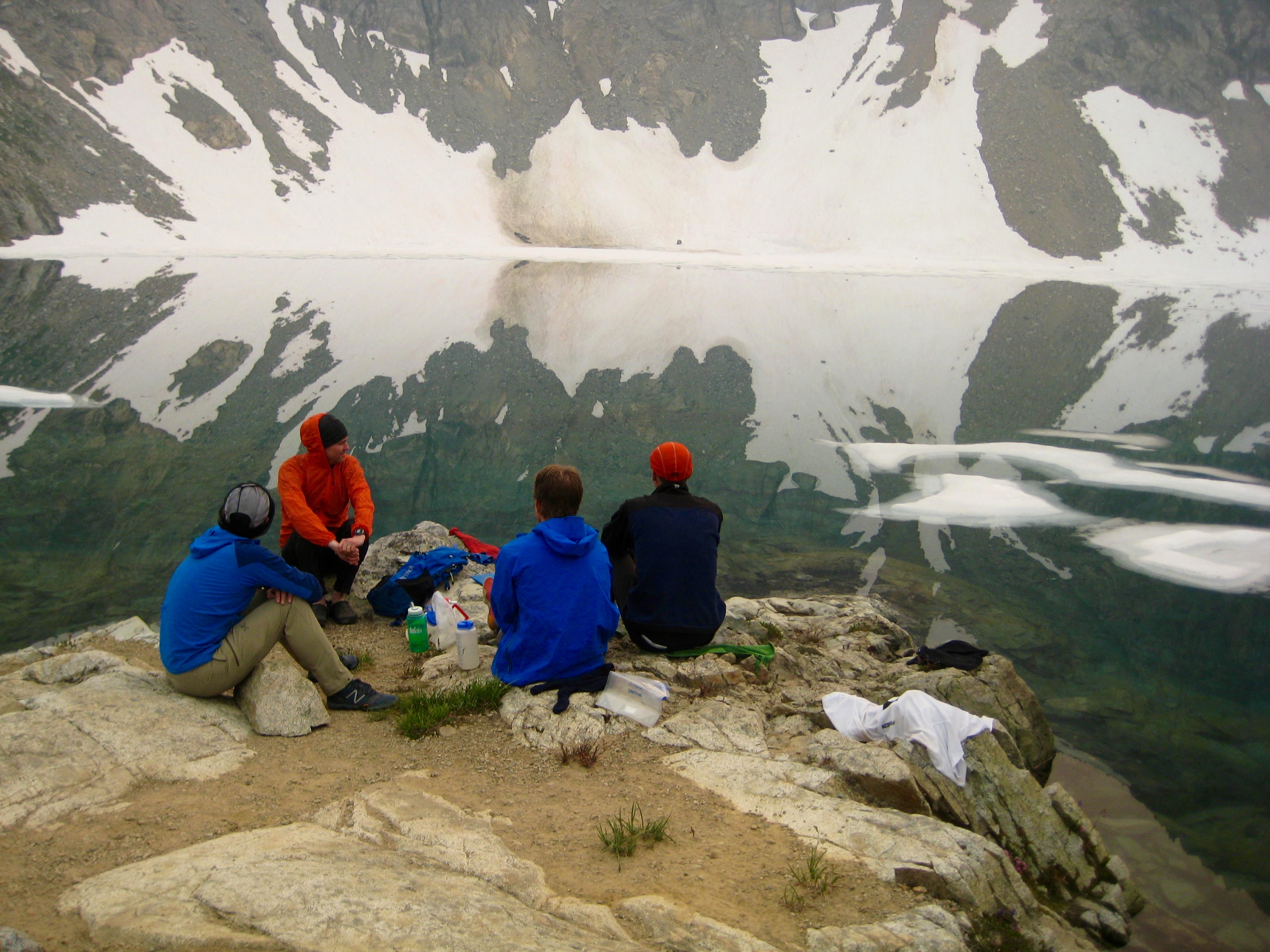 You might guess that the abundance of people and pleasant weather would devolve into alpine hijinks, and you would be correct. One person from the MSR group ended up on a small iceberg in the lake and then spent an hour trying to paddle back to shore. This whole raucous environment was quite a contrast to the previous quiet afternoon.