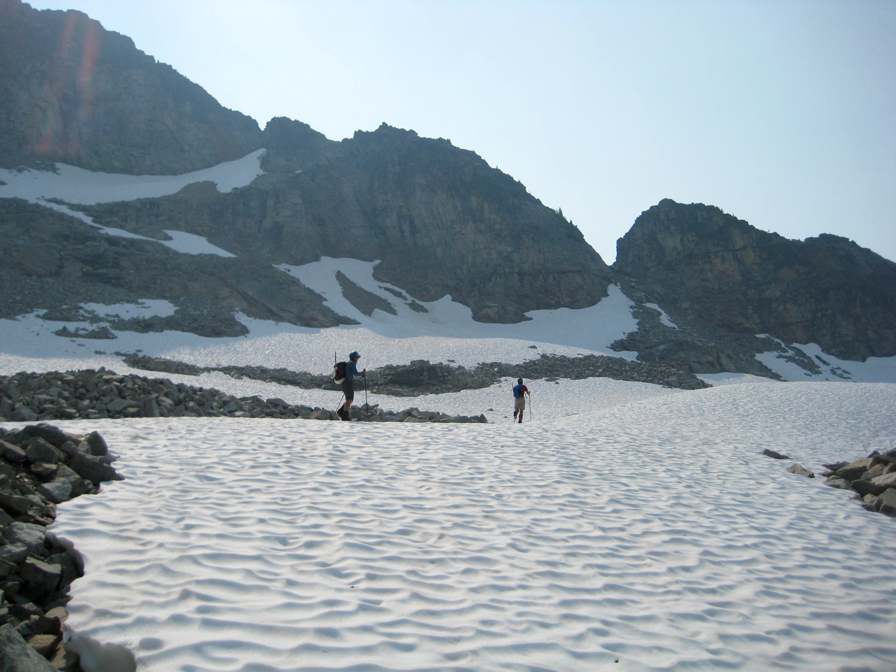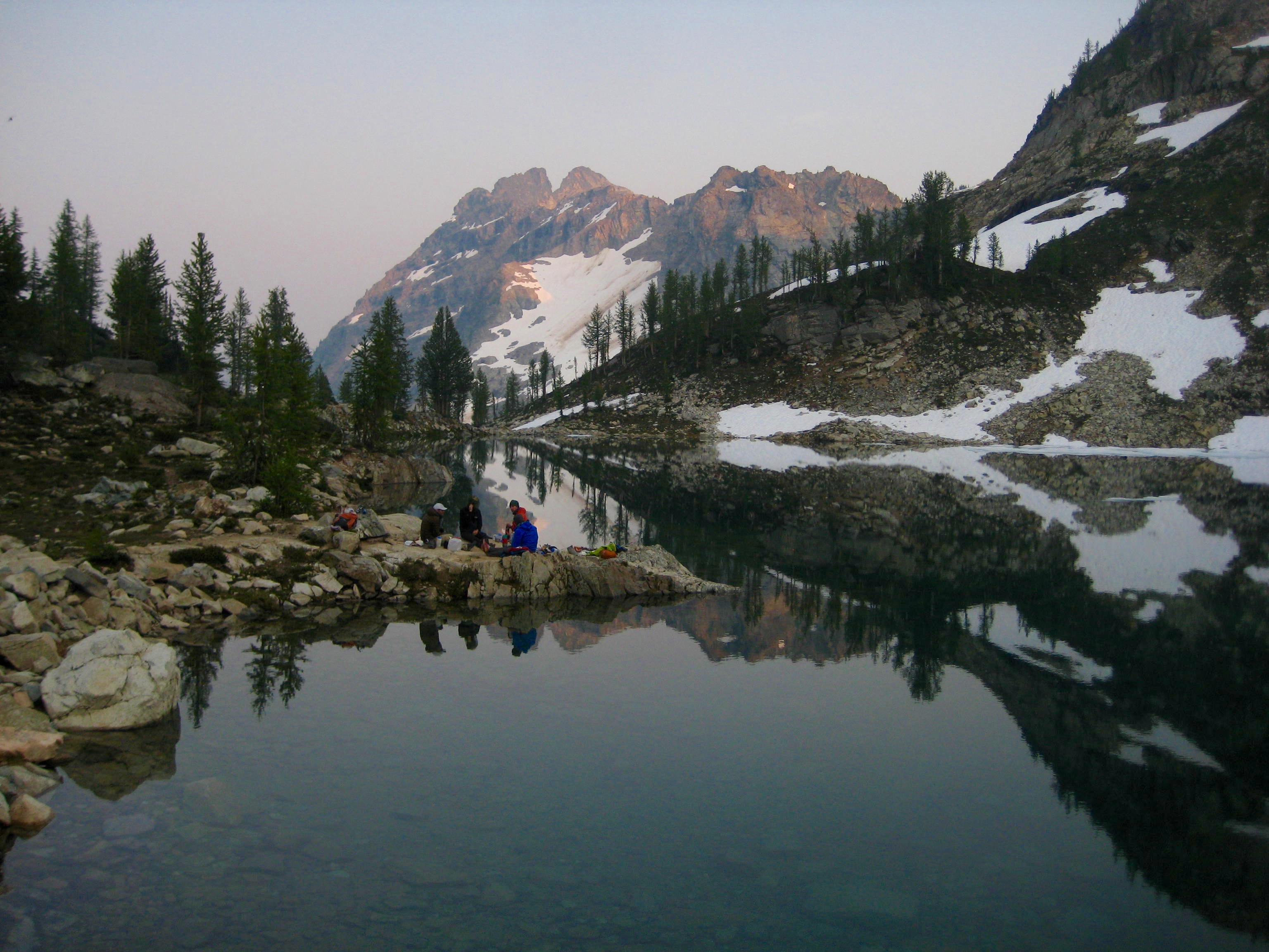 We ate dinner on a rocky projection and watched the filtered evening sun wash over Corteo Peak, while Eric vainly tried to explain the meaning of transfinite numbers, surreal numbers, and aleph-one. Perhaps we were too distracted by the alpine ambiance to understand.