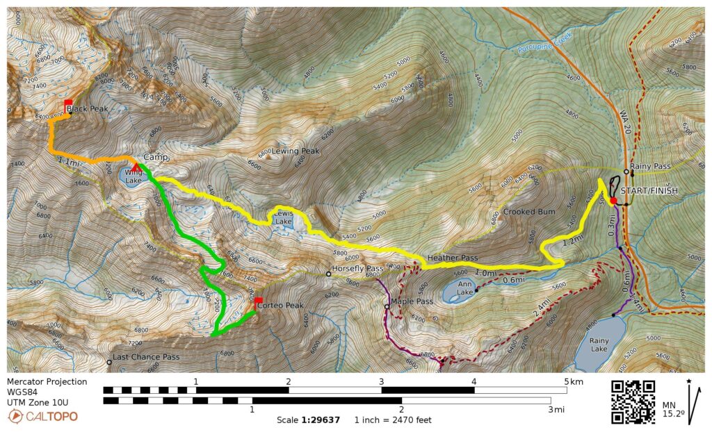 Starting & Ending Point: Heather Pass / Lake Ann / Rainy Lake Trailhead on Highway 20 (Elev. 3700 feet)