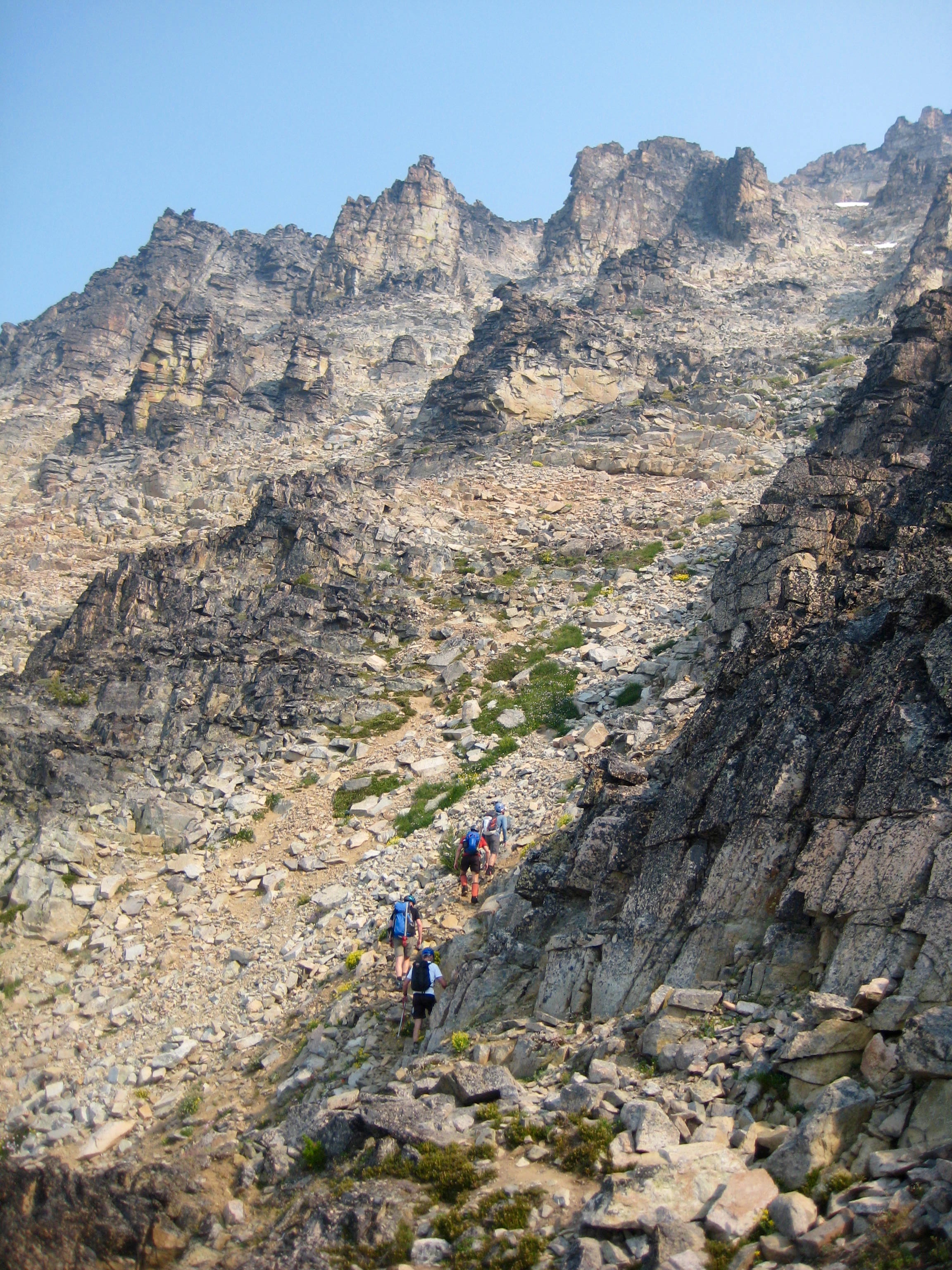 After reaching the south ridge, we turned right (north) and ascended a broad scree-and-talus chute for about 1000 feet.