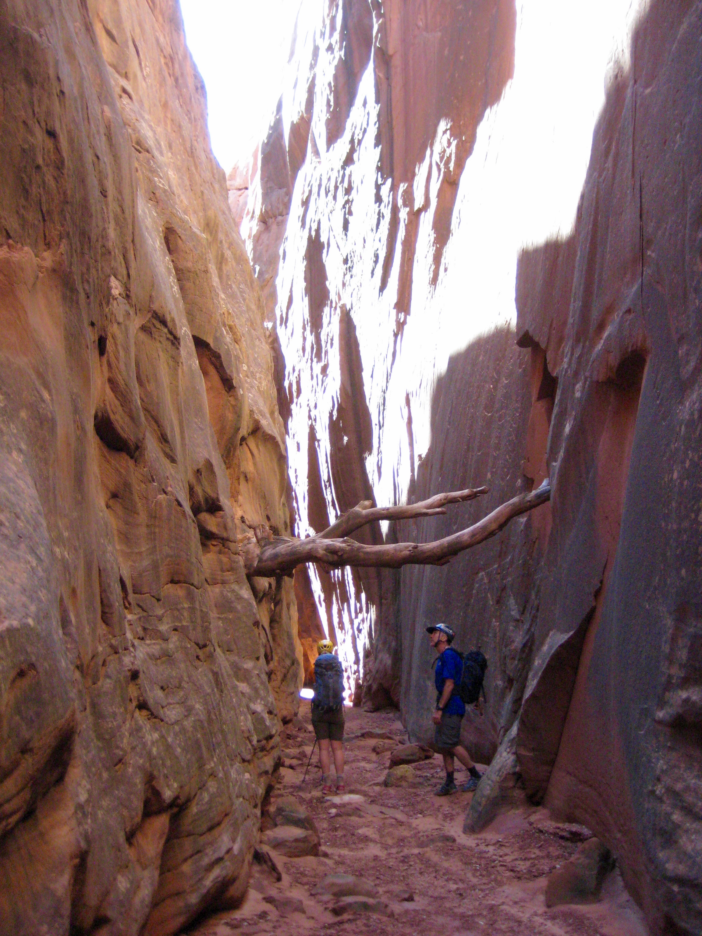 Eventually, we came to a confluence of the Little West and Main branches of Bluejohn Canyon (3.2 hours from car). It felt good to see the sky again.