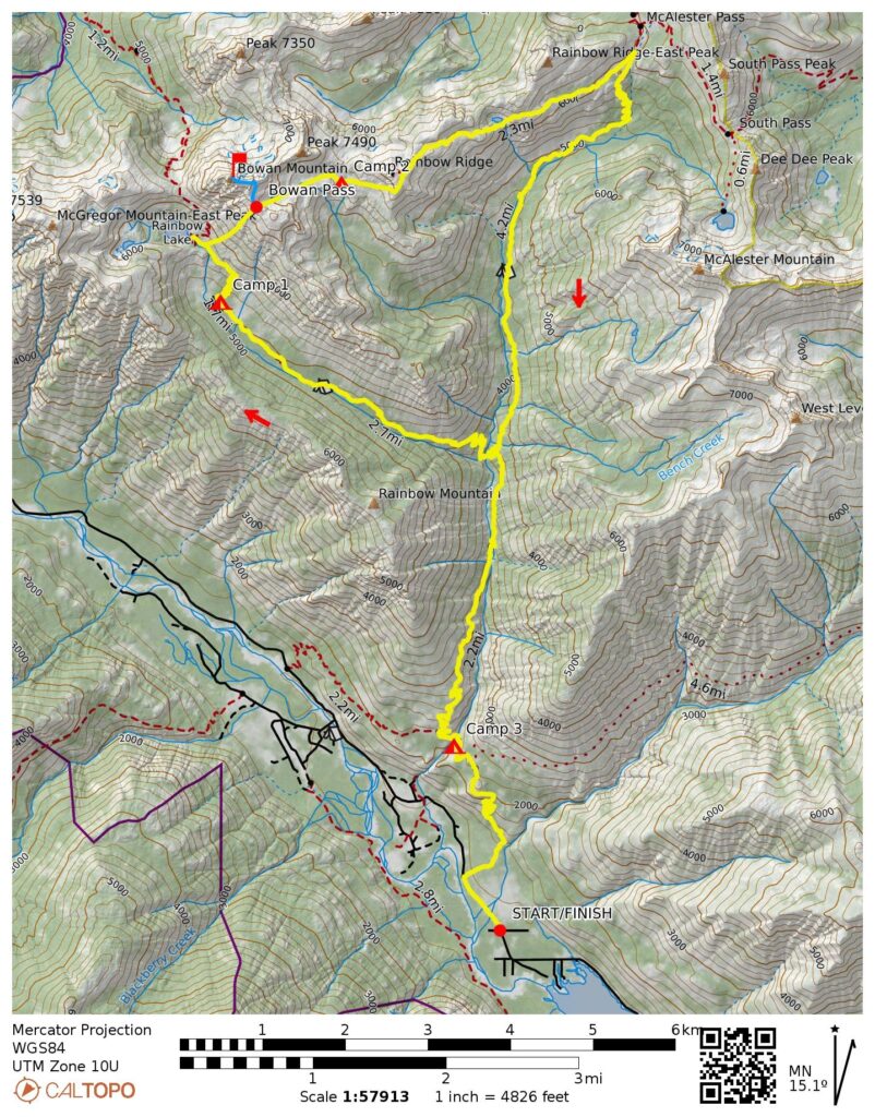 Bowan Mountain Climbing Trip & Rainbow Ridge Loop: Rainbow Lake to McAlester Pass