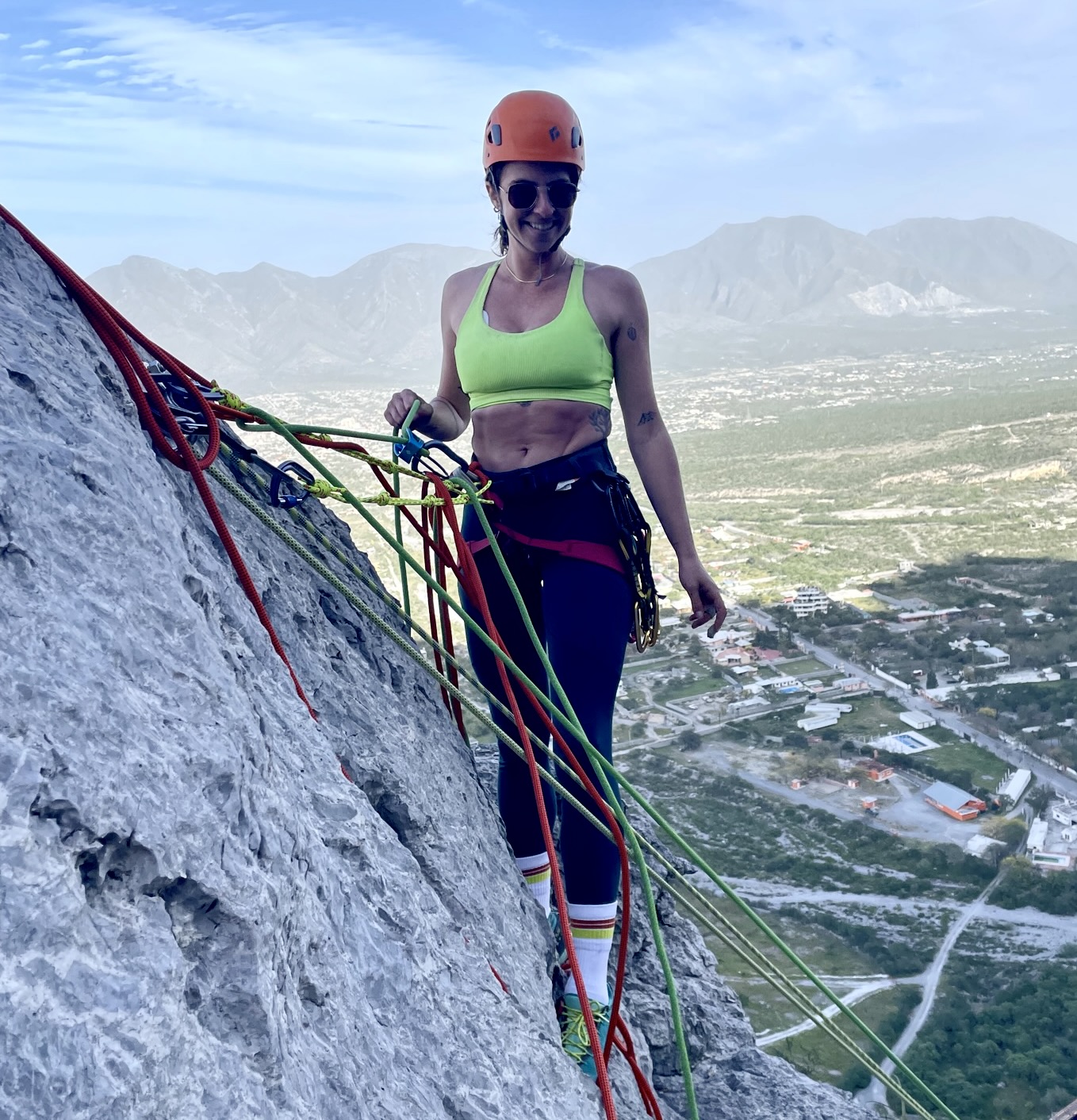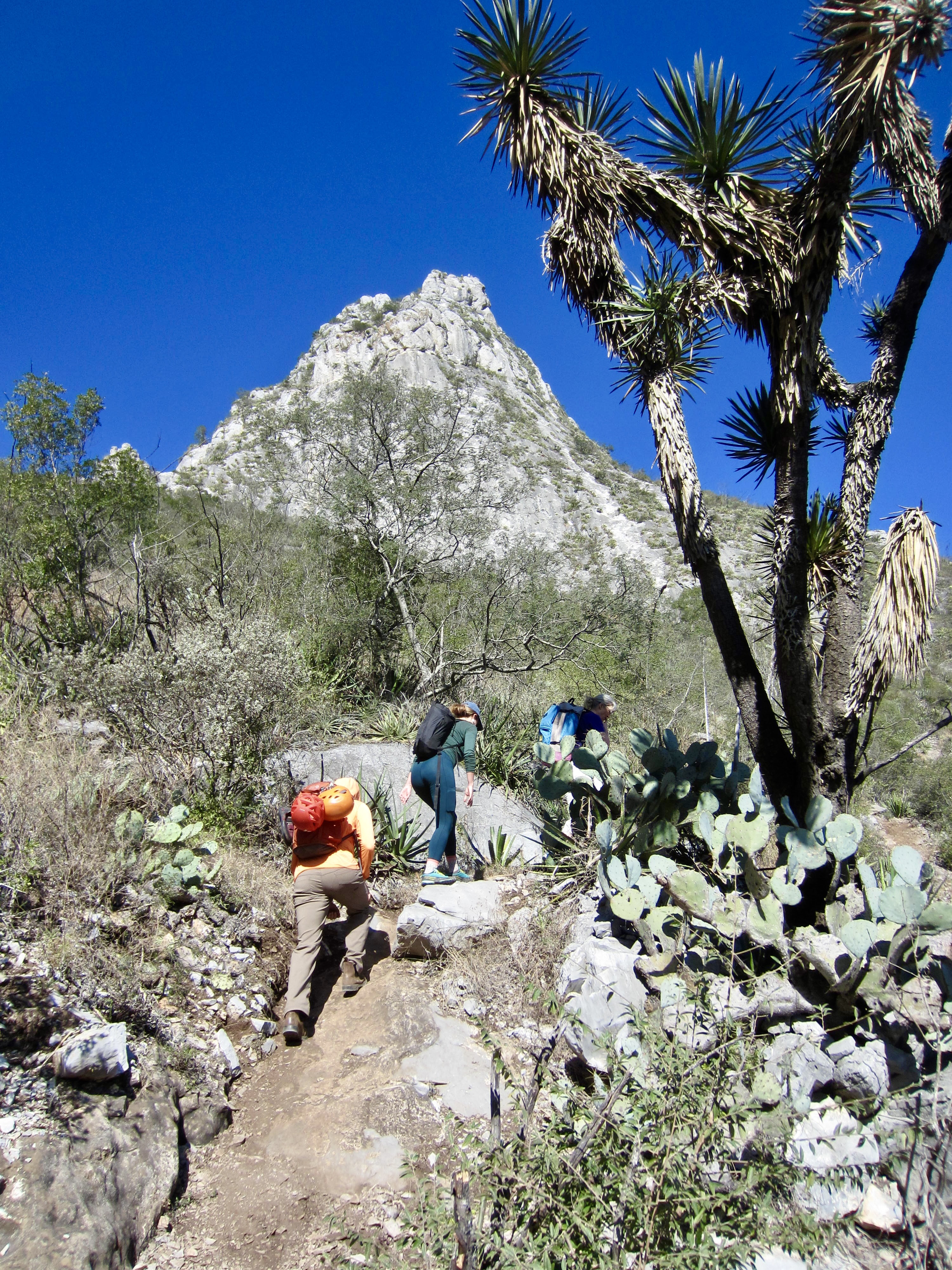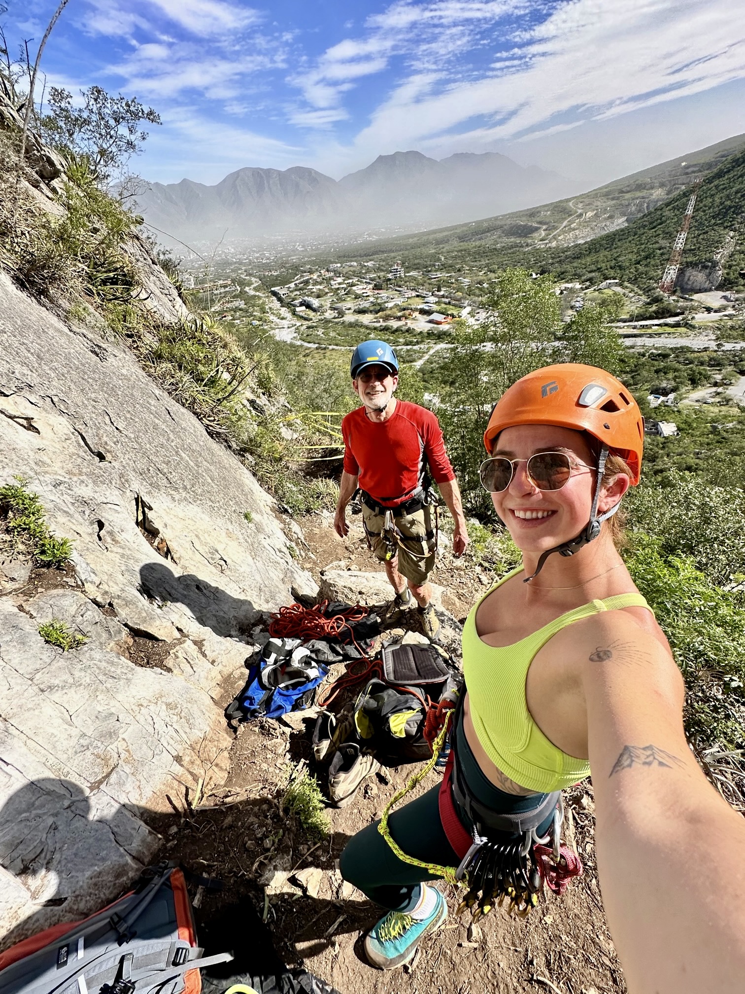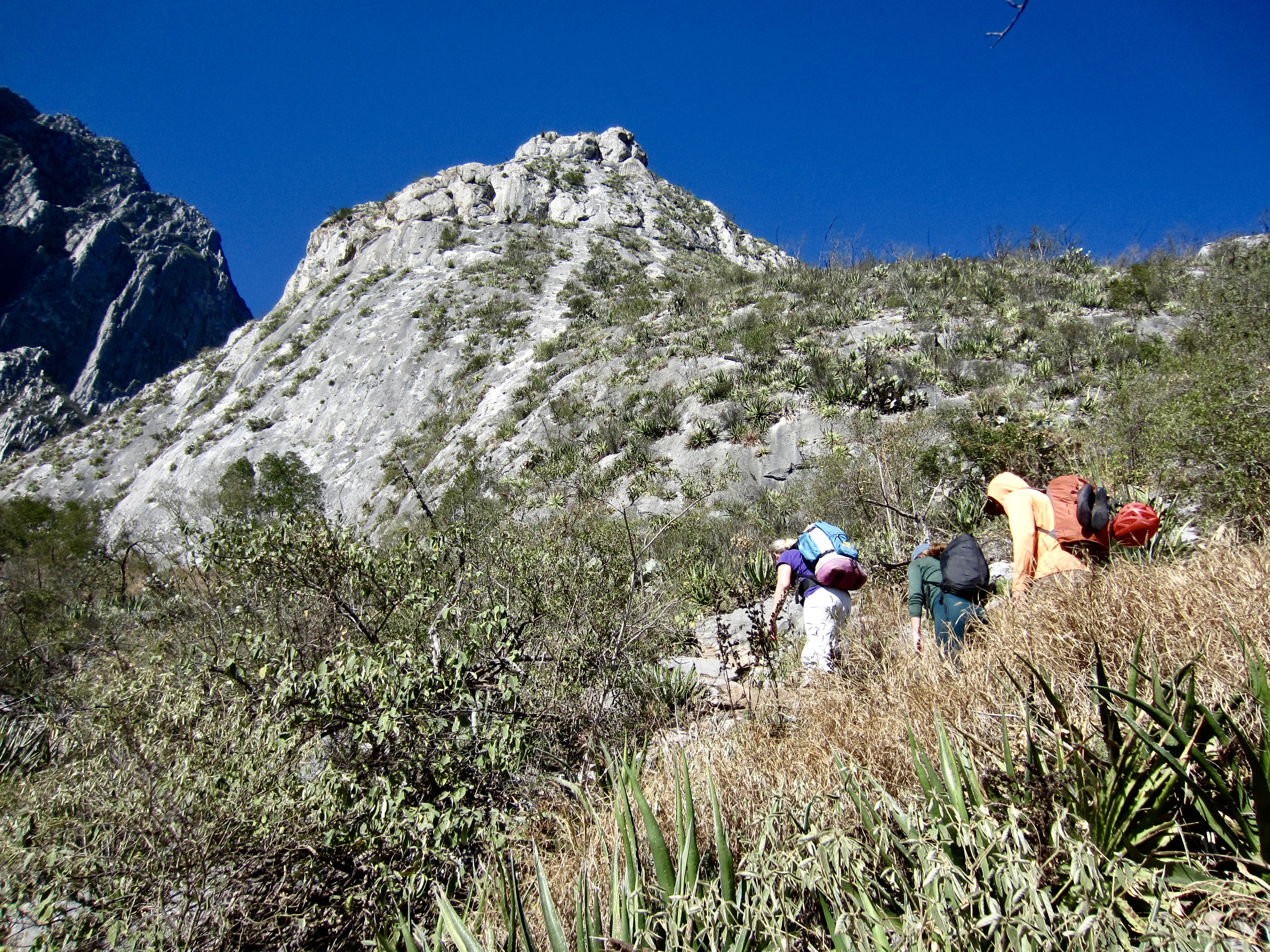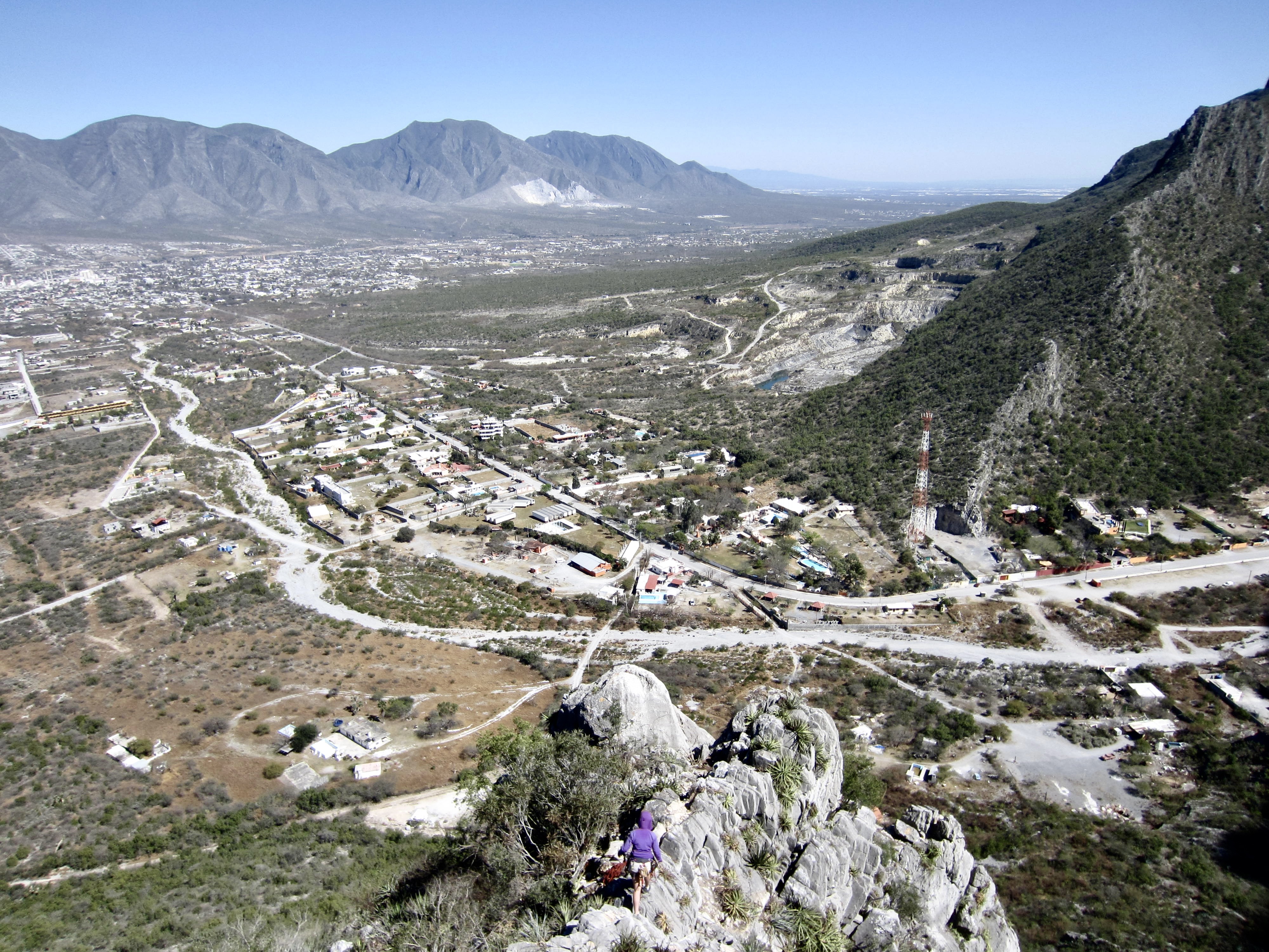 During a short rock-climbing trip to Potrero Chico Recreational Park (“PoCho”) in northeastern Mexico, Eileen and Brooke and I spent a day at Buzz Rock. Our objective was Five-Pitch Harmony, a multi-pitch sport route that Brooke had been eyeballing. An interesting aspect of this route is that the five pitches increase from Class 5.5 to 5.9 in a nearly regular progression. More importantly, it is also reported to be generously bolted, which is something we all would appreciate.