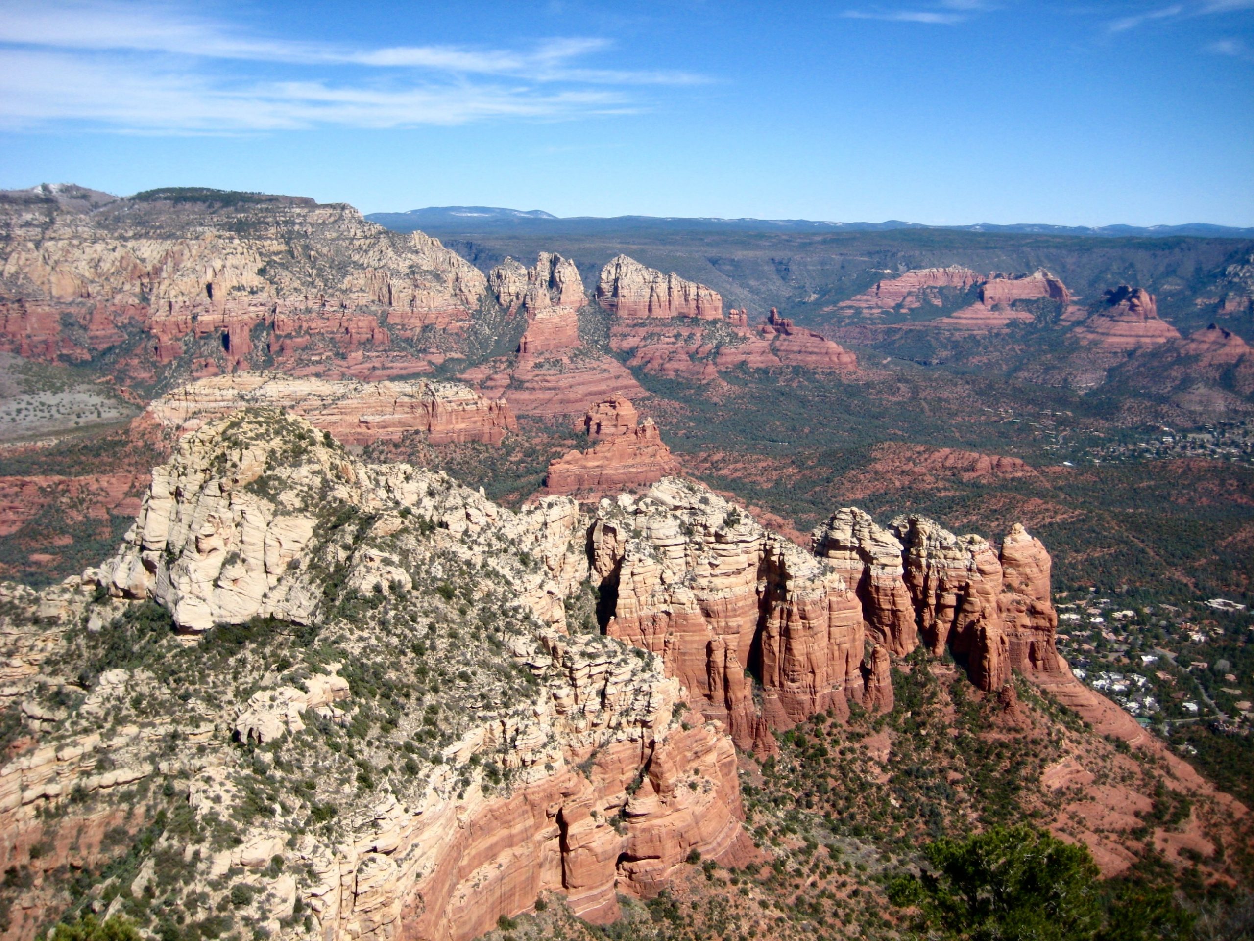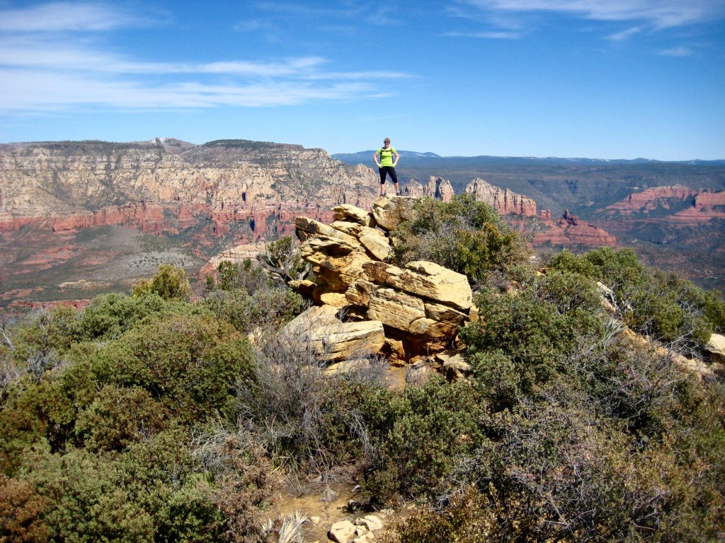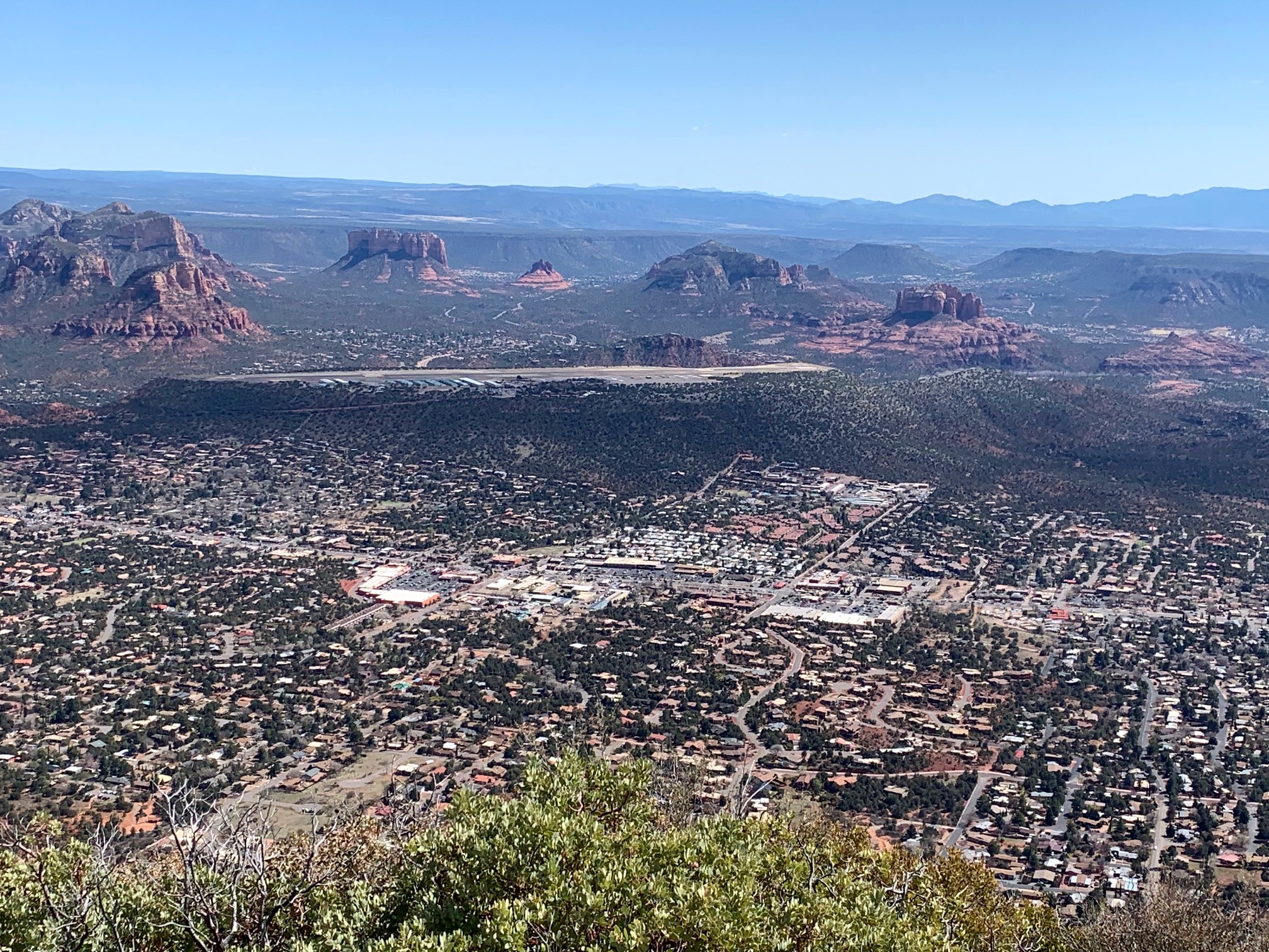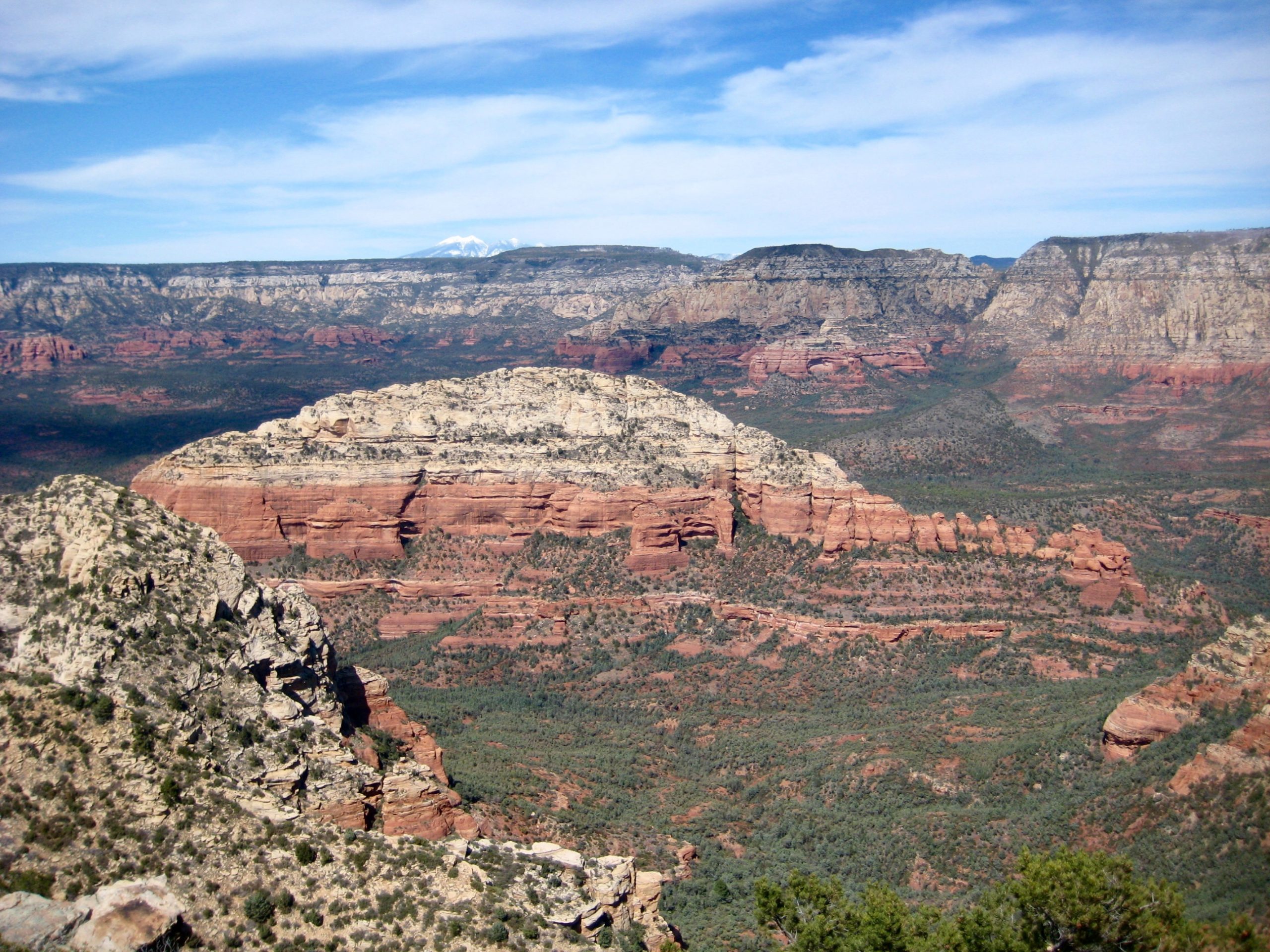 Capitol Butte offers an excellent view of the entire Sedona area, stretching from Wilson Mountain to Courthouse Butte to Bell Rock to Cathedral Rock. The airport mesa lay in the foreground, and the snow-capped San Francisco Peaks—located near Flagstaff—were visible far to the north.