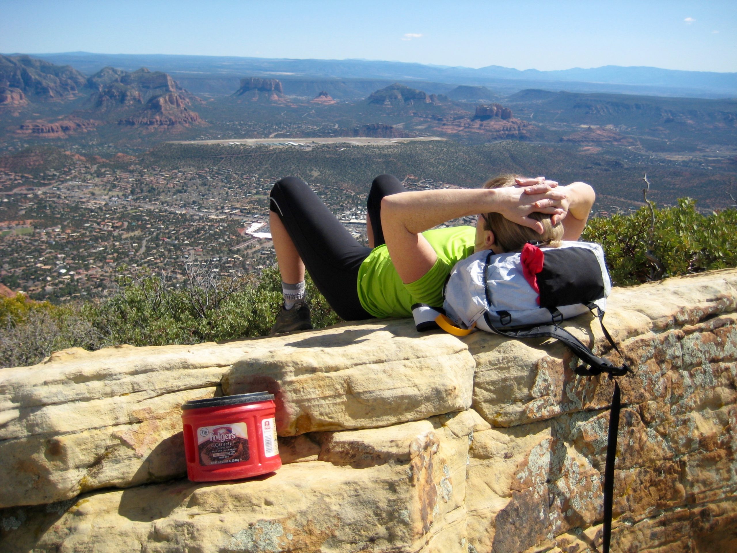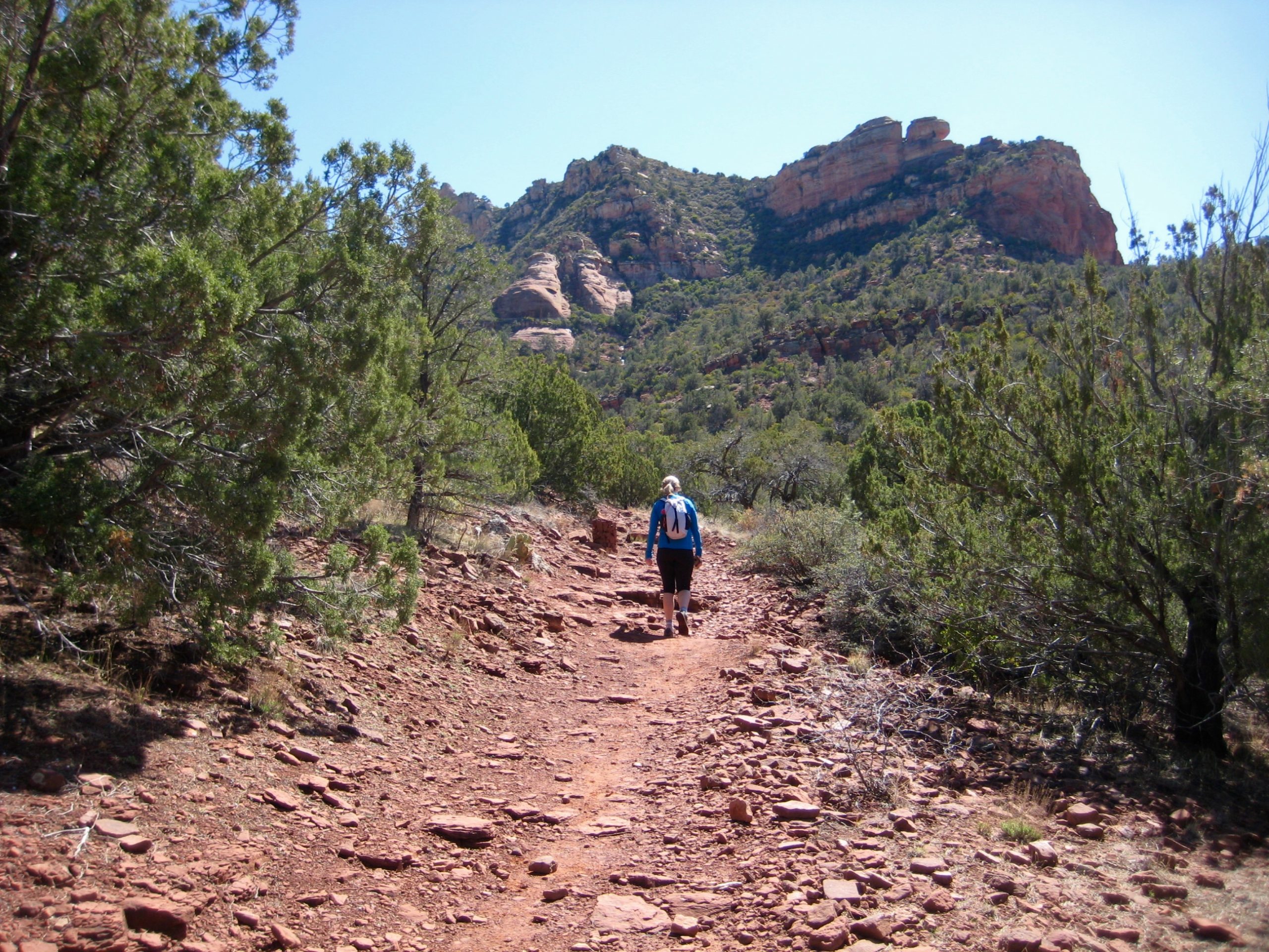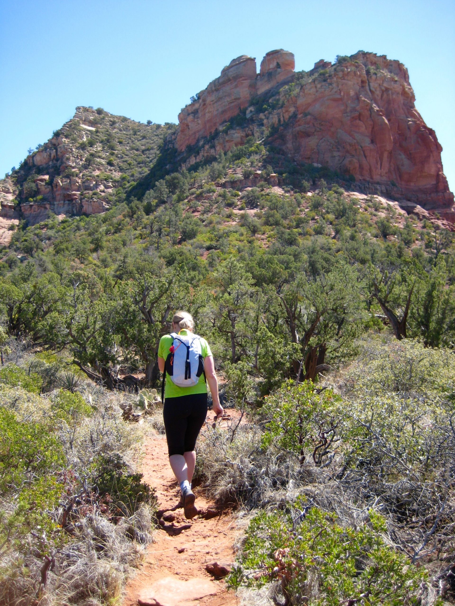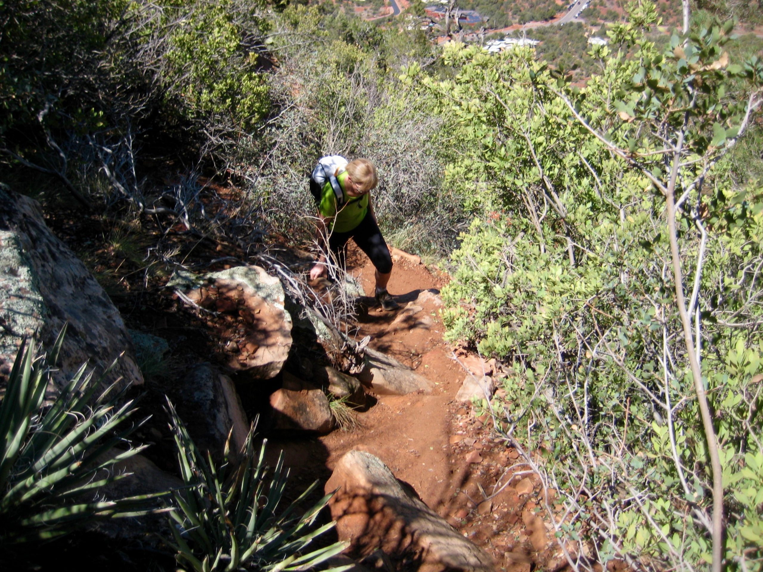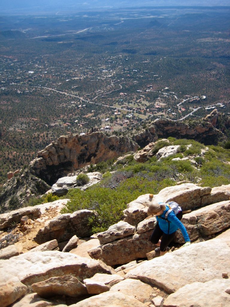 We descended by carefully retracing our up-route and were back at the trailhead in late afternoon (2.2 hours + 100 feet from summit). This interesting hike-and-scramble proved to be a perfect ending to our Sedona visit.