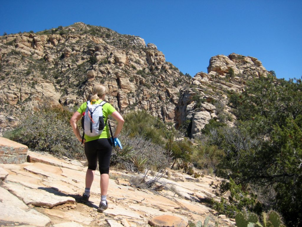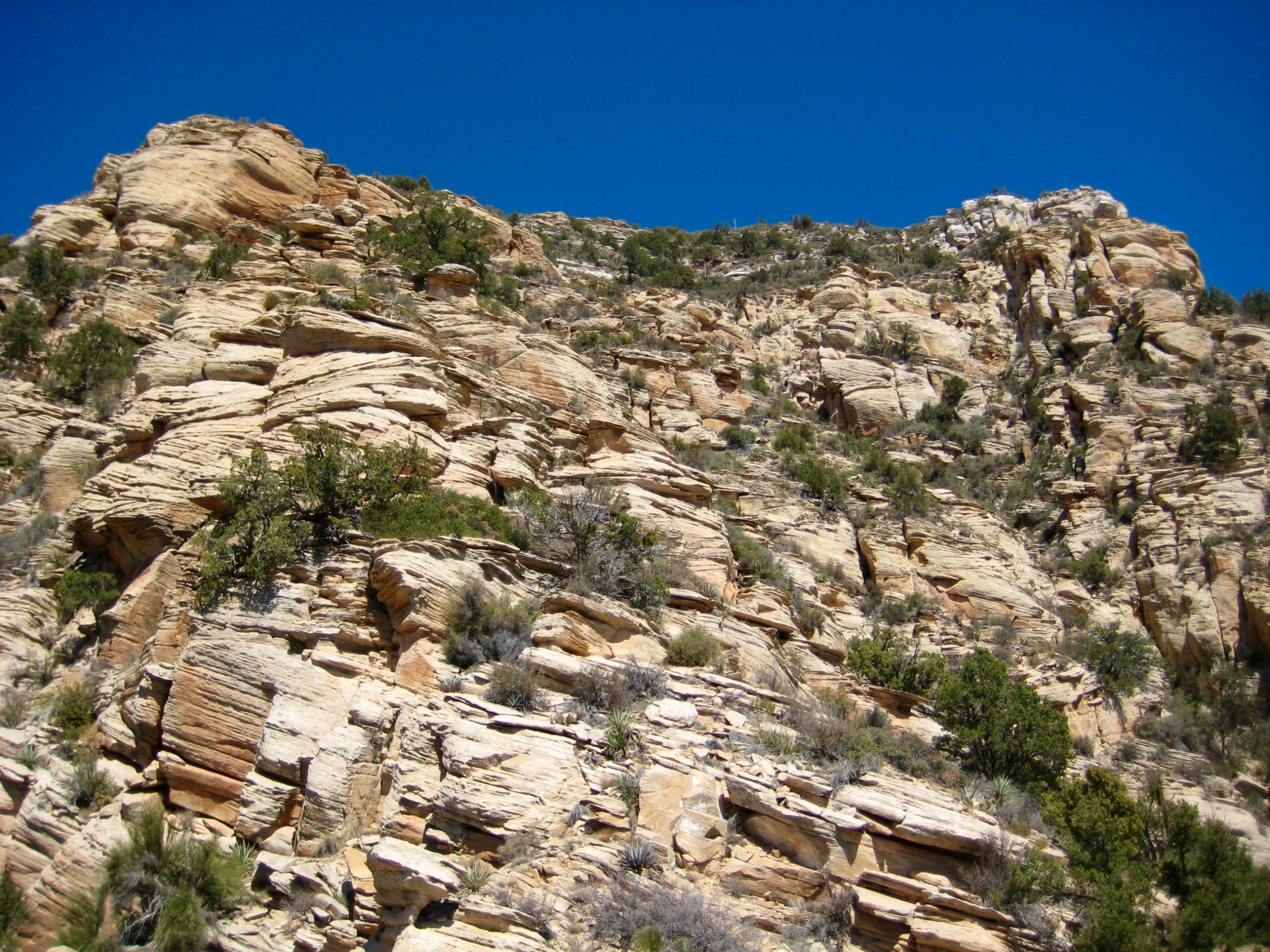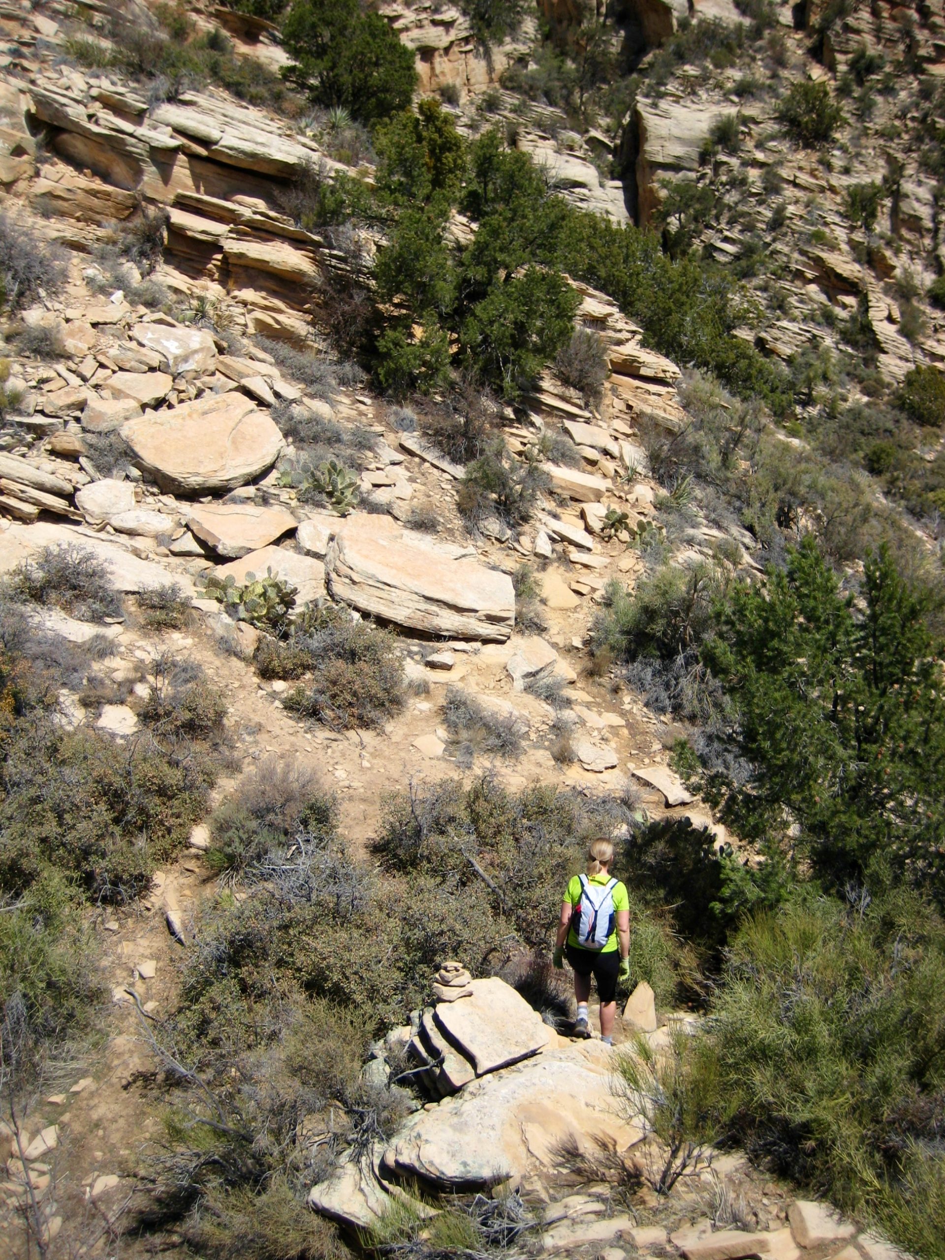 After a short distance, we turned left (east) on an unmarked but well-defined side trail that leads up Lizard Ridge and Capitol Butte. This side trail ascends steeply until encountering a vertical cliff, then traverses eastward along the cliff base.
