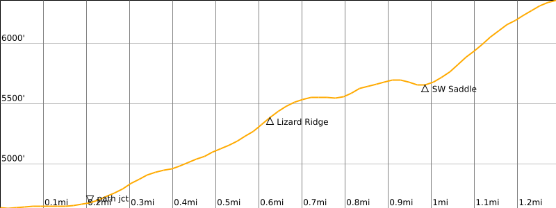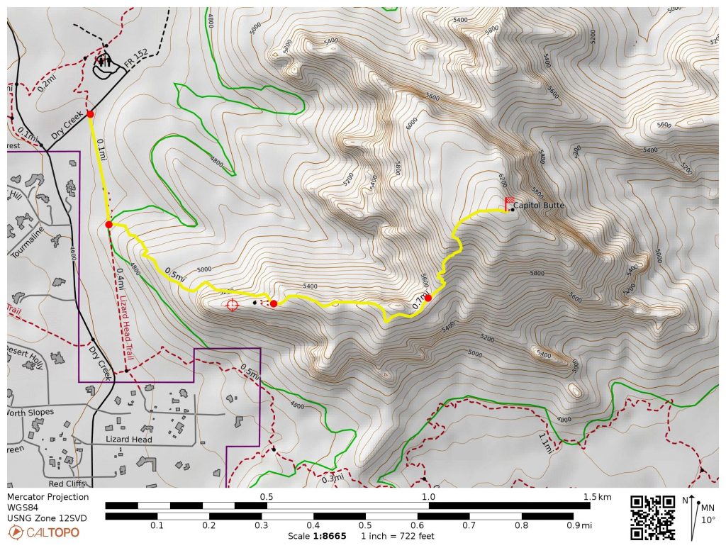 Way Points: Lizard Head & Lizard Ridge & Southwest Saddle & Capitol Butte summit (trail hike & off-trail hike & rock scramble)