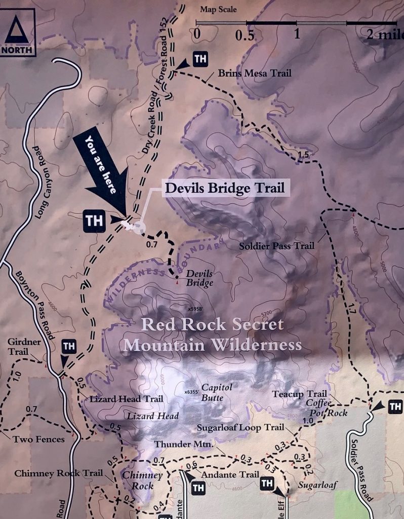 Eileen and I wrapped up our Sedona vacation with a climb of Capitol Butte, one of the most visible landforms in town. Starting at the Lizard Head Trailhead on Dry Creek Road, we hiked south toward Lizard Head—the local name for a rocky buttress on the long western arm of Capitol Butte. This buttress is capped by an outcrop that resembles a lizard when viewed from the north or south.