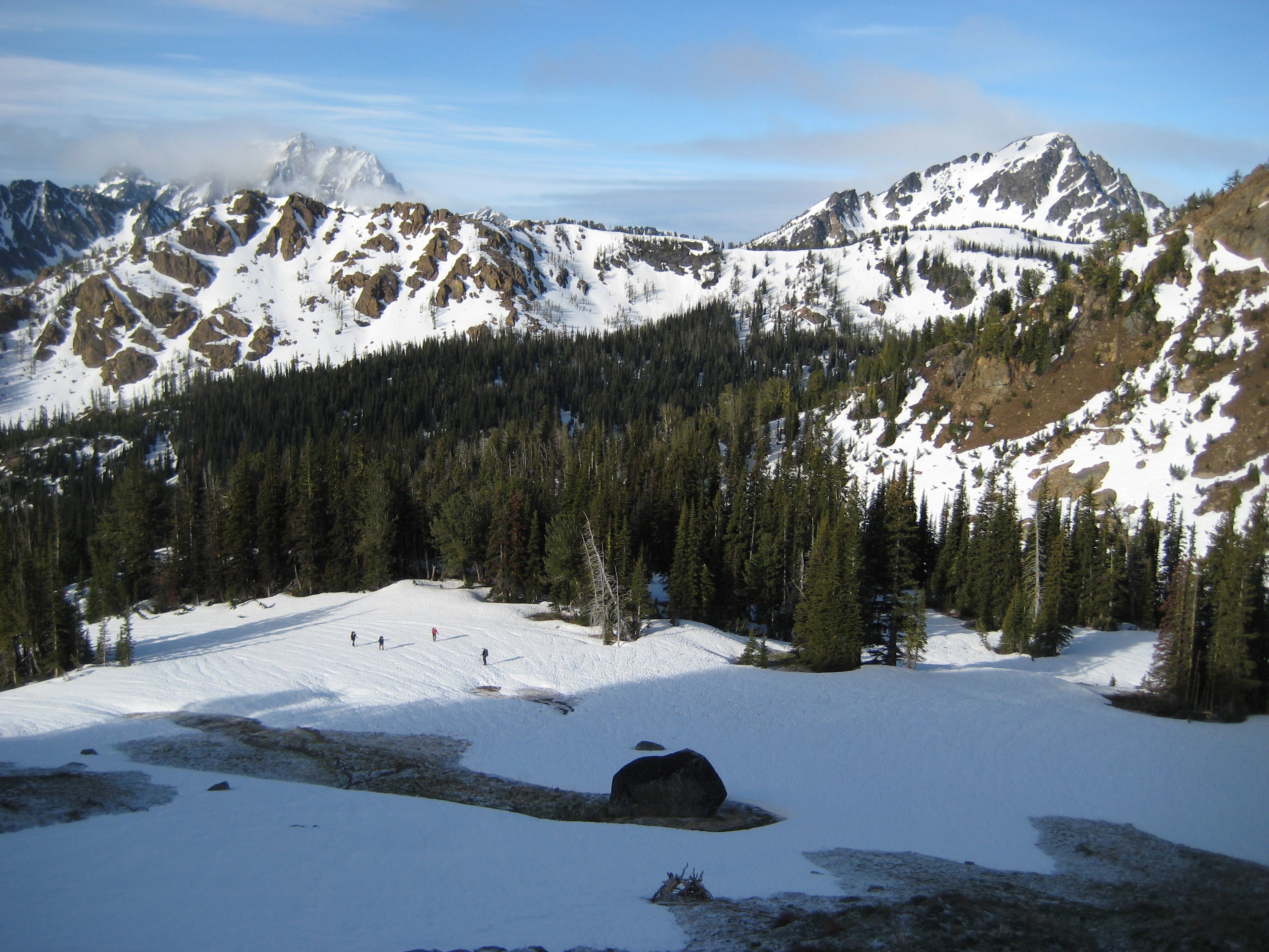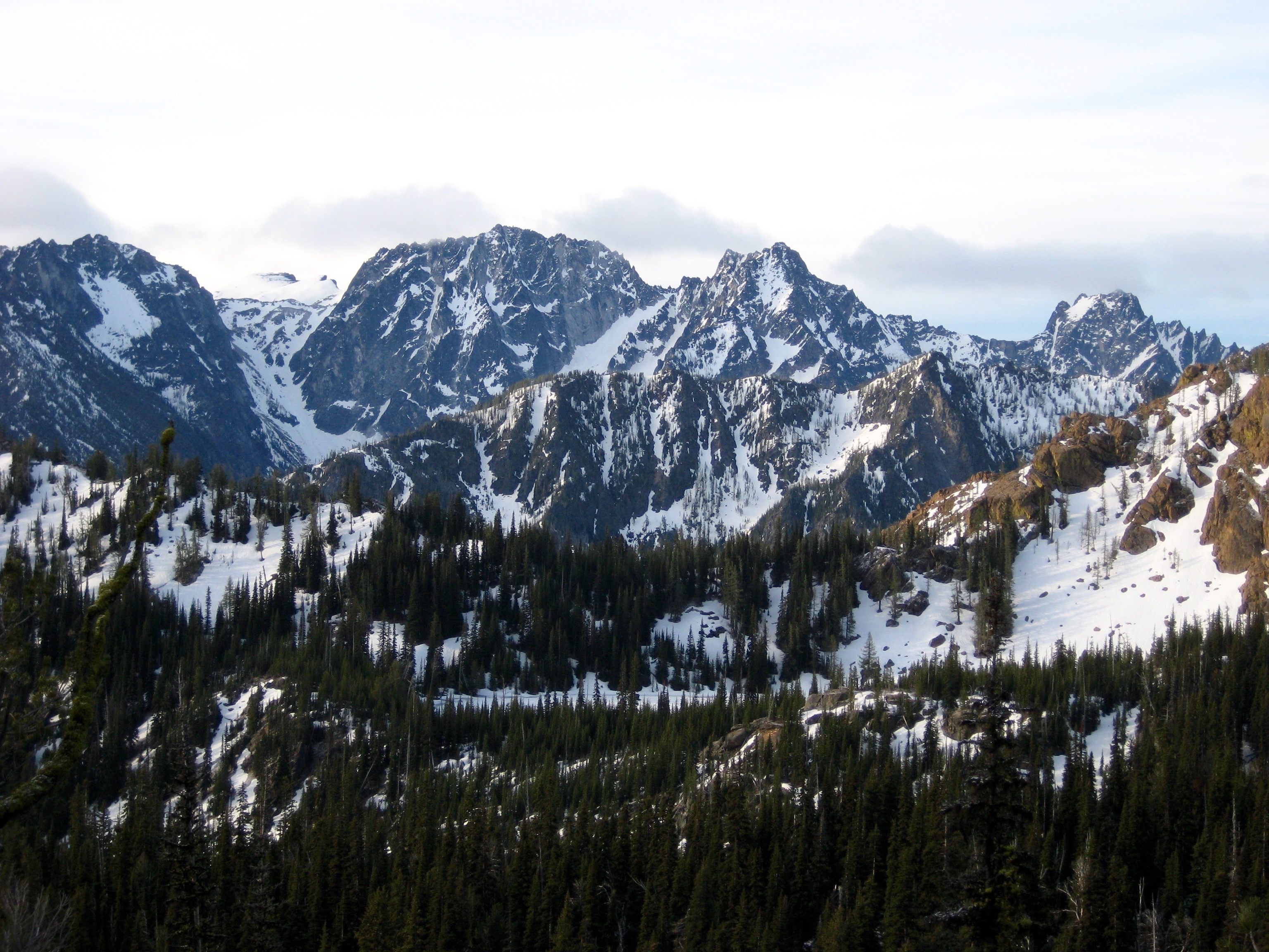 The day started clear enough to give some nice views over to the Stuart Range. It was also comforting to see a healthy high-elevation snowpack.