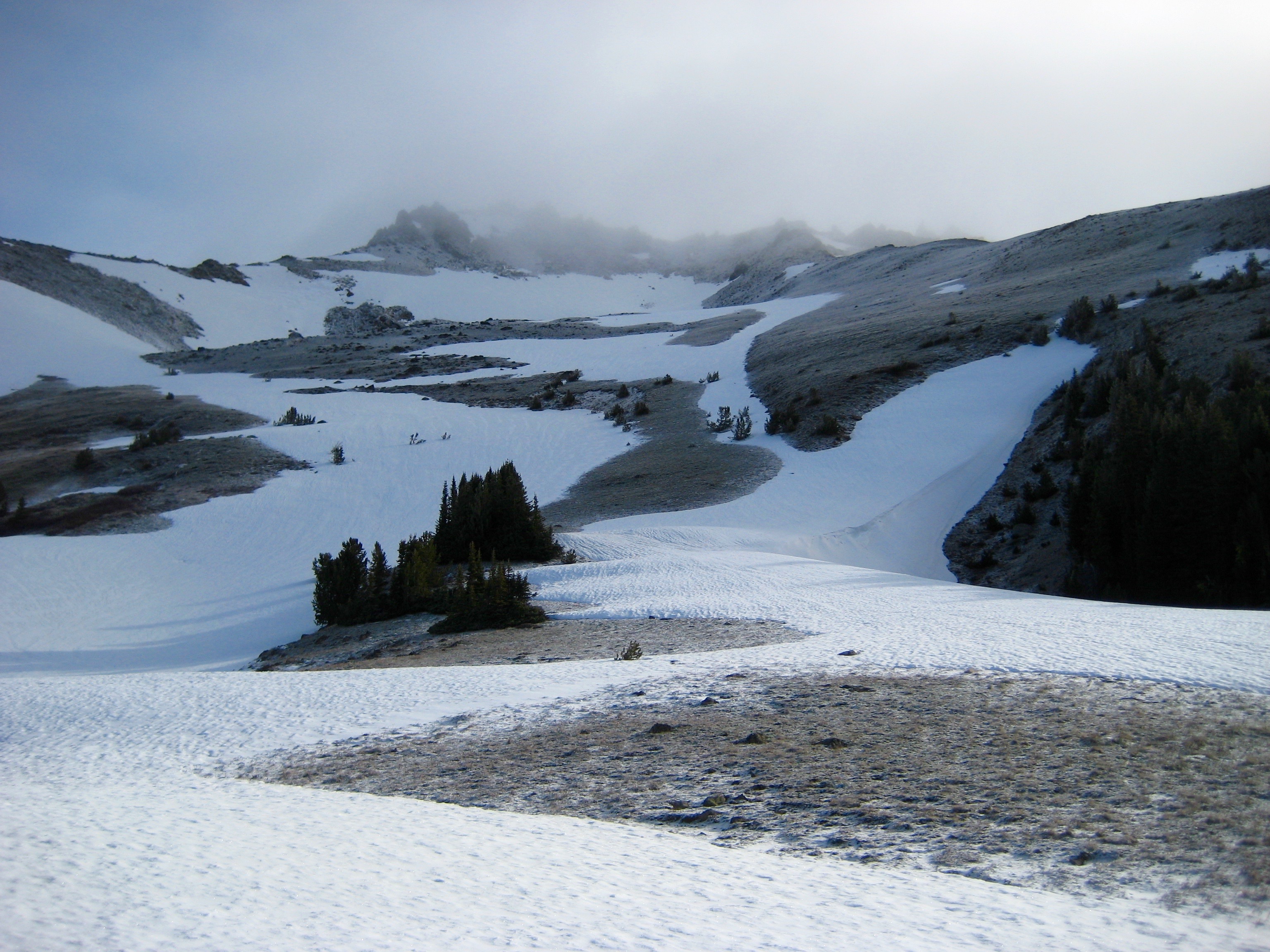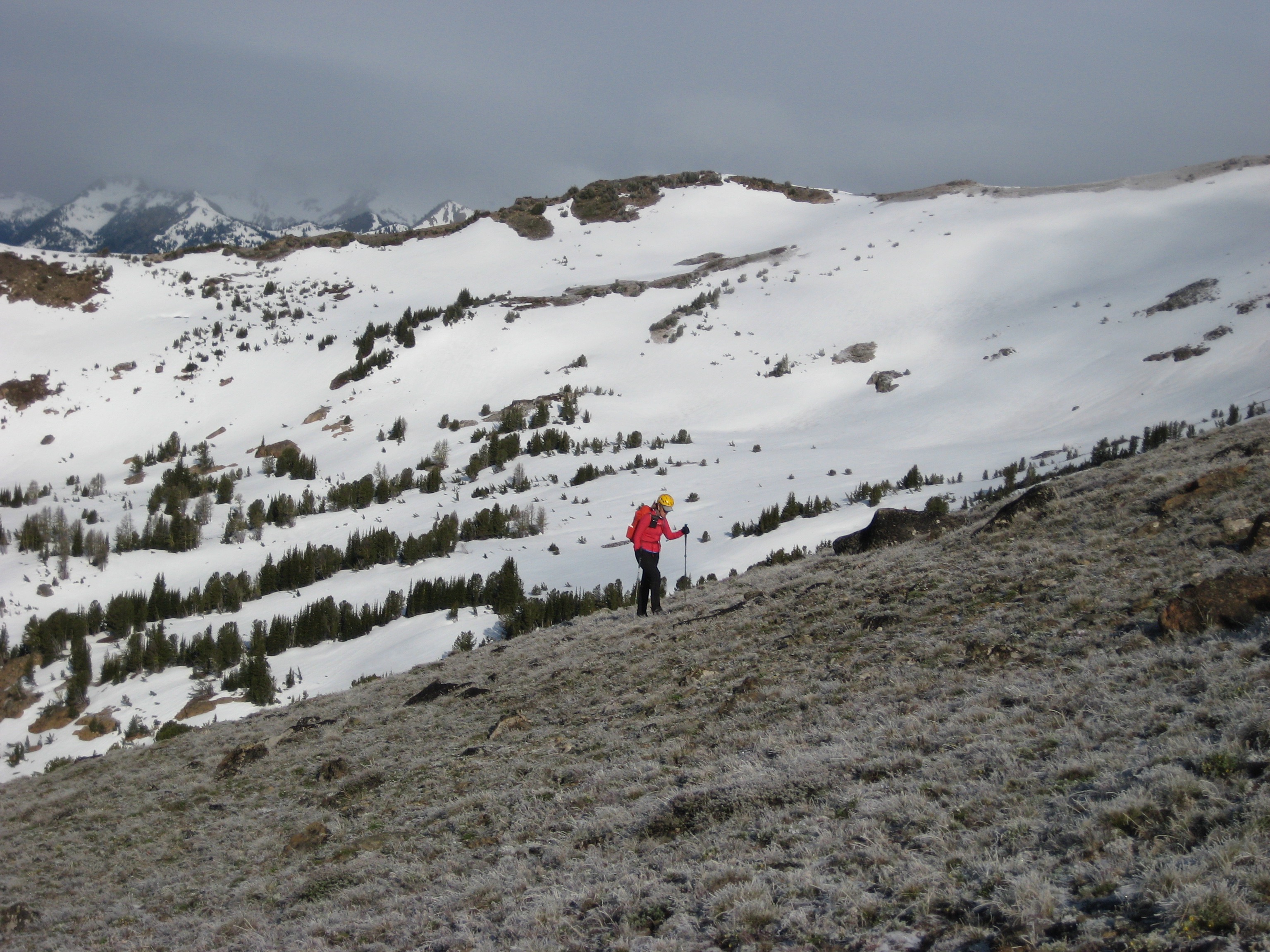 We hiked up frozen tundra and crusty snowfields of Windy Basin, heading for Mt. Cashmere.