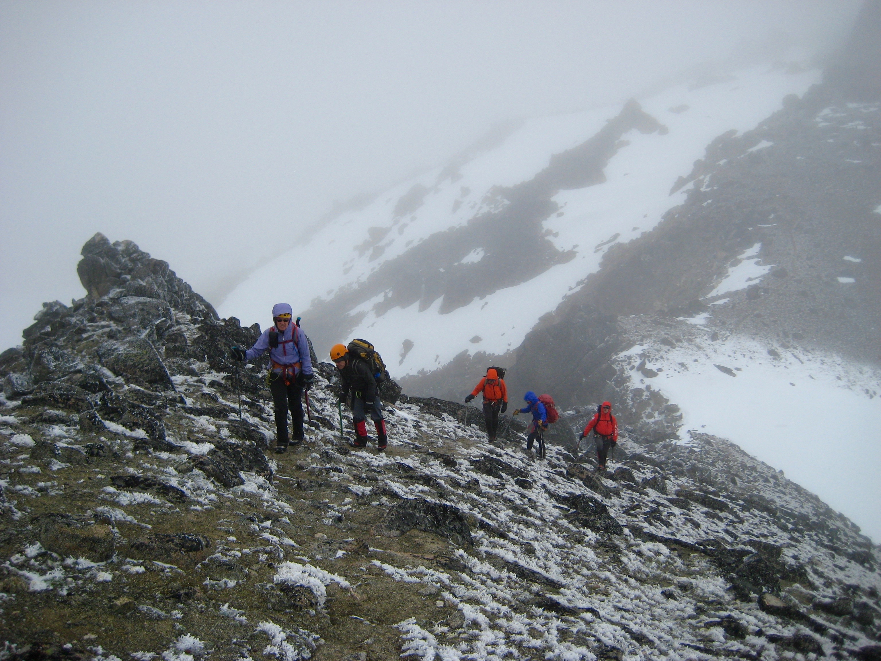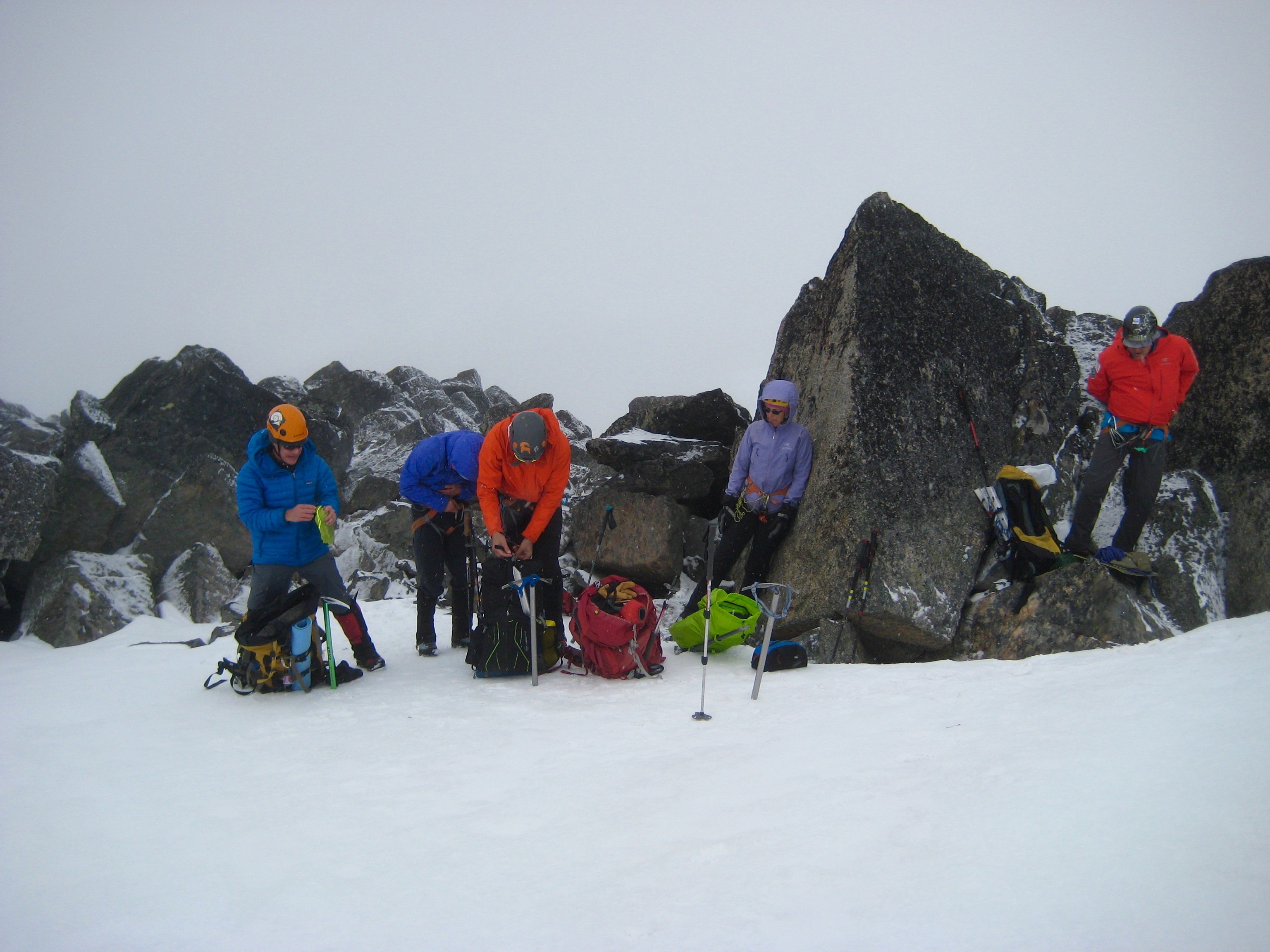 We awoke to a skiff of fresh snow in camp on Saturday morning. No doubt, this was going to be a more interesting climb than expected.