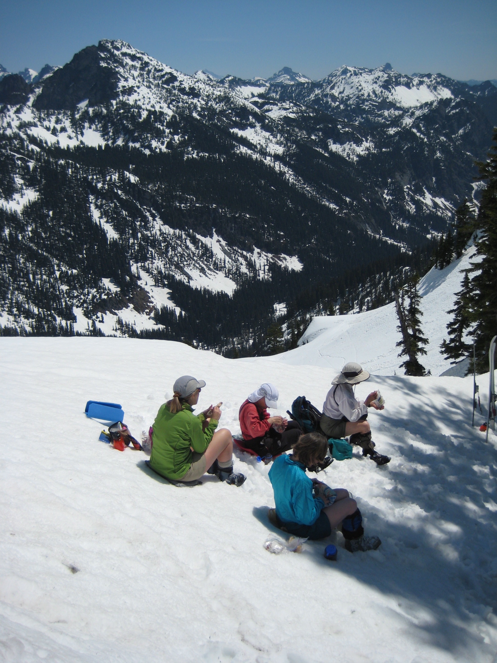 The Chair Peak Circumnavigation has become a classic ski tour in the Snoqualmie Pass area, and was something I’d been wanting to do ever since I heard about it a couple years ago. Now I realize that it’s not just a local classic but is destined to be a Northwest classic. I was joined by Beth, Fay, Jenny, and Eileen on this bluebird Memorial Day trip.