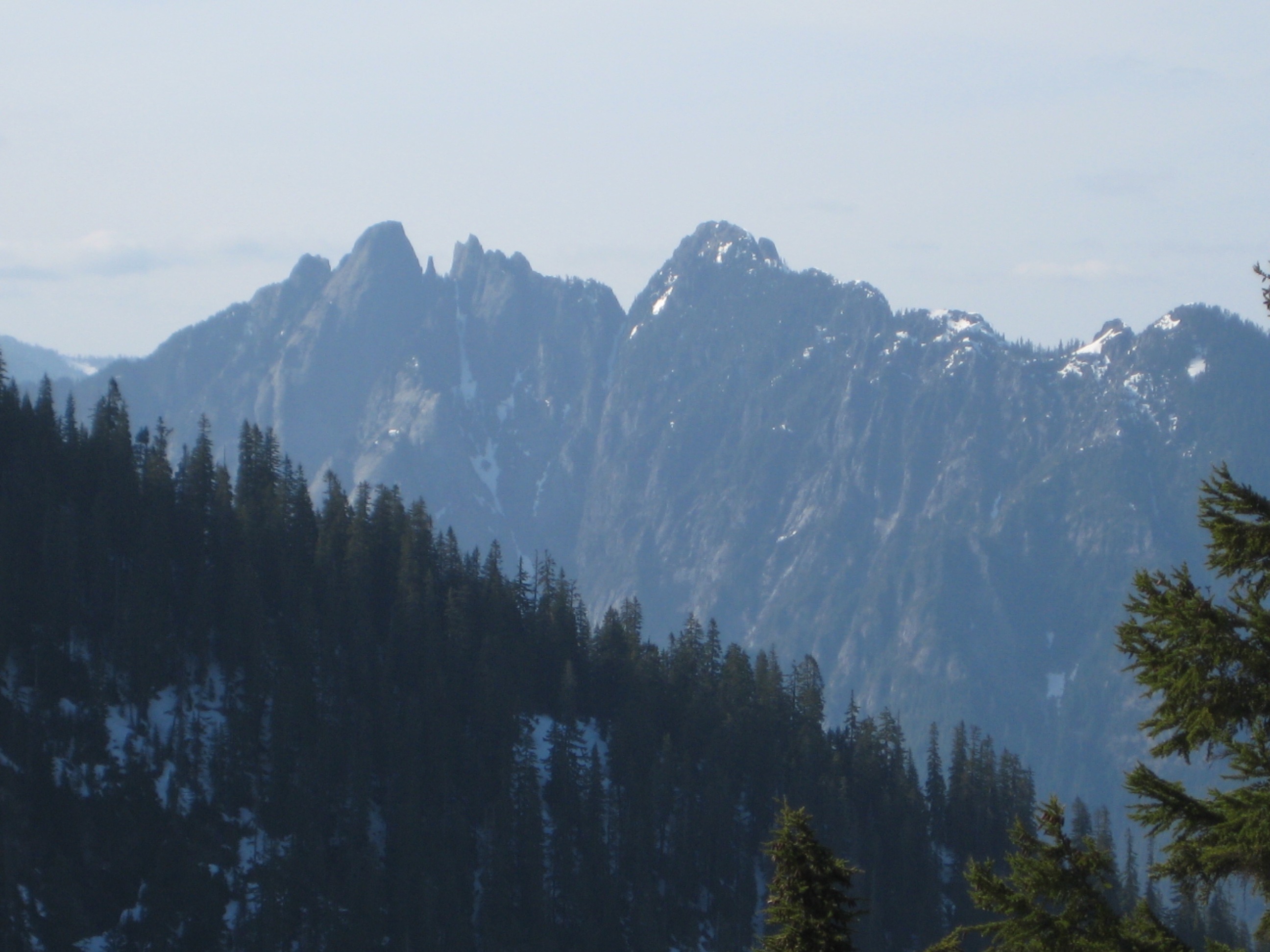 We started from the upper Alpental parking lot and skinned up-valley to Source Lake Bowl, then zigzagged up to Pineapple (Great Scott) Basin below The Snoqualmie Tooth.