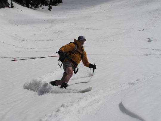 The remainder of our traverse around the lake, up to Sno-Chair Pass, down to Source Lake, and out to Alpental was relatively uneventful. The descent portion featured some very forgettable skiing through old avalanche debris and across icky melt-out patches.