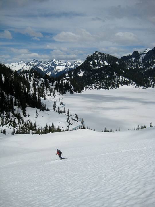 A series of traverses and descents provided more skiing thrills down to Snow Lake.