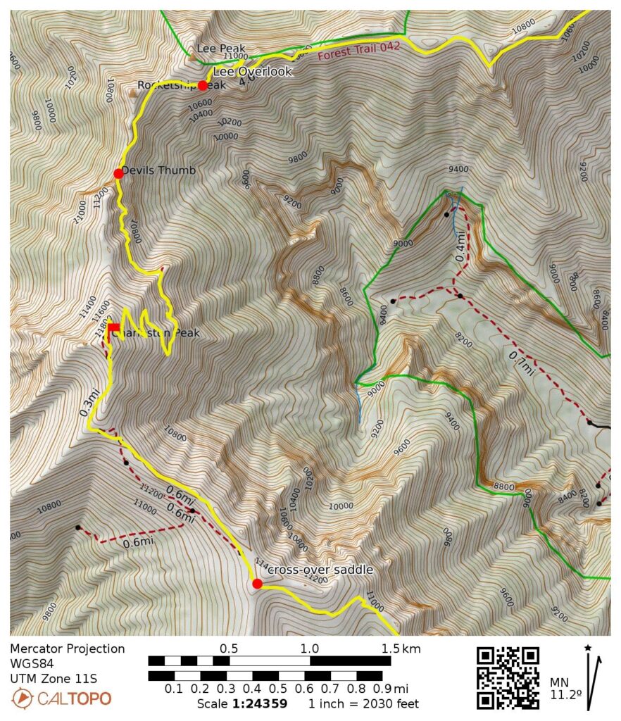 Approximate Stats: 16.6 miles traveled; 4900 feet gained; 4850 feet lost.
