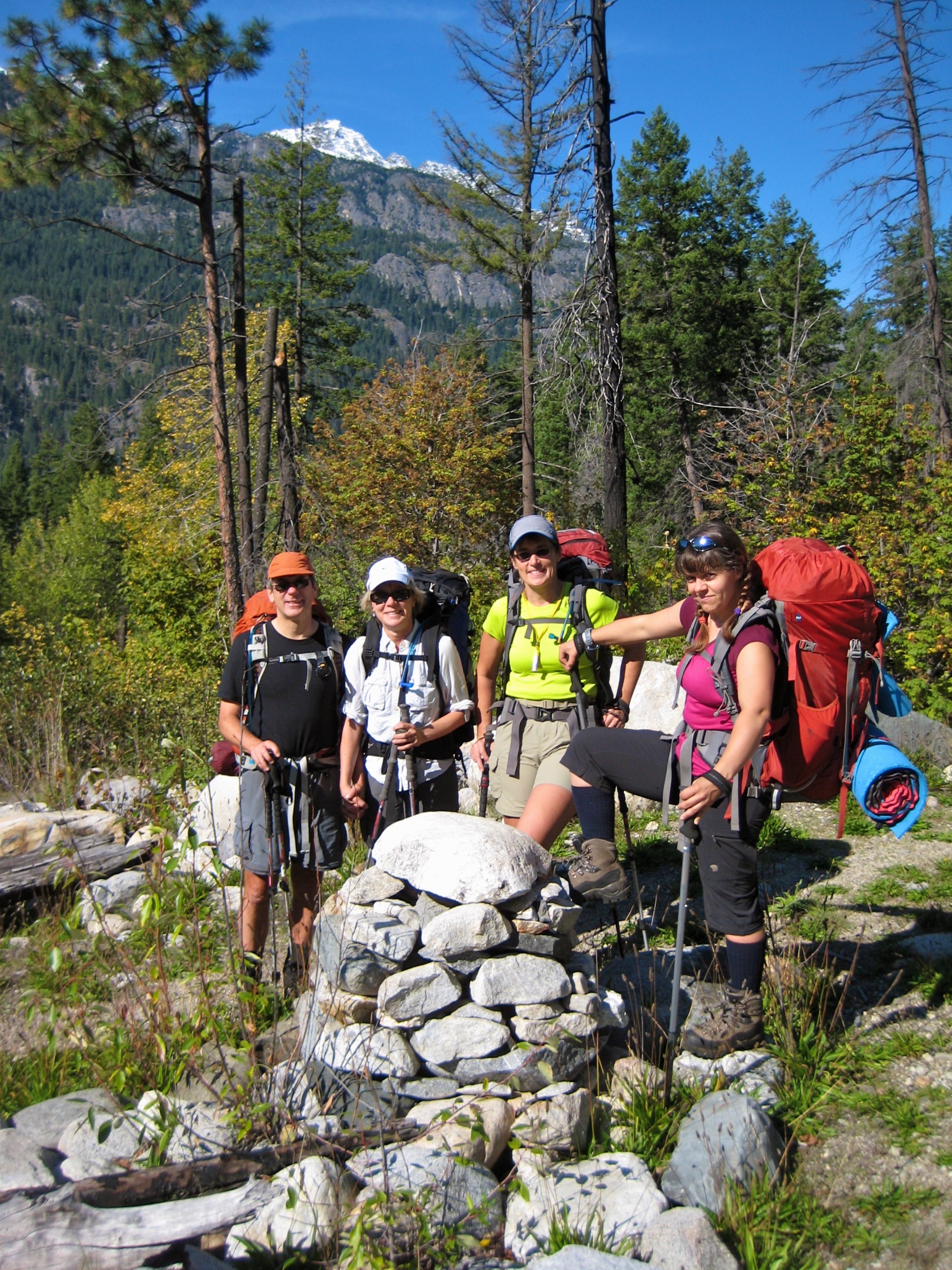 When an unseasonable snowstorm hit the Cascades last week, my plans for a high-country “Golden Larch Trip” got pushed down to lower elevations. The Chelan Lakeshore Trail makes for a very pleasant and scenic outing under these circumstances. Steve, Deb, Tiffany, and Eileen joined on, either as first-timers or second-timers.