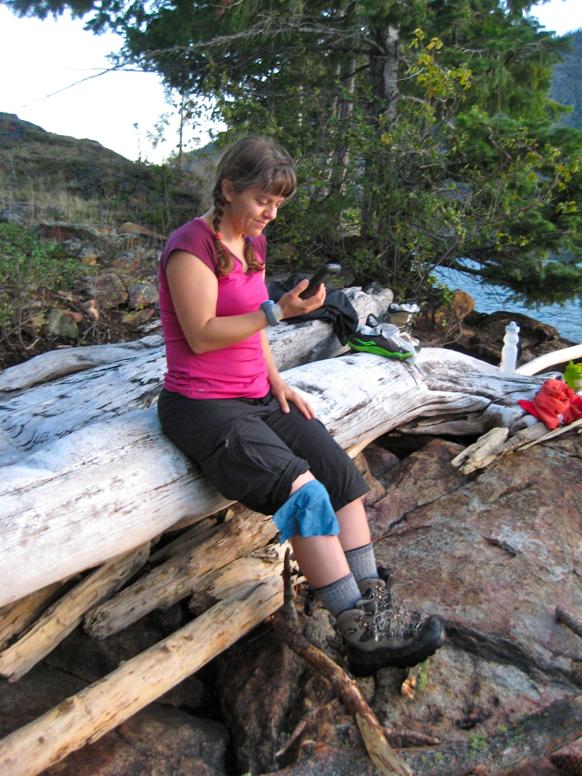The trail crosses Prince Creek and then immediately starts to climb up and over a series of high rocky knobs. We stopped on a sunny perch to enjoy the views up and down lake. The warm weather seemed to bring out the local rattlesnakes; we spotted five or six young rattlers crossing our trail over the course of the afternoon, but they showed no interest in a confrontation.
