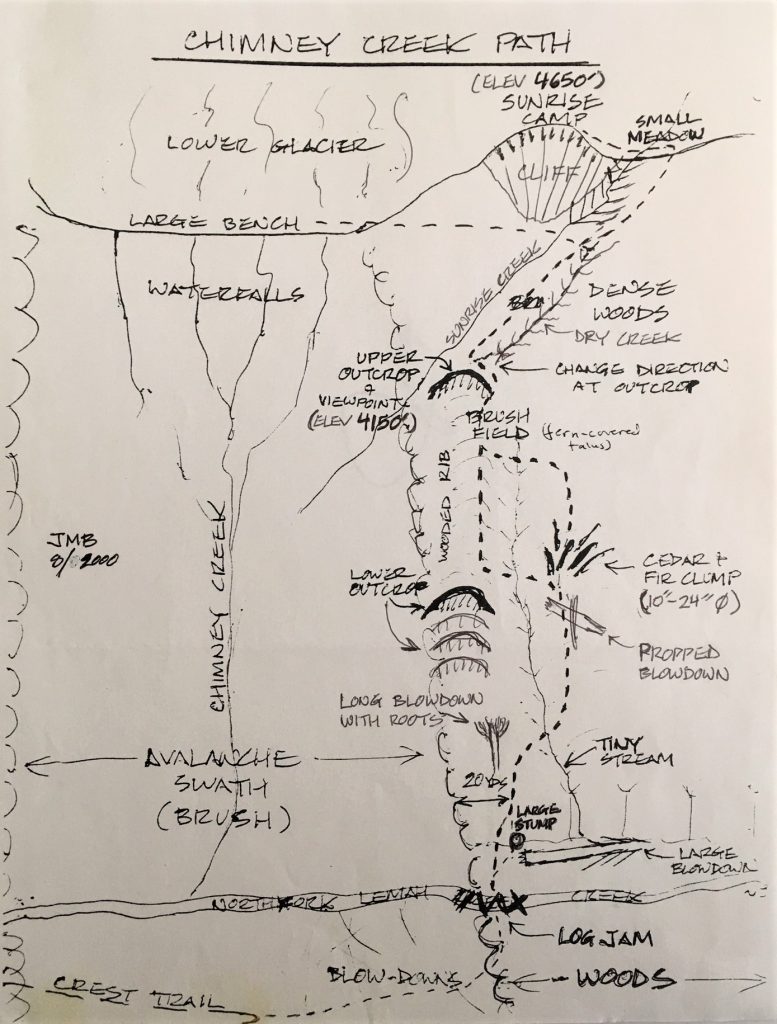 Way Points: Cooper River & Pete Lake & Lemah Meadow & Chimney Creek & Sunrise Knob (trail hike & off-trail hike & rock scramble)