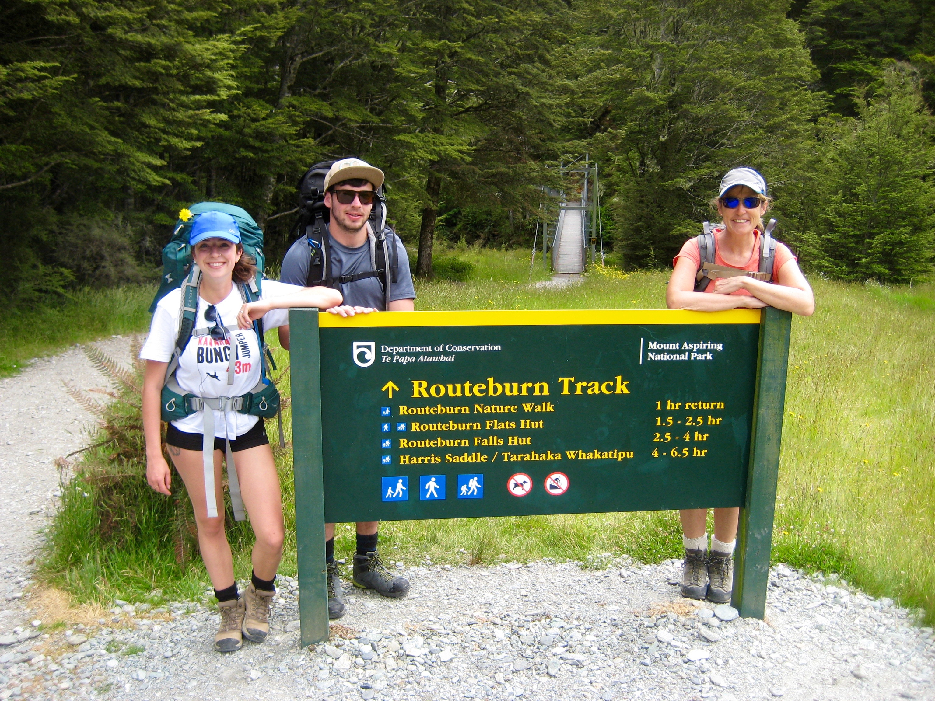 Brooke, Cal, and Eileen At Routeburn Trailhead