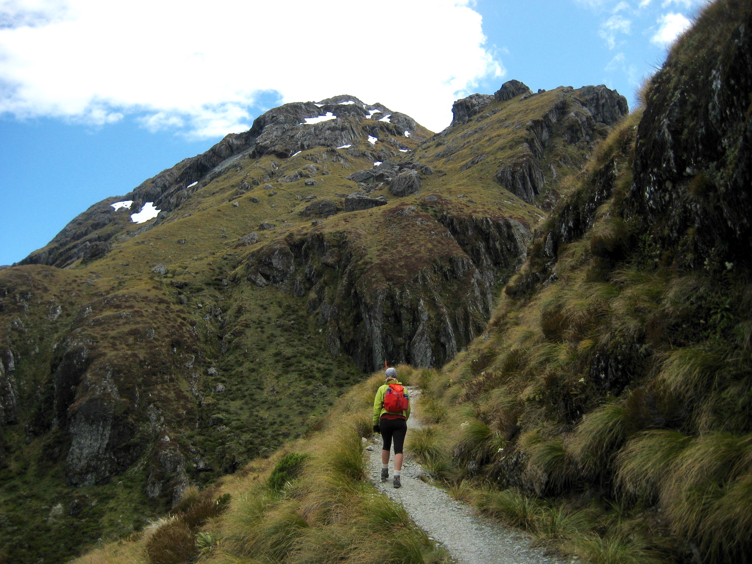 Eileen on Routeburn Track above Lake Harris en route to Conical Hill