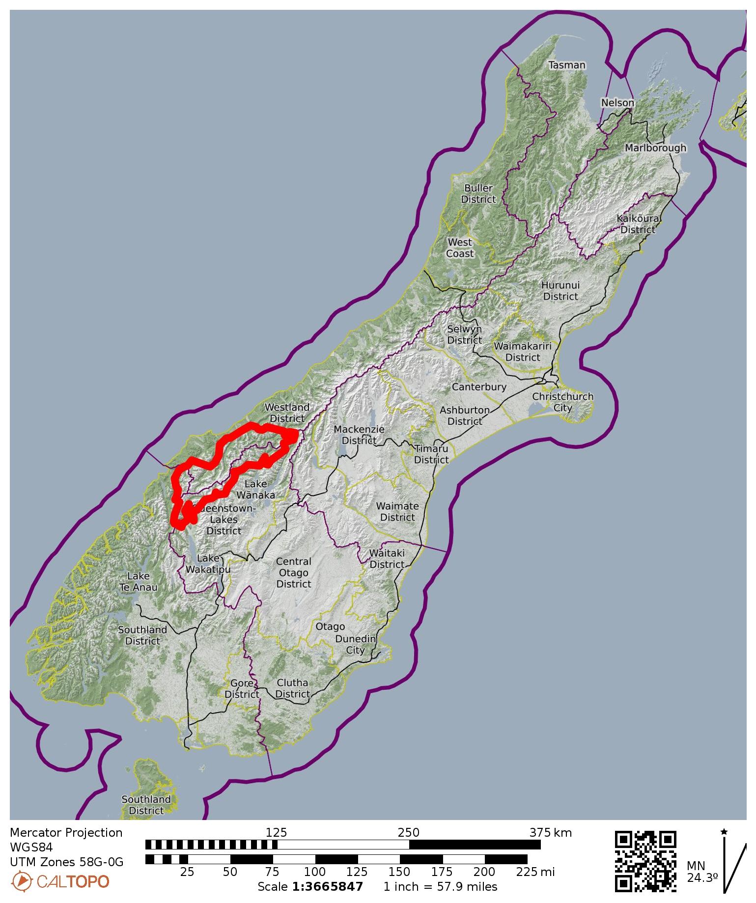 Routeburn Falls & Conical Hill Route Map (CalTopo)