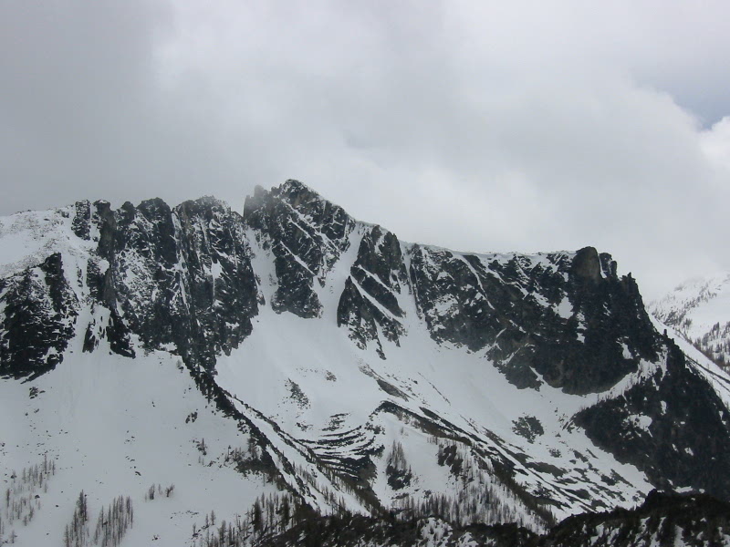 Given a Friday off work and a poor west-side weather forecast, I took the opportunity to head up Raven Ridge in hopes of either confirming or confuting Don’s topographical conclusion. Actually, that was just an excuse to go climbing, but I did take a pocket transit with me. A rainy drive over Snoqualmie Pass toward blue skies in the east indicated that I was at least partially on the right track.