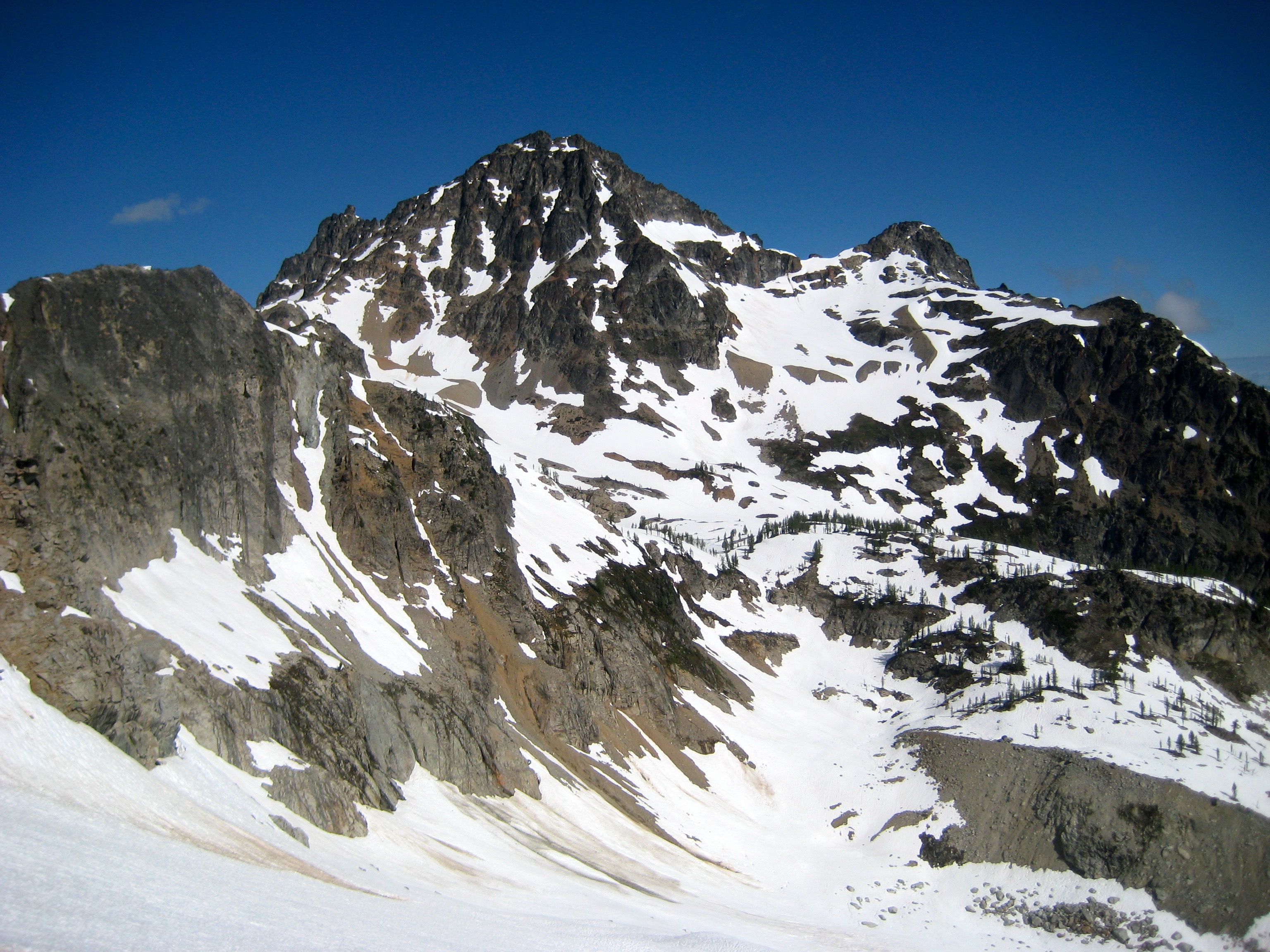 Summit: Corteo Peak (snow climb & rock scramble & rock climb via Lewis Glacier—Northwest Ridge Notch—West Basin—Southwest Ridge)