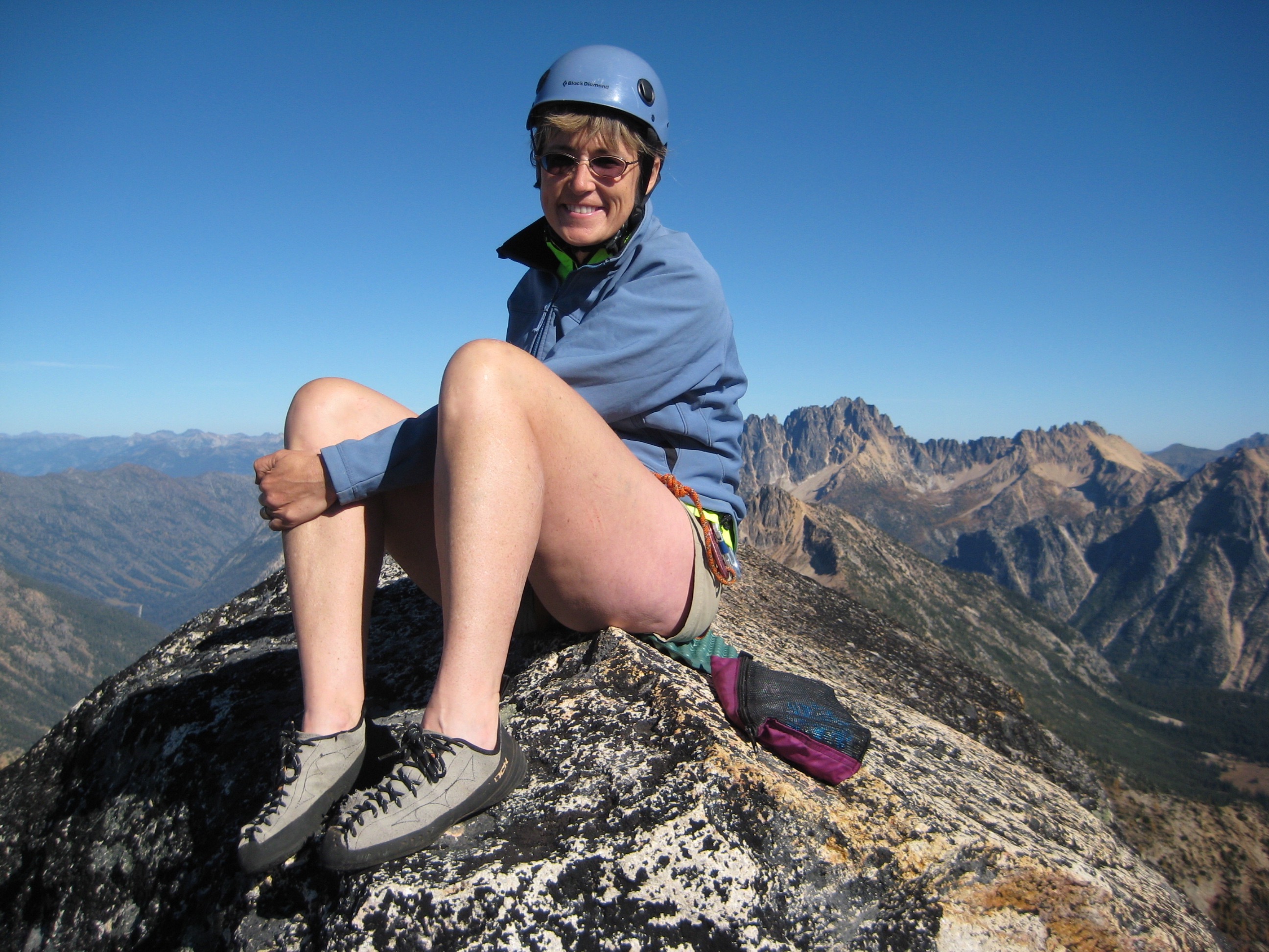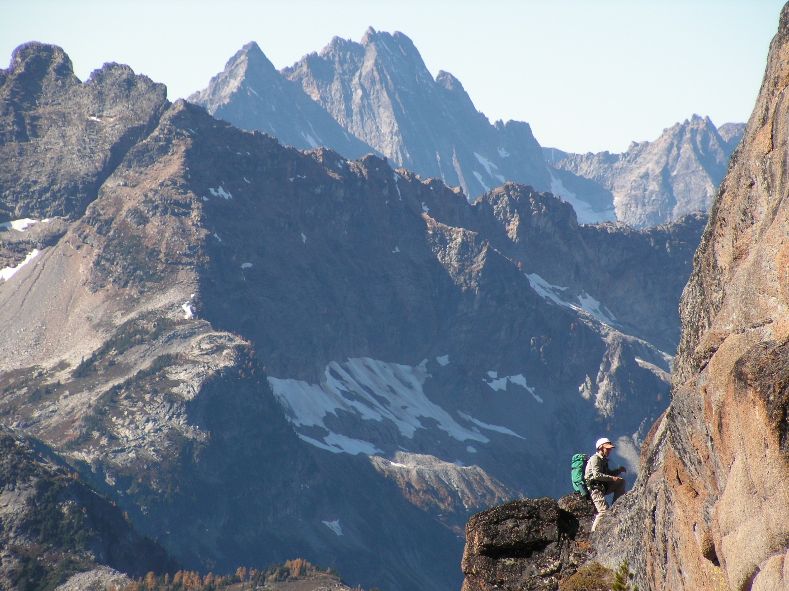 One full pitch of fun Class 5.0 rock gained us the blocky summit in early afternoon (6.1 hours from car).