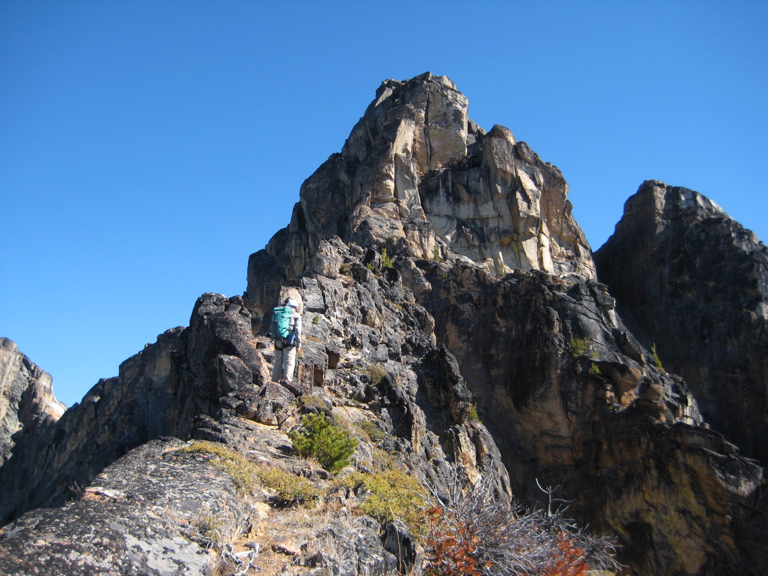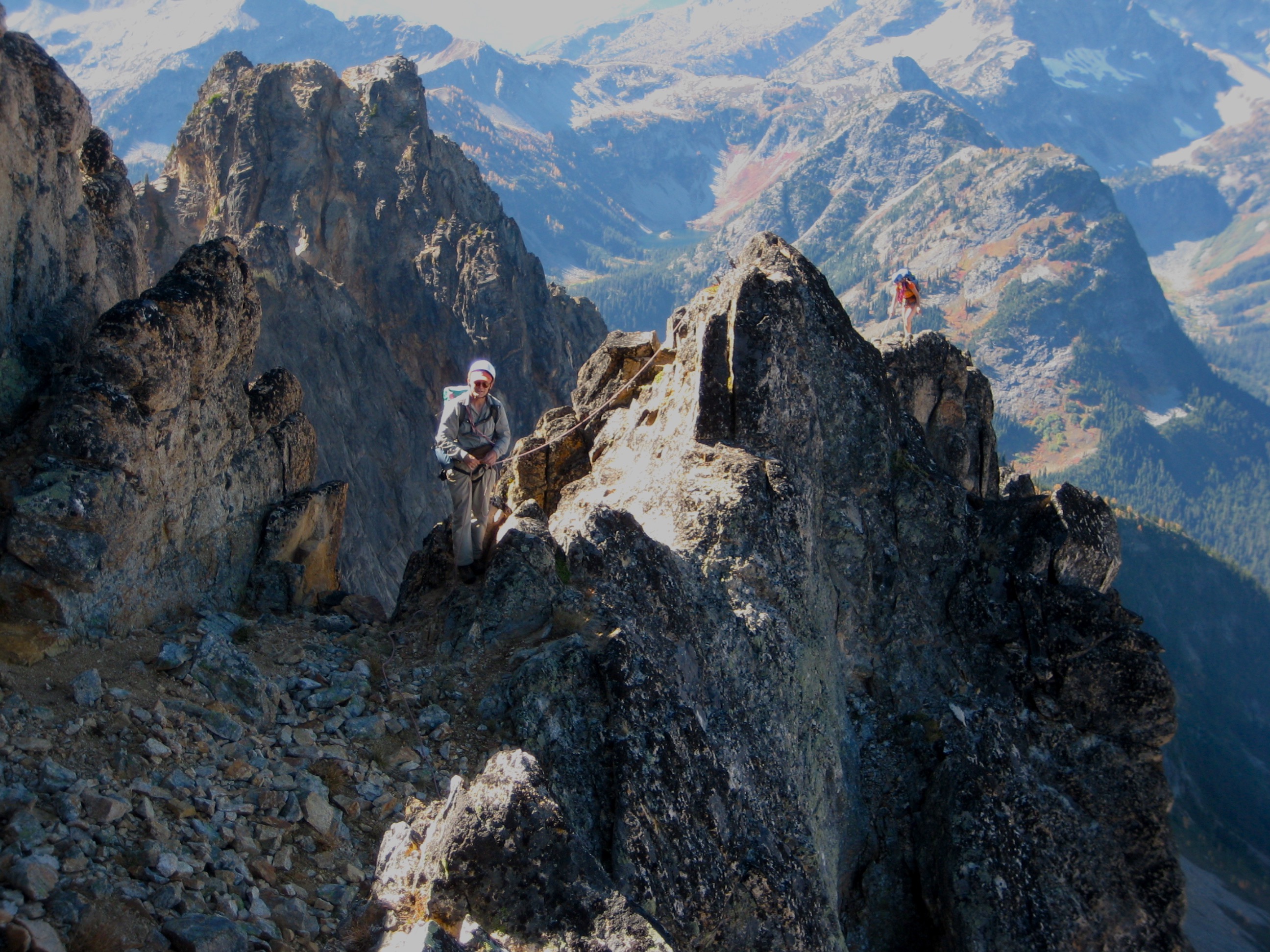 The continuing traverse along the crest itself is not difficult but is breathtakingly exposed. Wow!