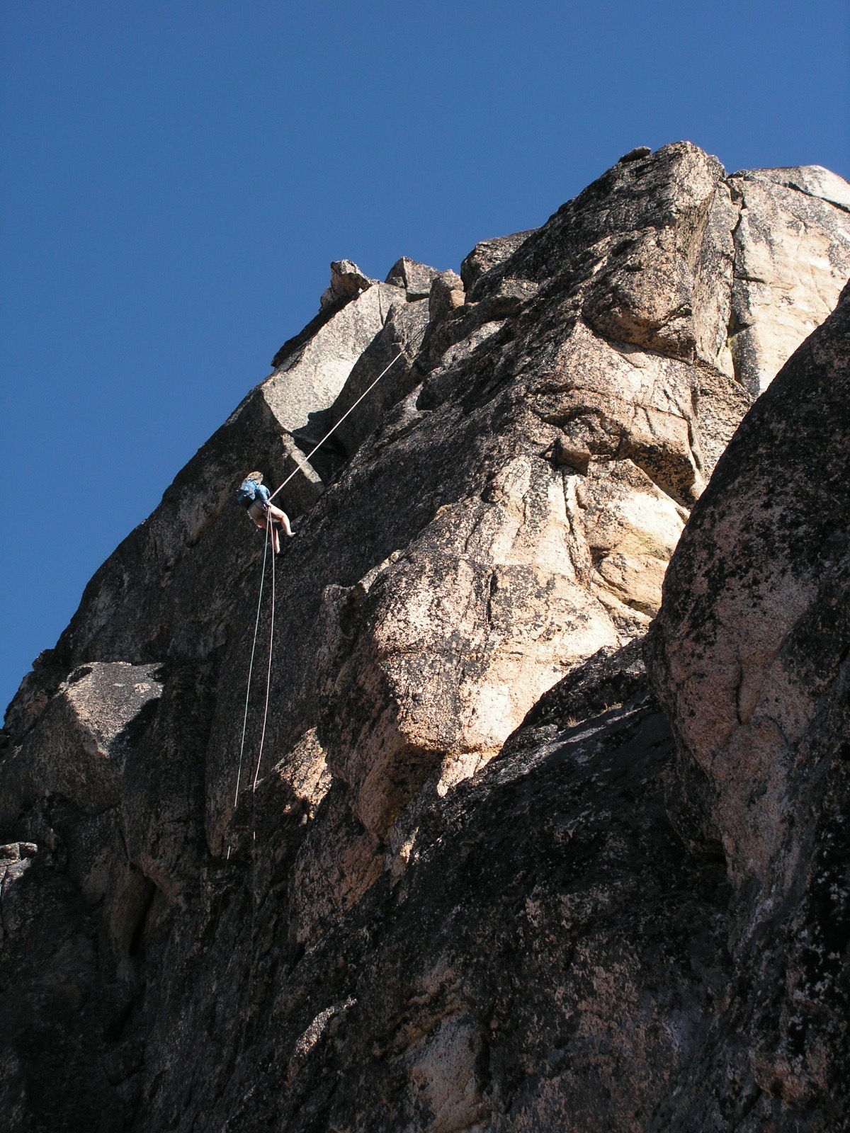 Eileen Rappelling Off Summit (photo By Norm)